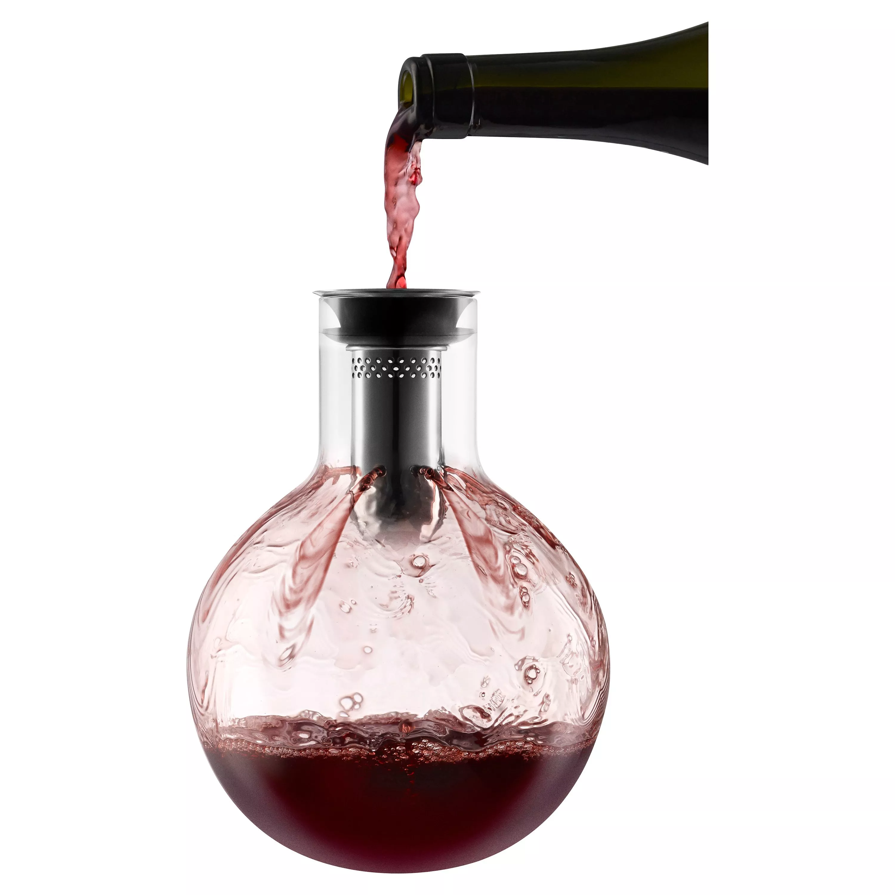 The process of enjoying wine properly requires an effective decanter that not only works beautifully, but looks beautiful too. You can begin the oxygenation process through pouring a bottle of wine through the integrated funnel, allowing the wine to breathe and bouquet to be released. With a feature that makes it drip-free, you can admire the rotund mouth-blown glass shape whilst your wine decants.