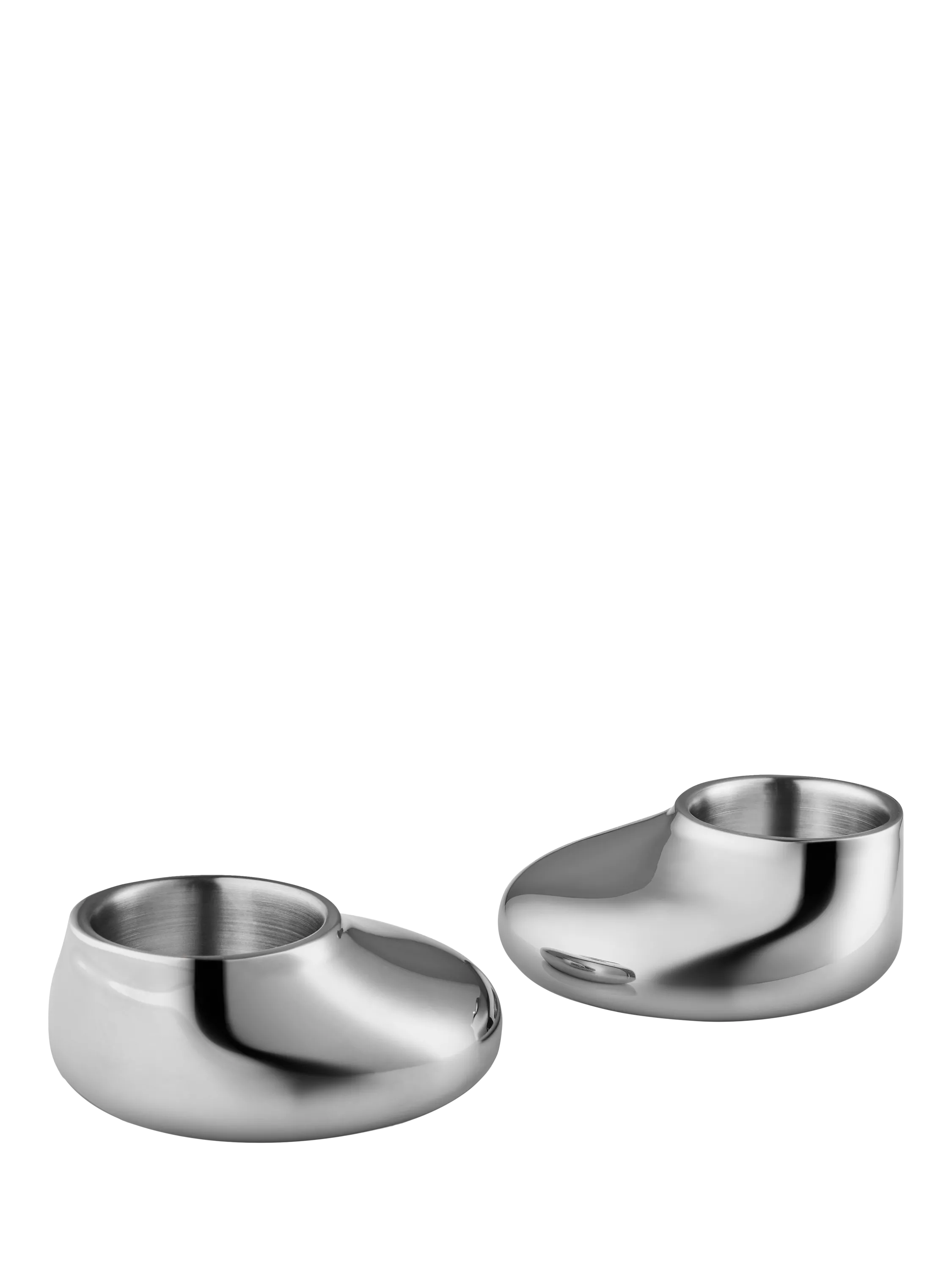 Adorn your home with this pair of charming Mellow tealight holders. With their sculptural and playful shape, these tealight holders add a charming and personal look to your interior or table setting. When the gleam of the flames is reflected by their shiny surfaces, you and your guests will enjoy an enchanting, dancing play of light.