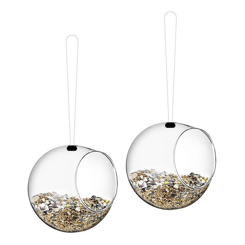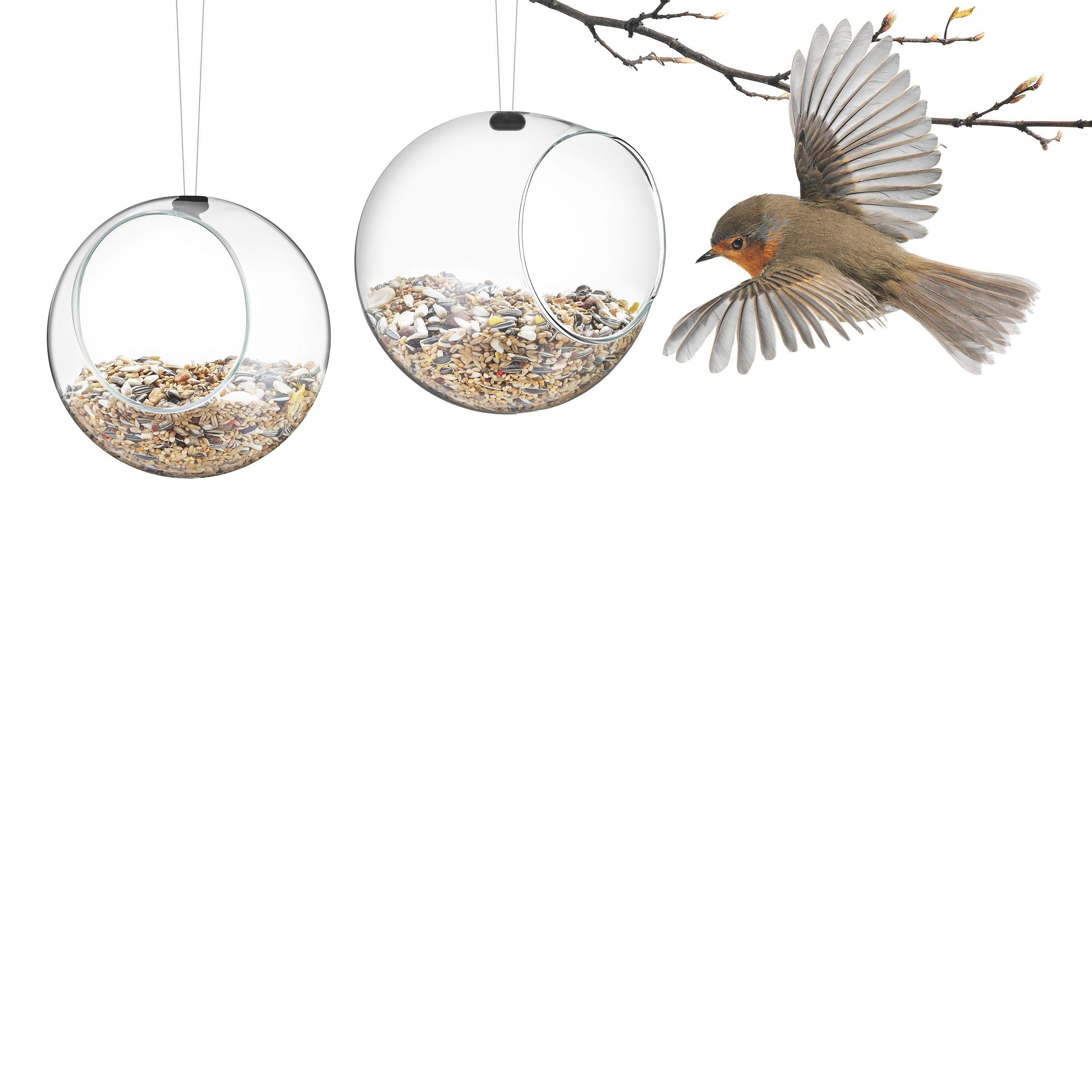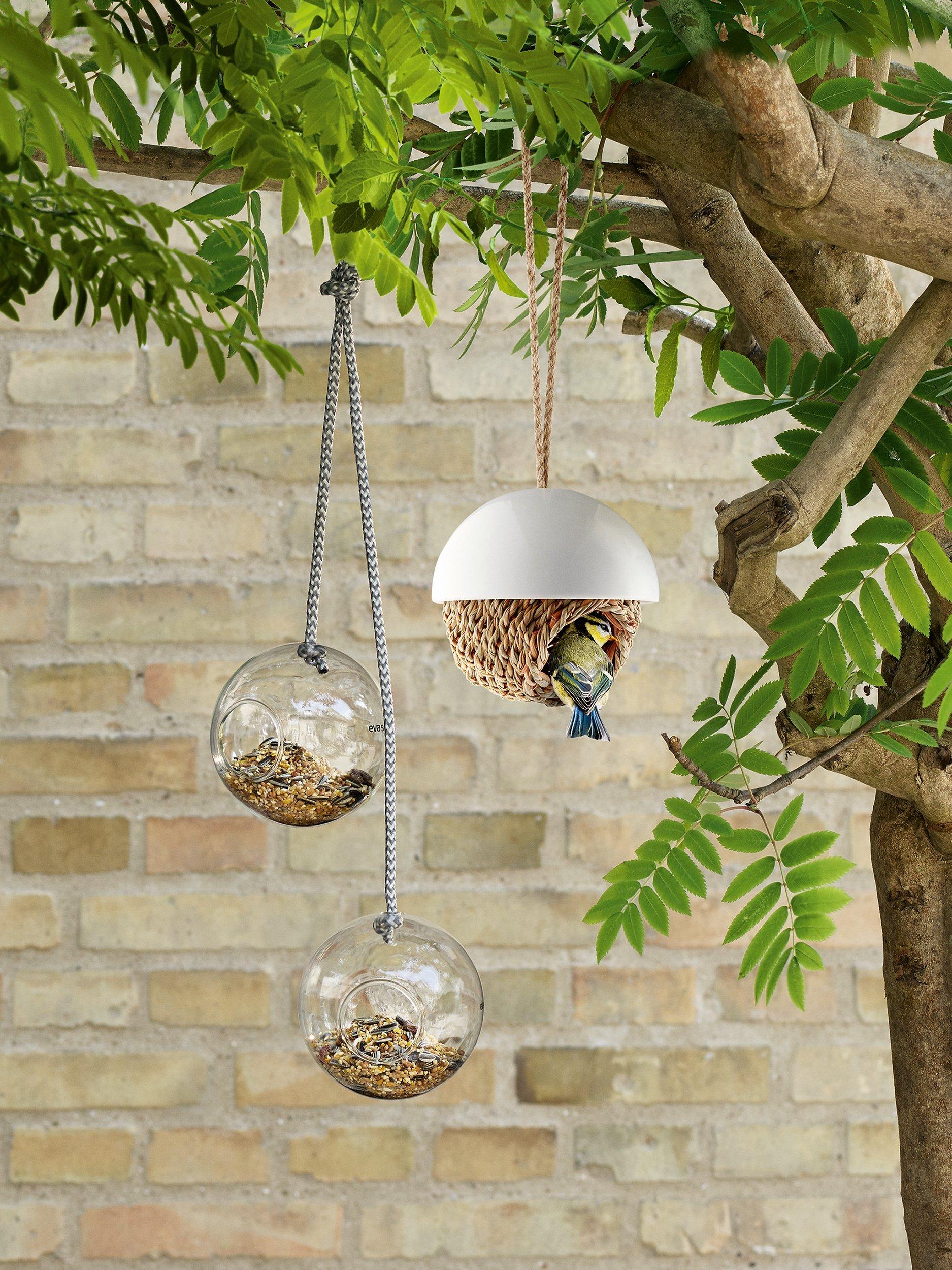 The bird feeders are designed to resemble a weaver bird's nest and are made of clear glass so you can observe visiting birds.