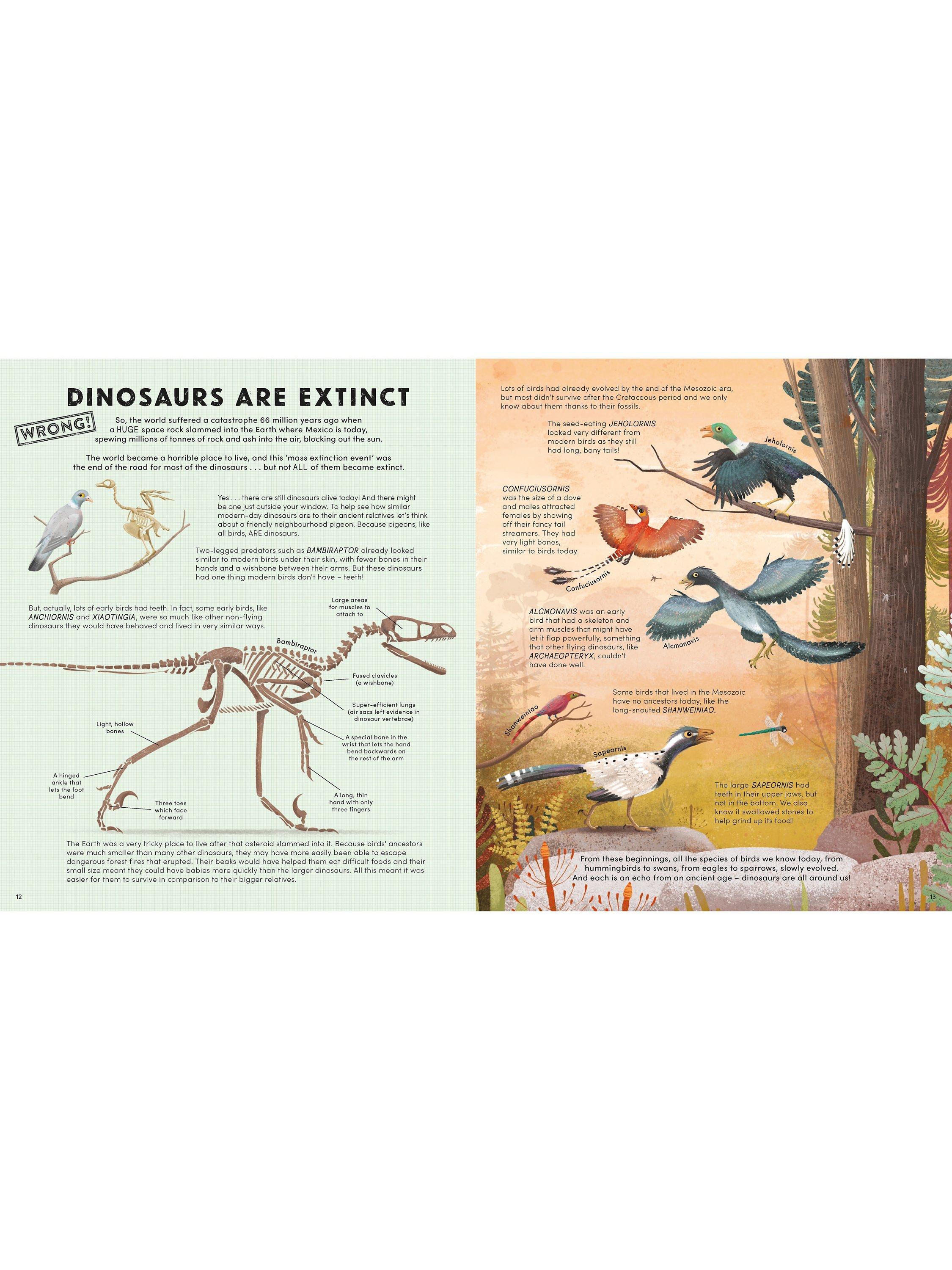 So, let’s uncover the truth! From fossilised feathers to long-necked lookalikes, this ingenious book is packed with so many amazing dinosaur discoveries, you’ll soon become a palaeontology pro. Including jaw-dropping research that will debunk many myths about all kinds of prehistoric creatures – you’ll never look at a pigeon the same way again!