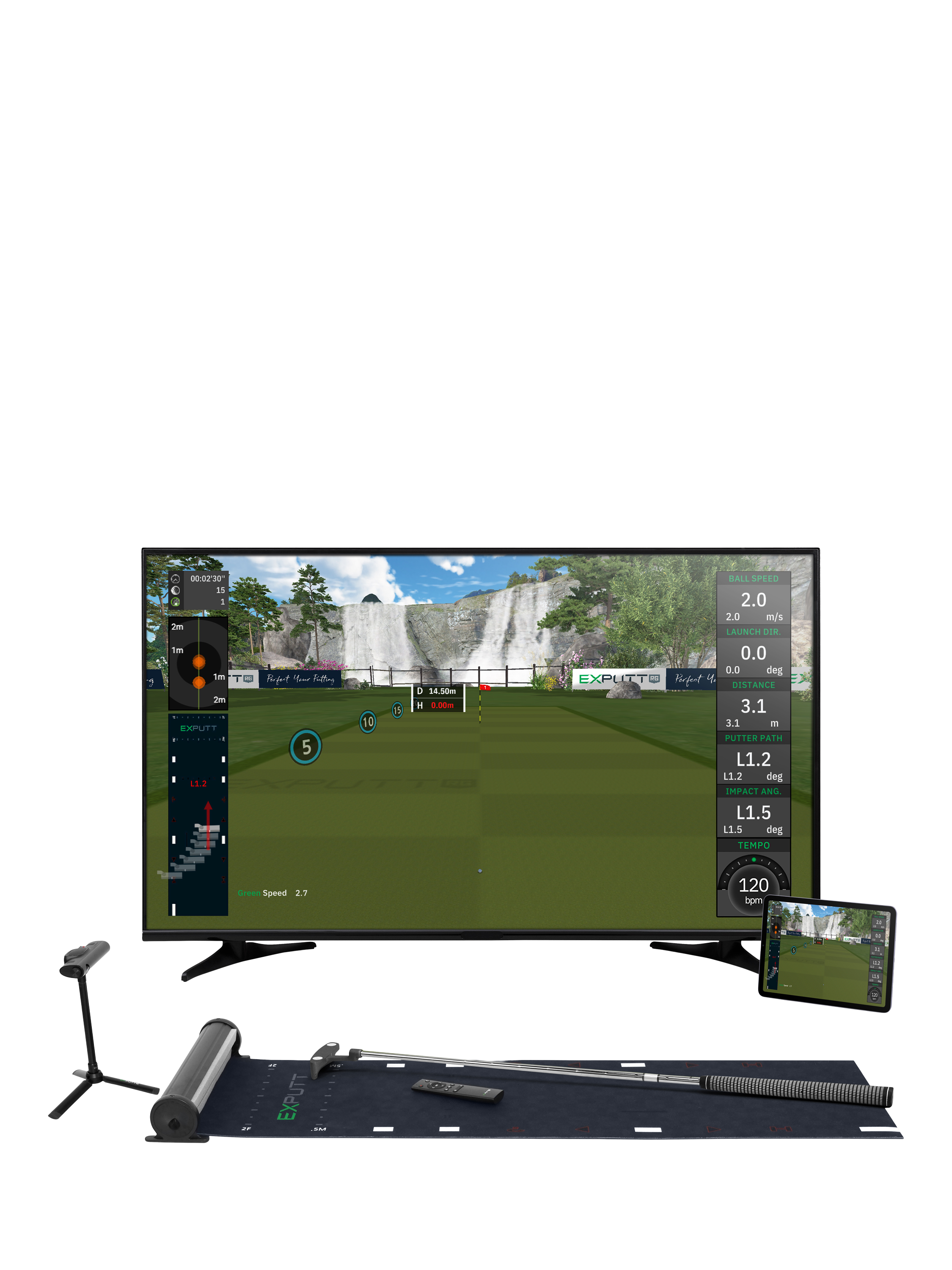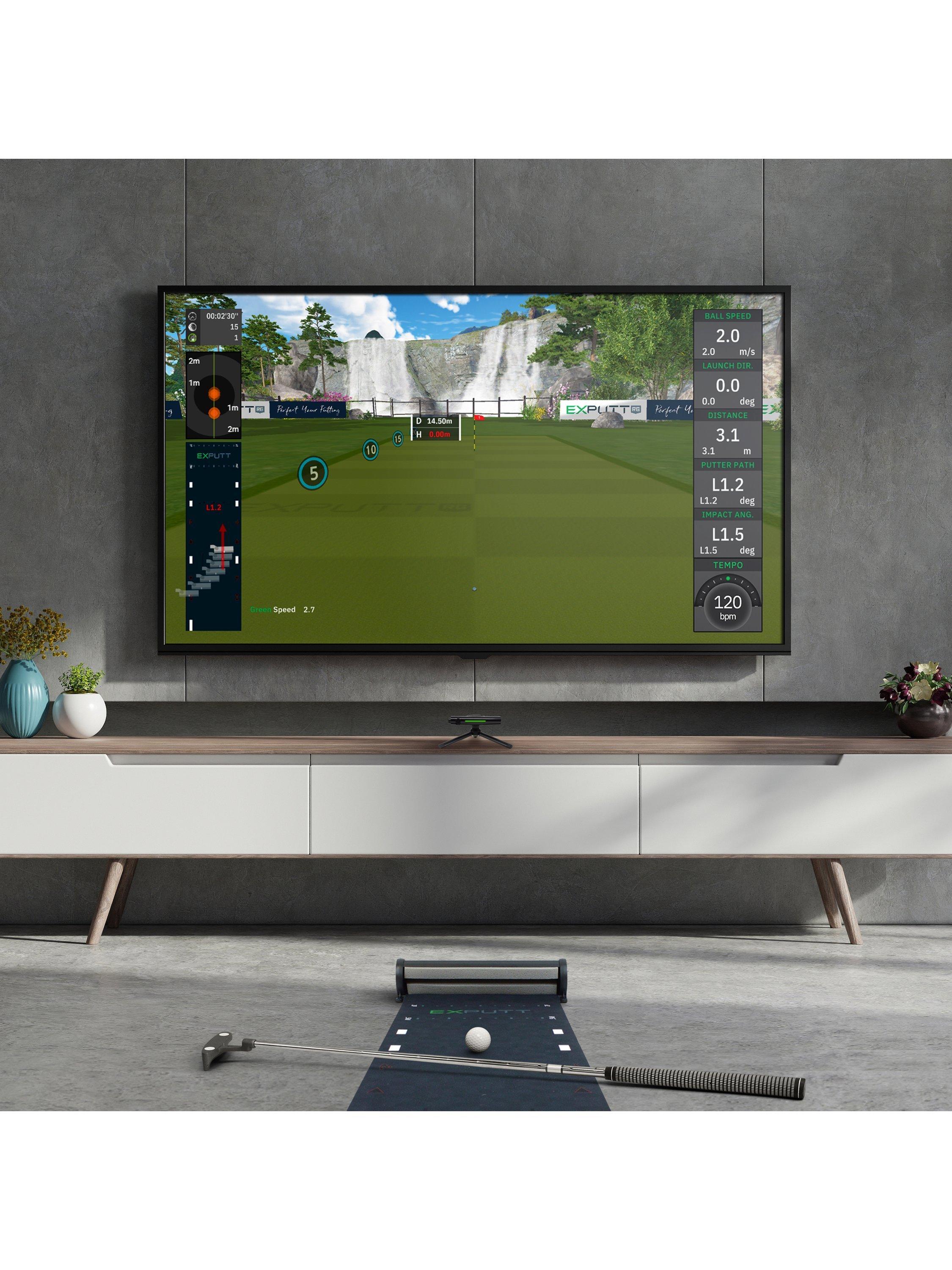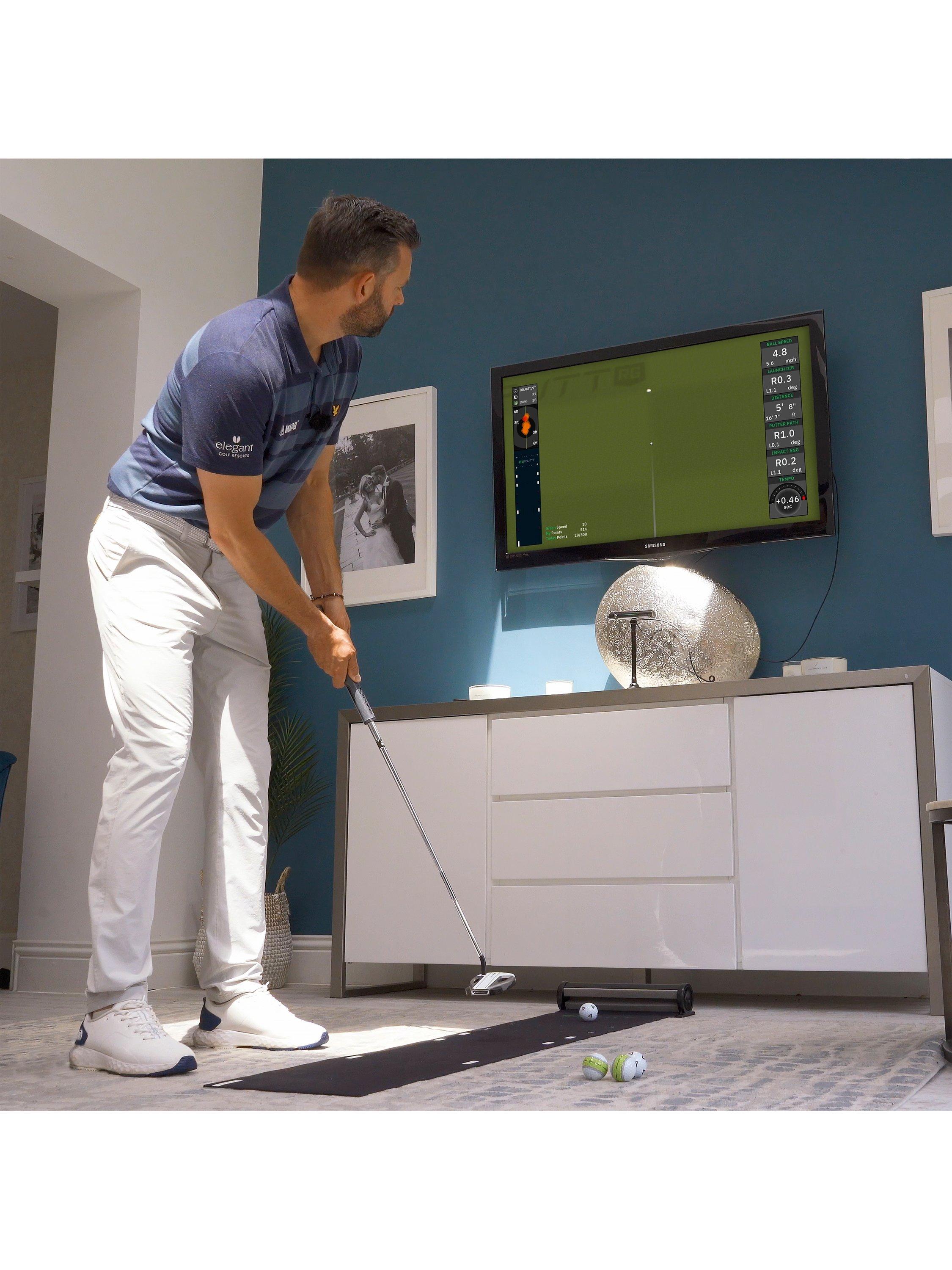 Perfect your putting skills at home with the ExPutt RG Putting Simulator. Just roll out the mat, plug in the camera and you're ready to go - no fiddly calibration needed. Test your short game on over 70 real-world golf courses. These realistic course greens bring the feel of authentic slopes and undulations to your home practice sessions. The high-speed camera and smart tracking software give you immediate feedback on ball speed, putter direction and clubface angle, helping you improve your putting technique in real time. Then, once you're feeling confident, take on golfers around the world in online multiplayer (up to four players) and global challenges.