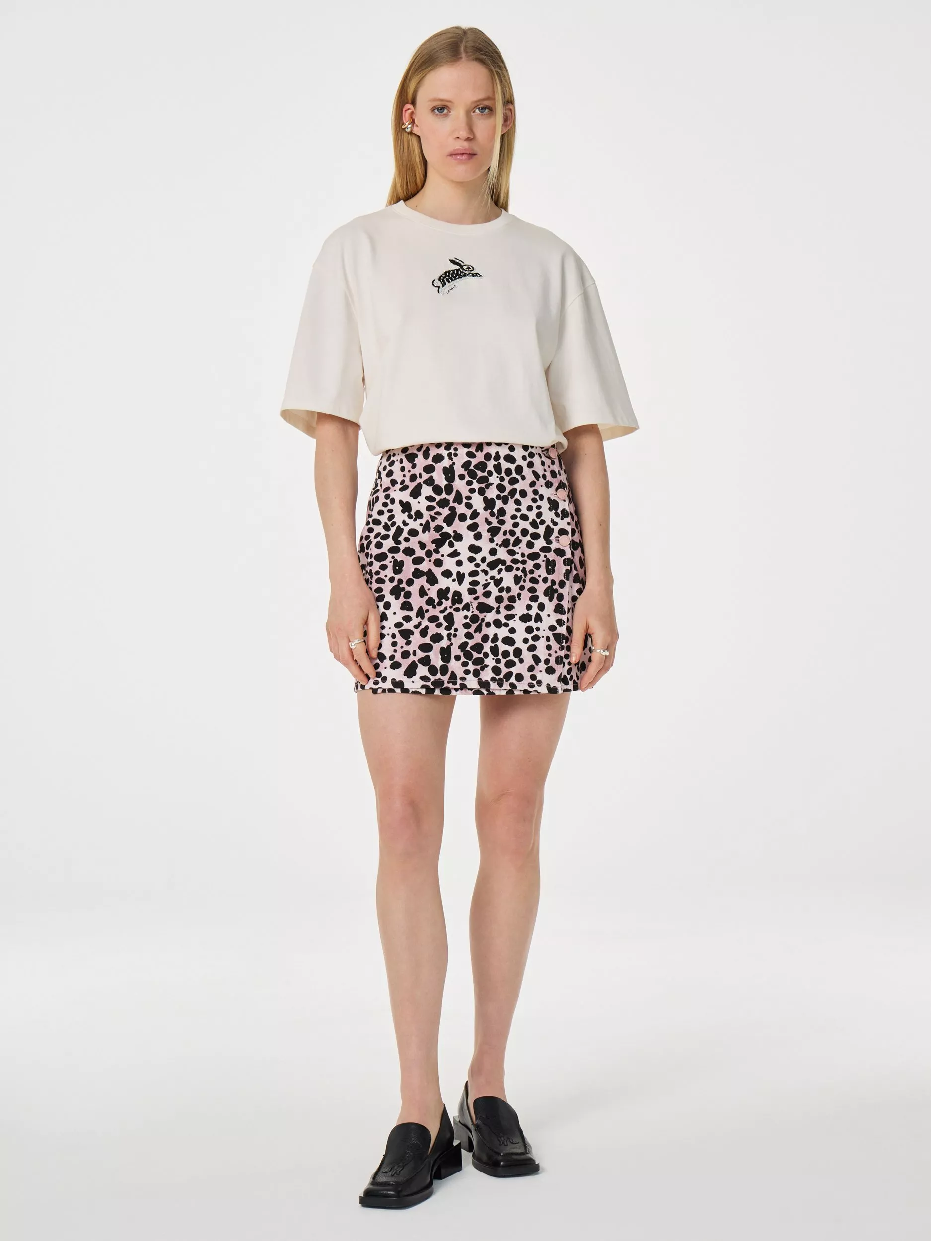This relaxed-fit T-shirt features a playful bunny print on the front. With its breathable fabric and loose silhouette, it's the perfect summer essential.