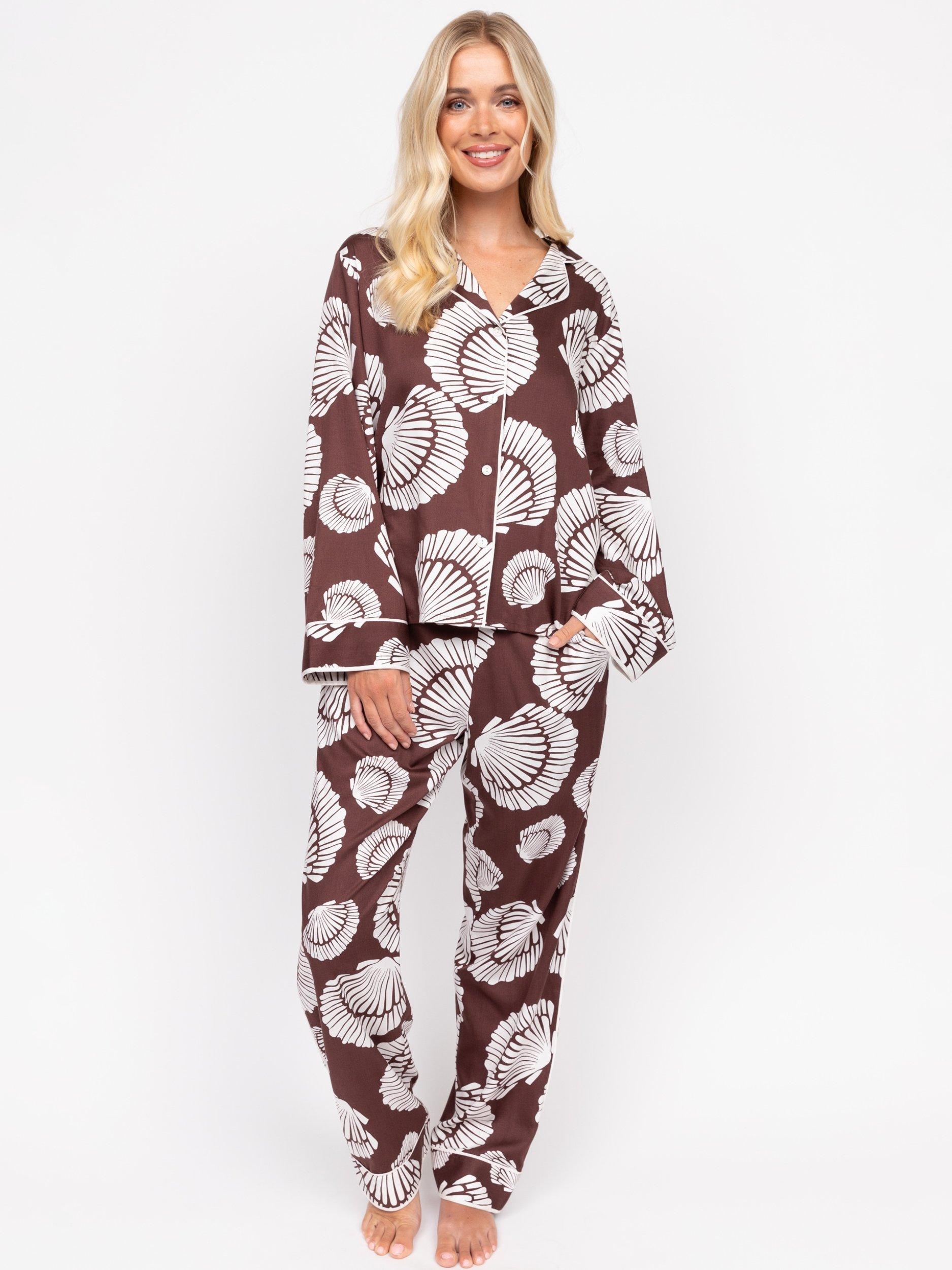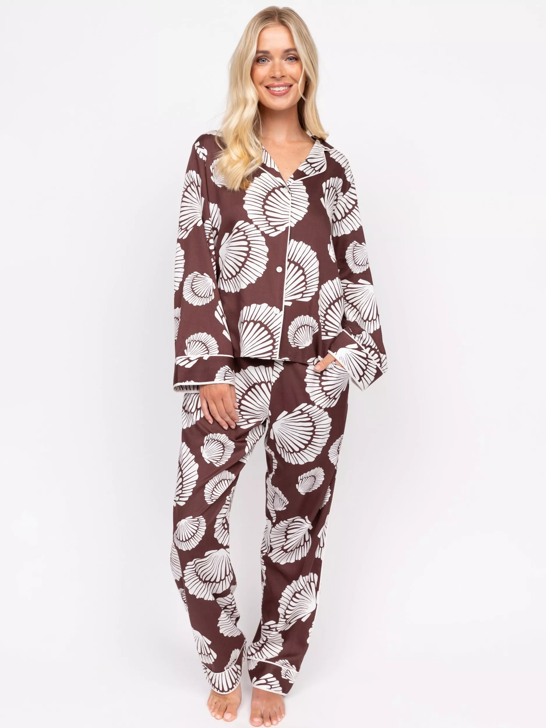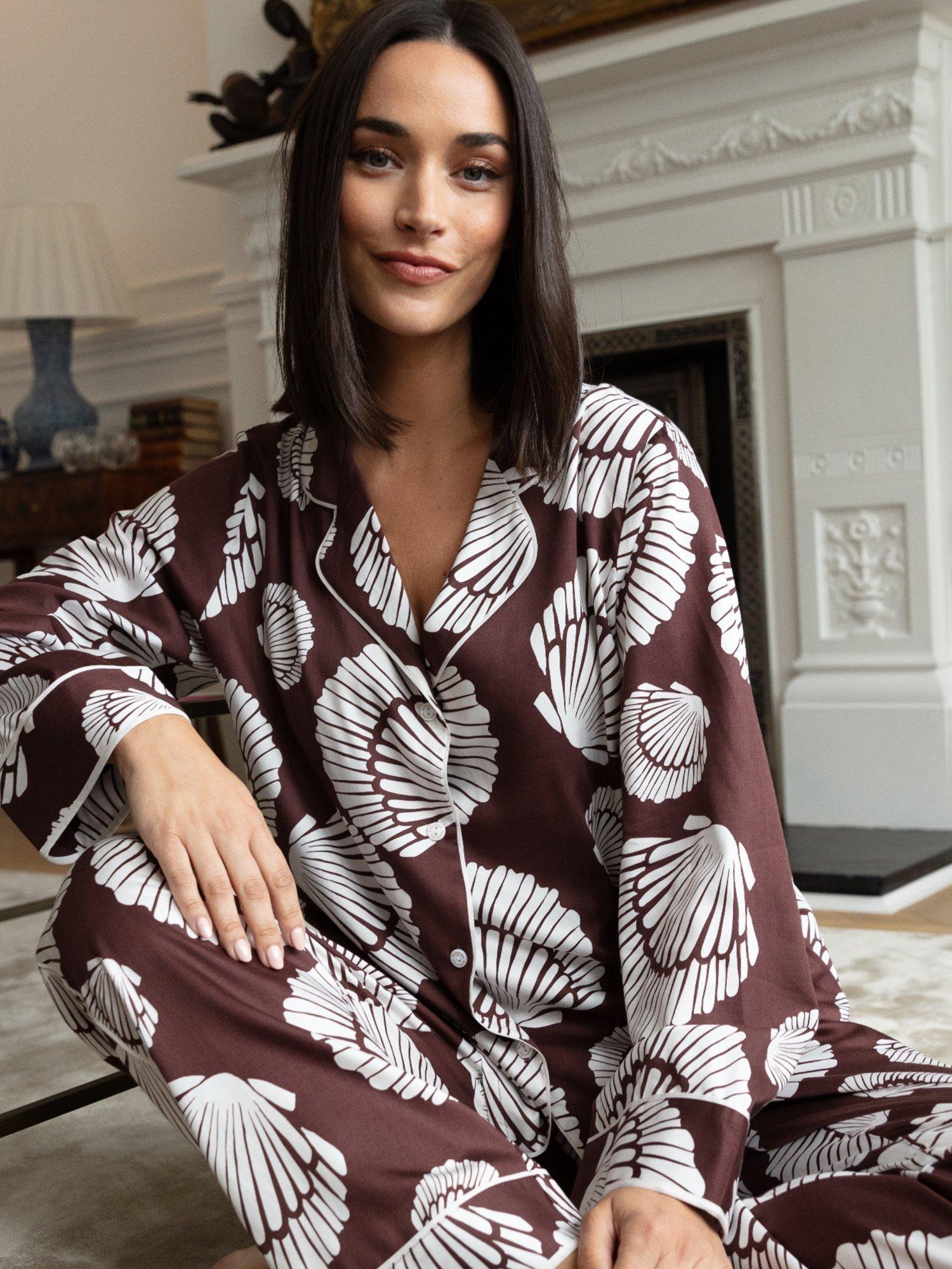 Fable & EveBattersea Shells Pyjama Set, Chocolate/Ivory