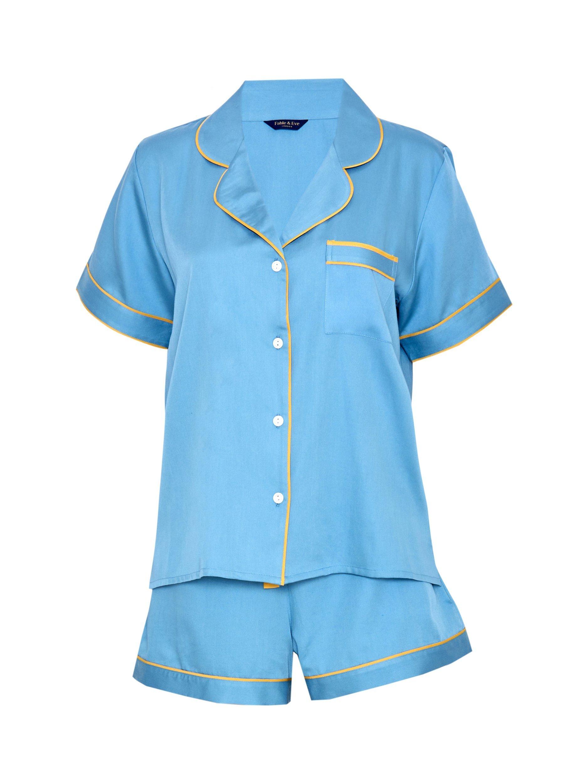 Fable & EveGreenwich Solid Shorts Pyjama Set, Cerulean Blue