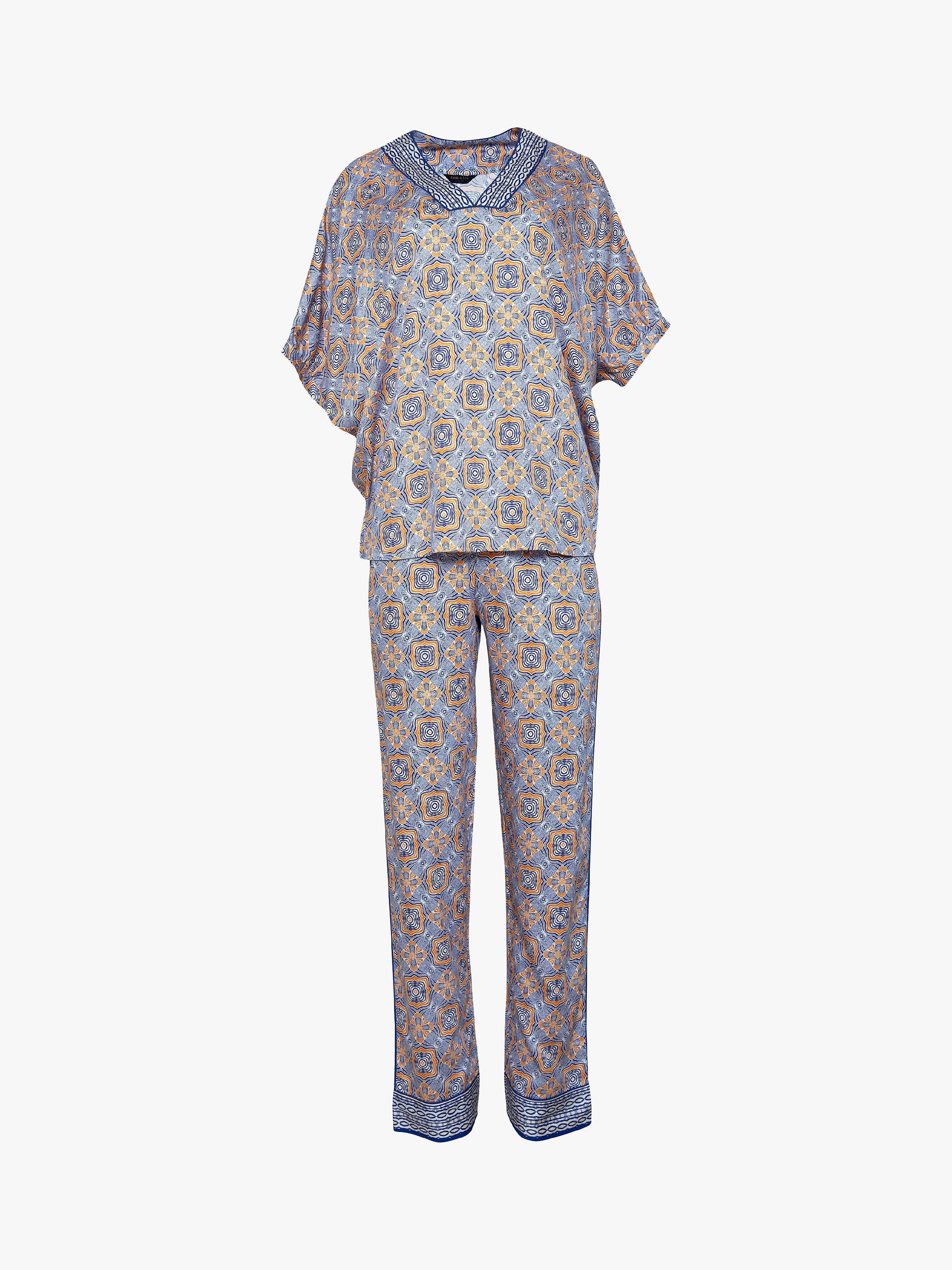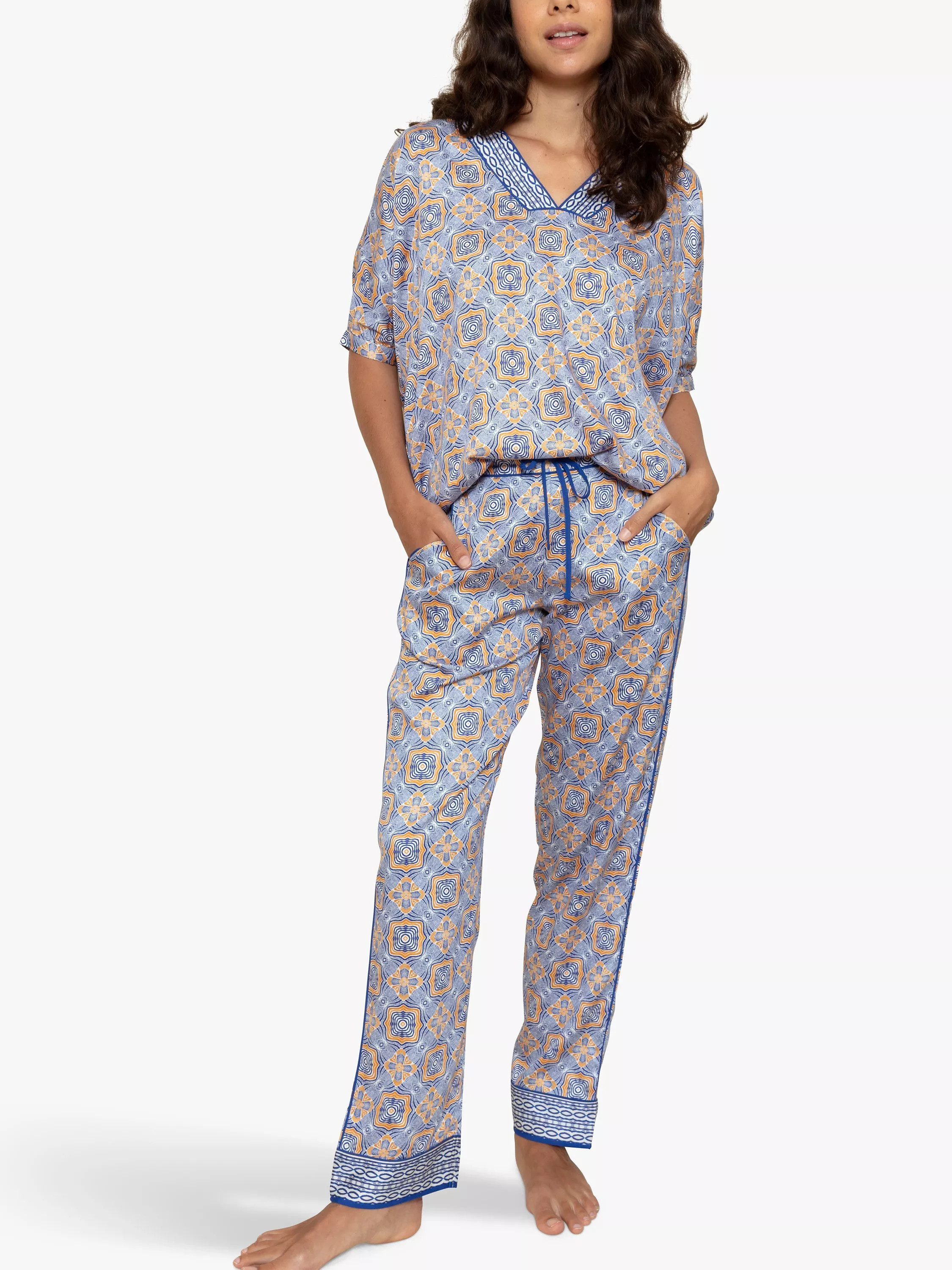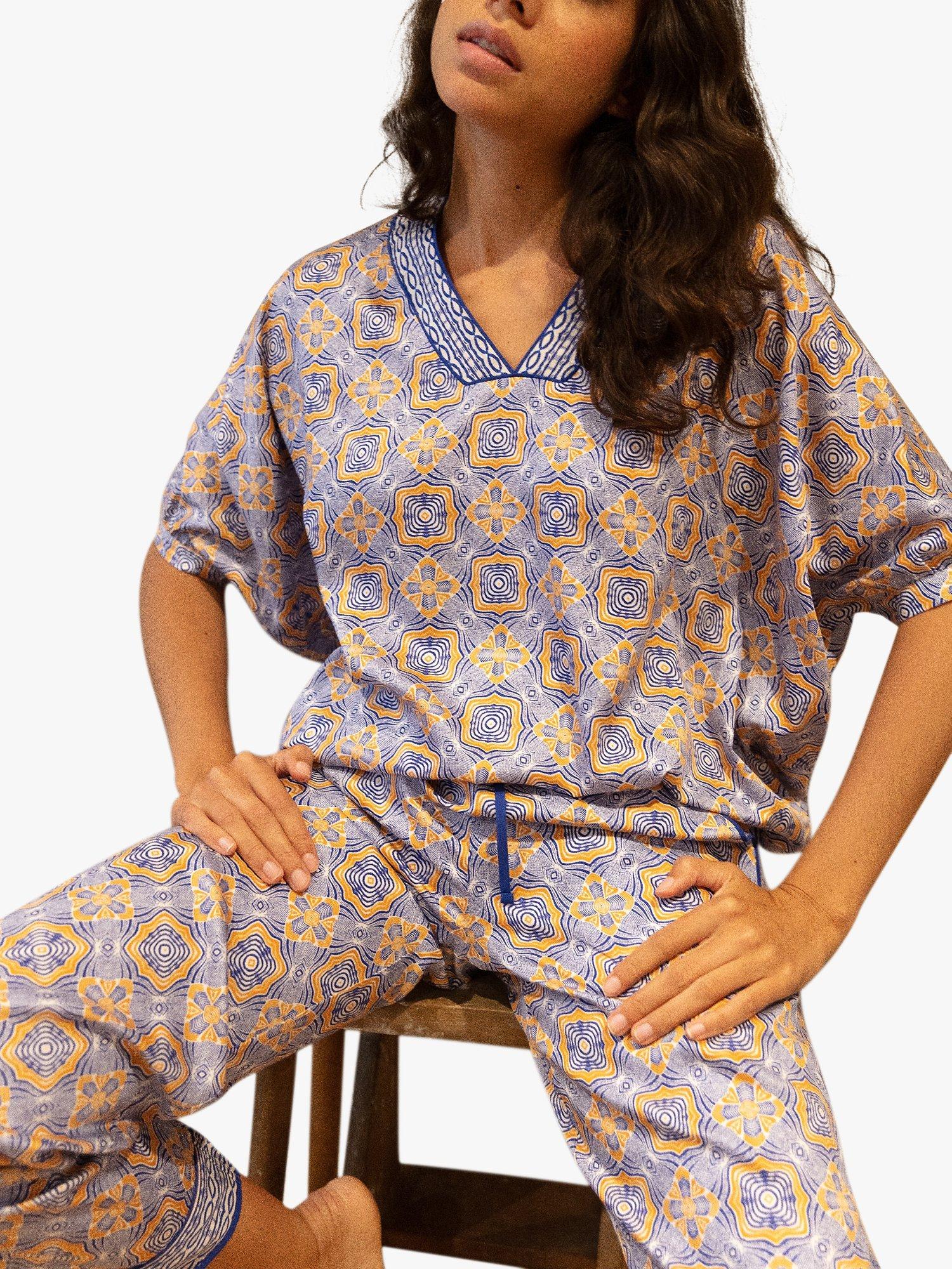Modern yet timeless elegance comes as standard in Fable & Eve's Hampstead geometric print pyjamas, as well as exquisite contrast print detailing. The fabric has to be touched to be believed as it's not just incredibly soft, it also has the most beautiful yet subtle sheen and rich colour. The combo of modal and cotton creates a fabric that moves with you not against you but also has a hidden super-power; the ability to keep you cool and comfy.