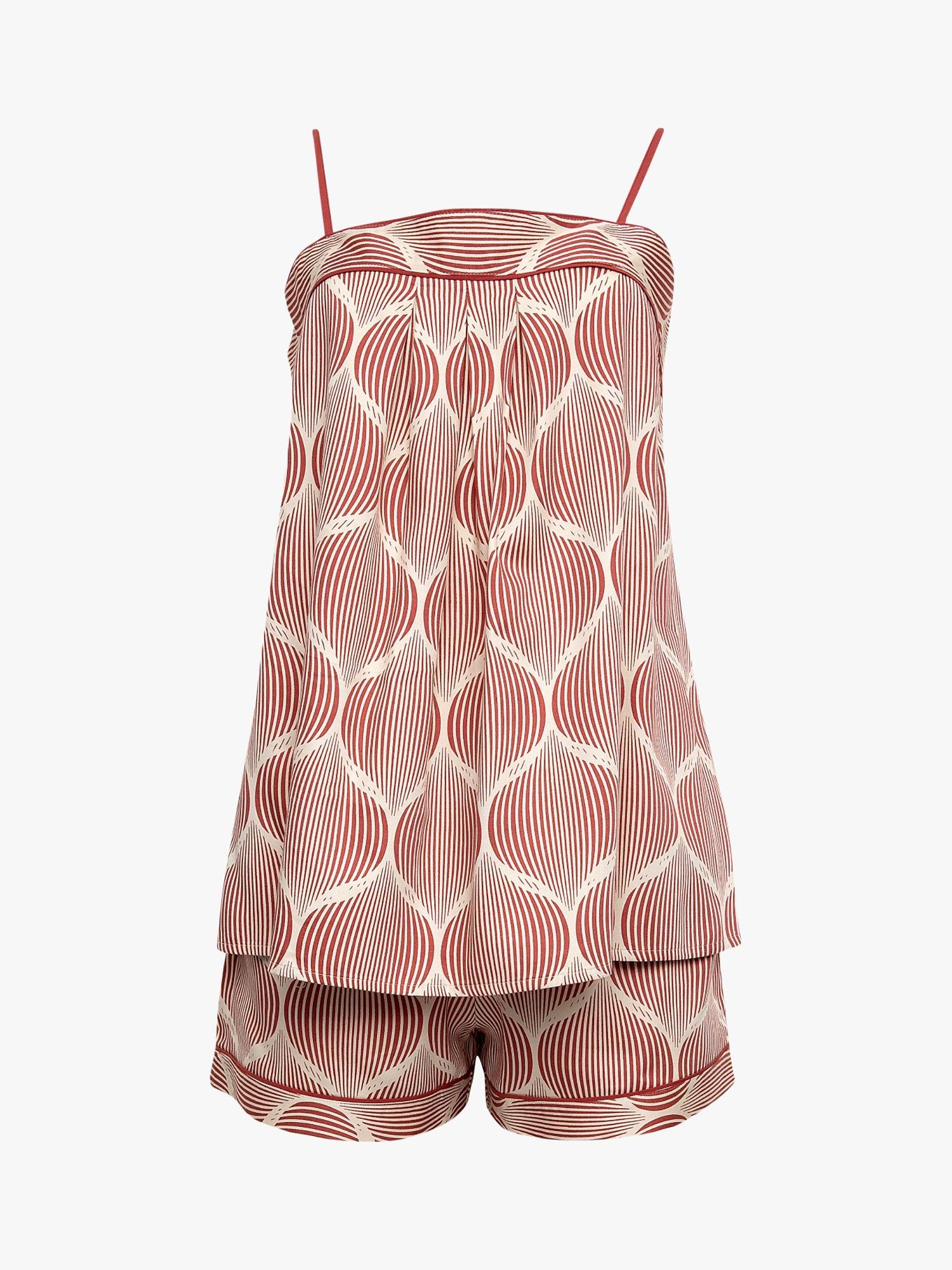 Fable & EveIslington Geometric Print Strappy Cami Pyjamas, Burnt Orange