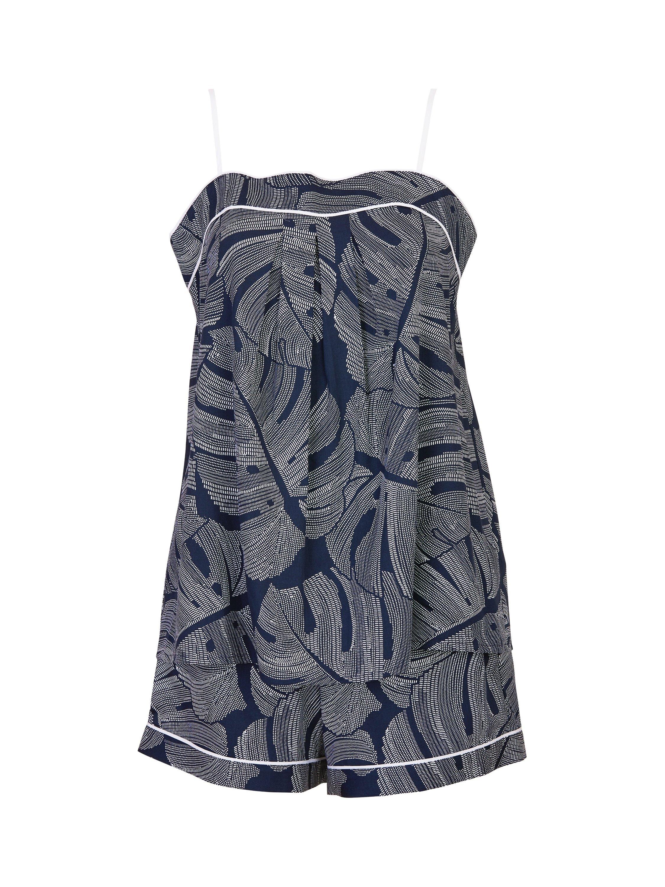 Fable & EveKnightsbridge Leaf Print Cami Pyjama Set, Navy/White