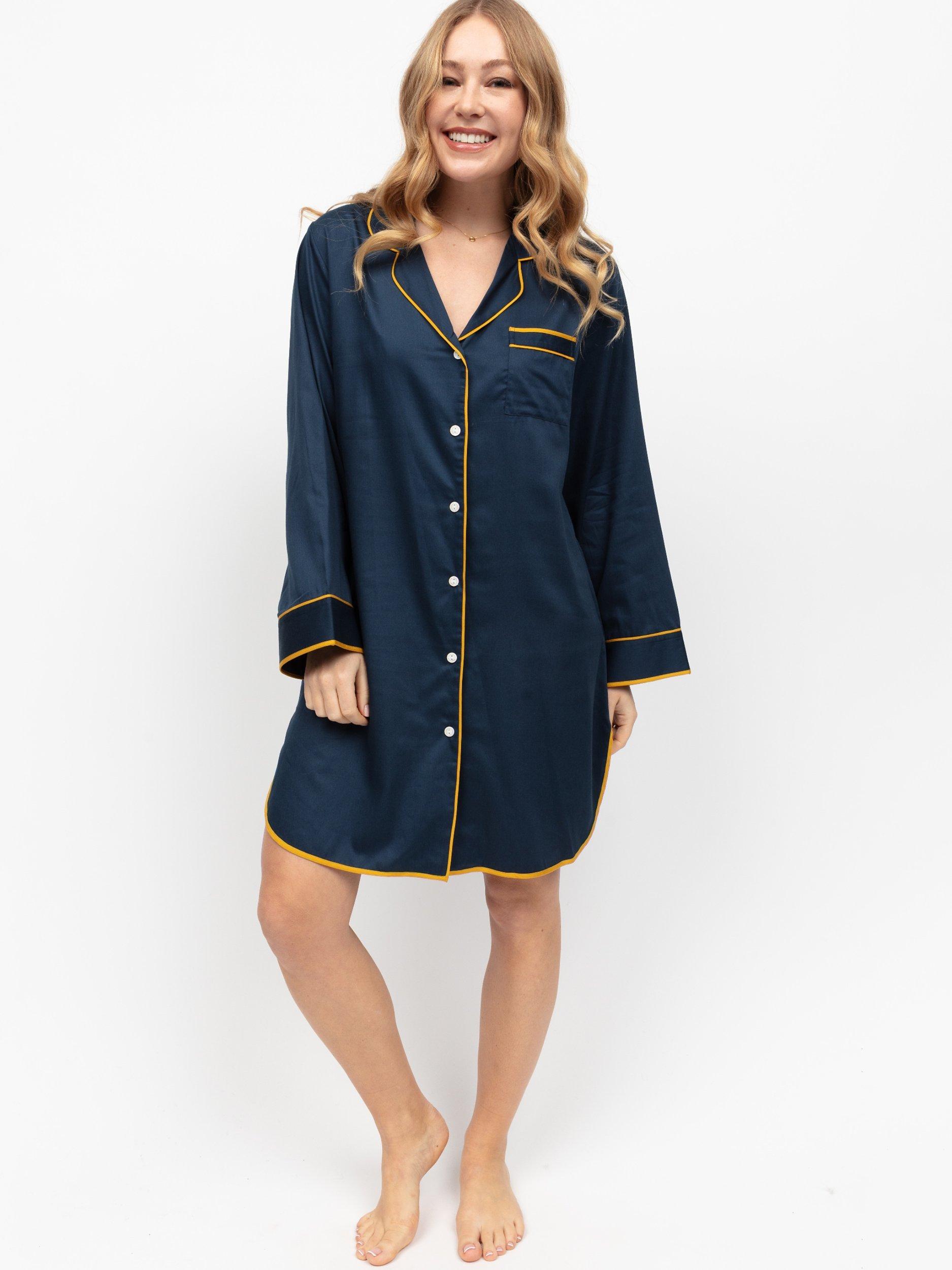 Fable & EveKnightsbridge Solid Long Sleeve Nightshirt, Navy