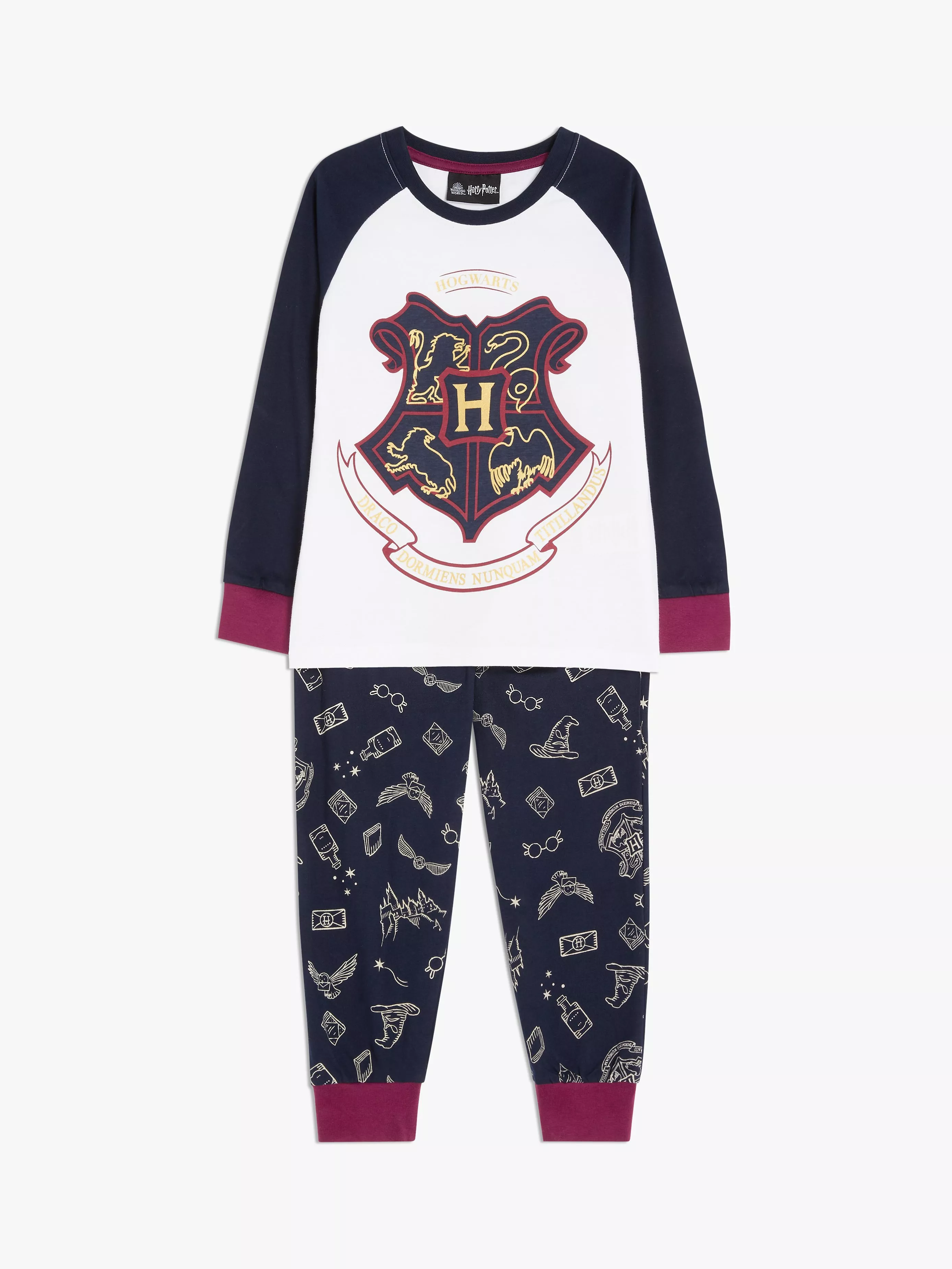 Fabric FlavoursKids' Harry Potter Hogwarts Crest Pyjamas, Navy/Multi