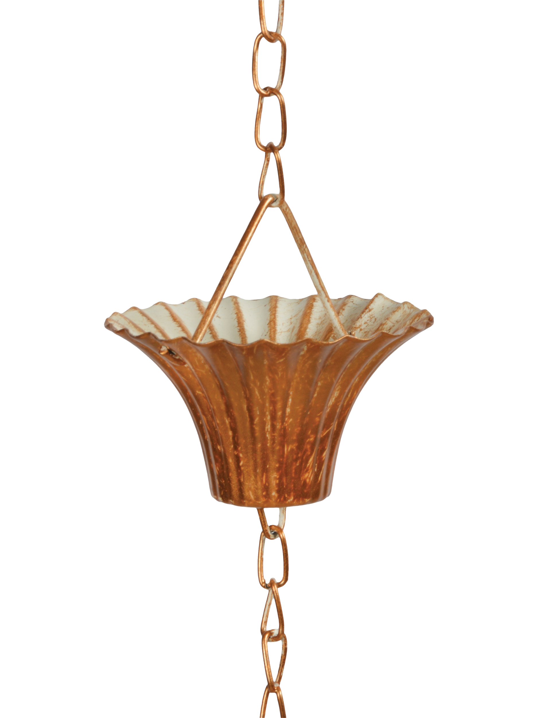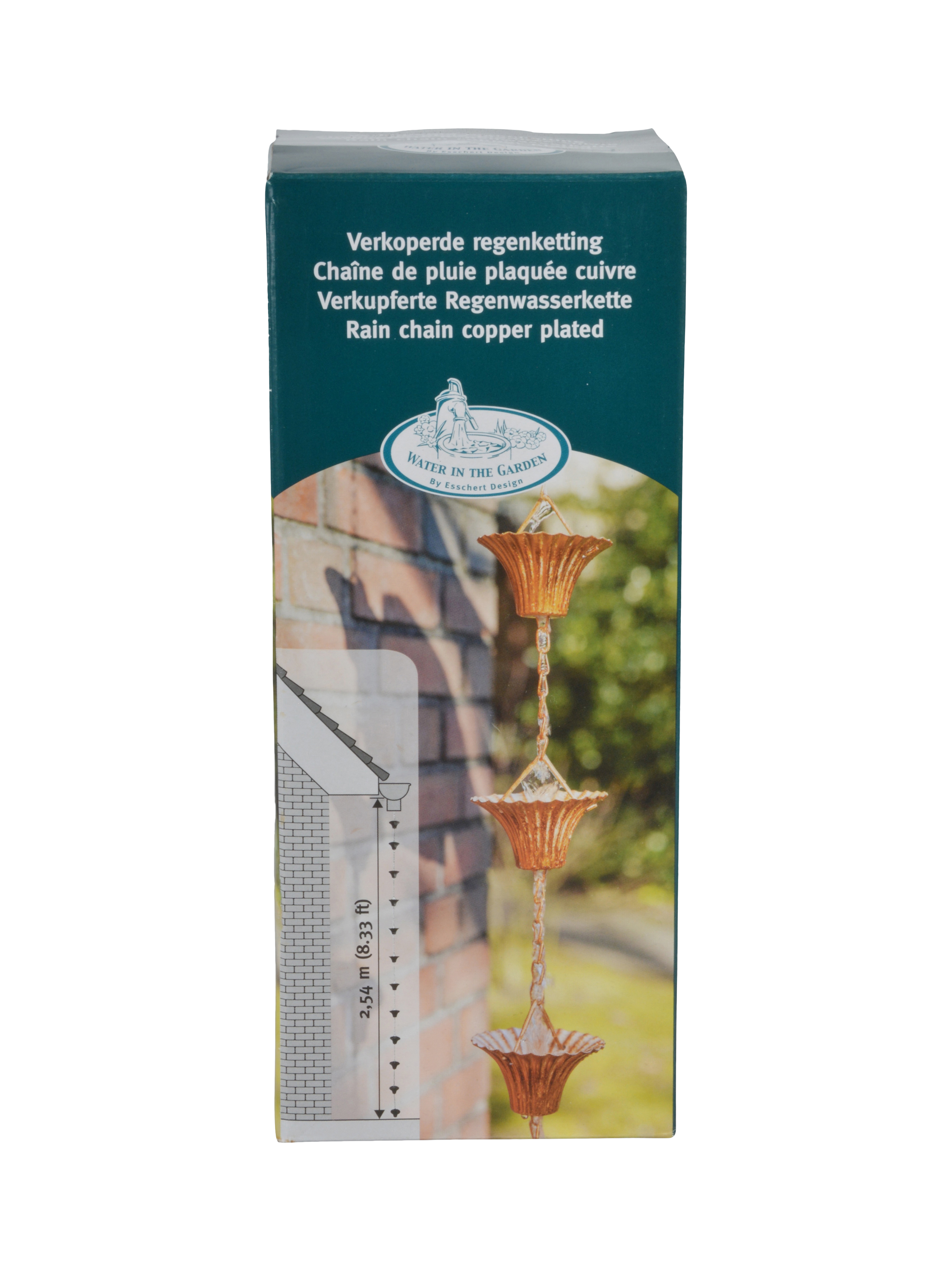 Ever since ancient times, people have understood copper's value and special properties. This rain chain has been finished with a decorative copper plate to make it a long-lasting design. This European-inspired rain chain effortlessly complements any architectural style, from rustic to modern, enhancing your home's curb appeal.