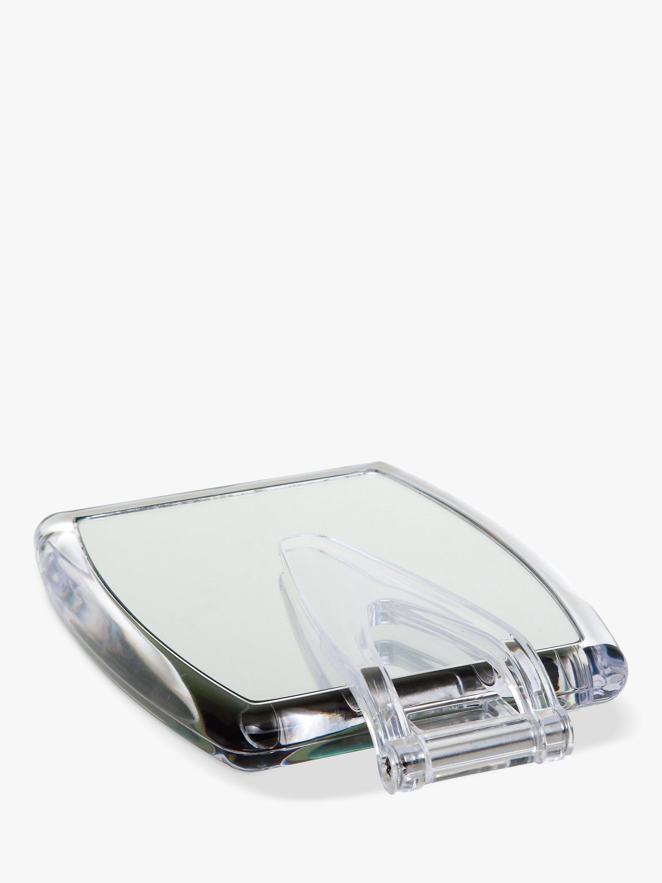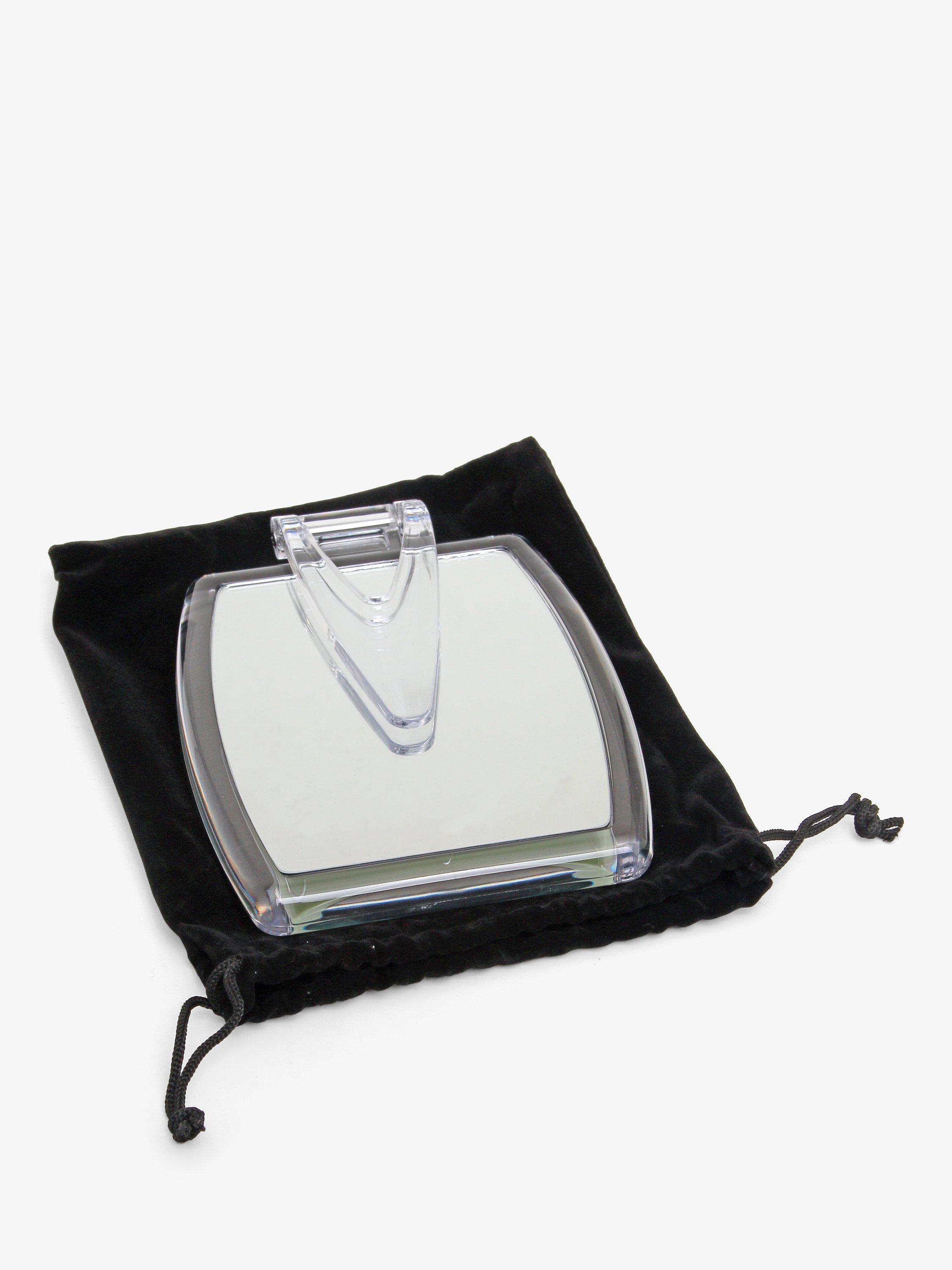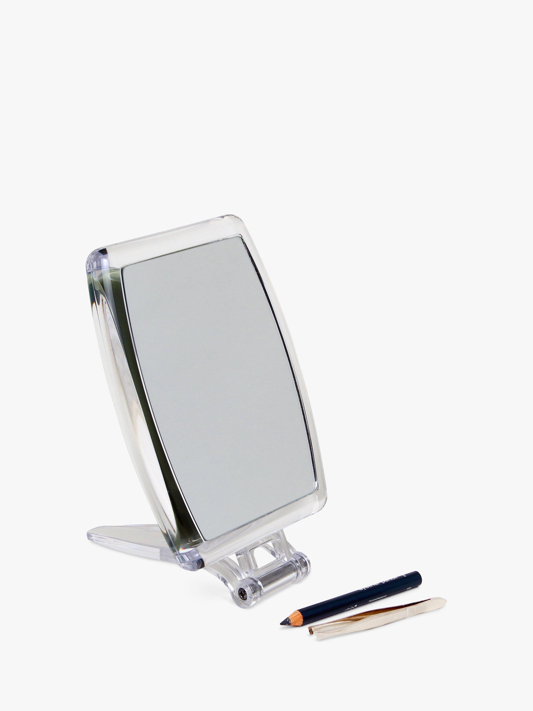 This compact and lightweight travel mirror is the perfect companion to take with you anywhere. The frame and adjustable stand is made from clear acrylic and the glass mirror has x 10 magnification and true reflection on the reverse.