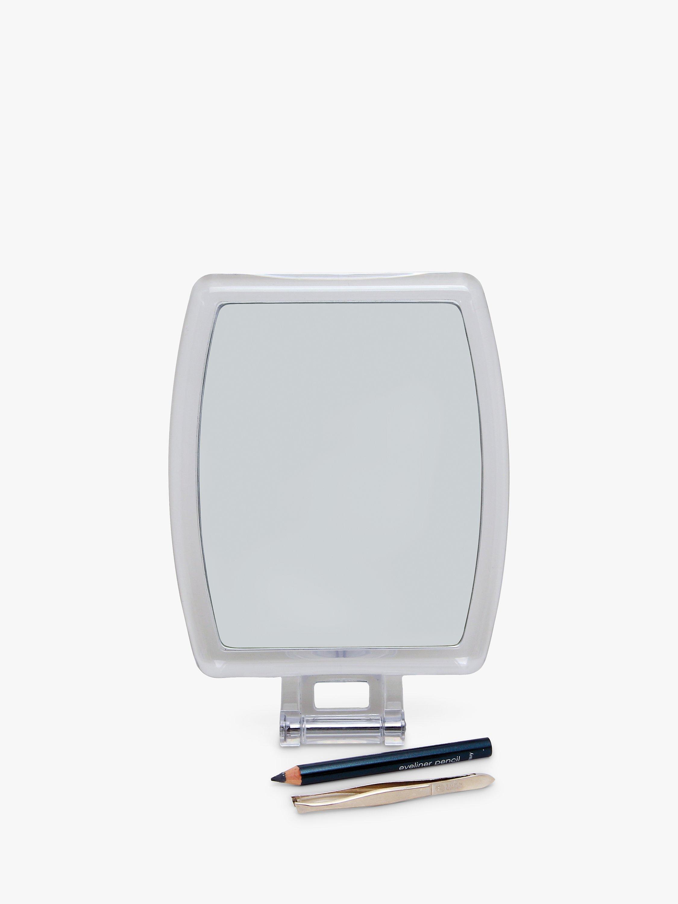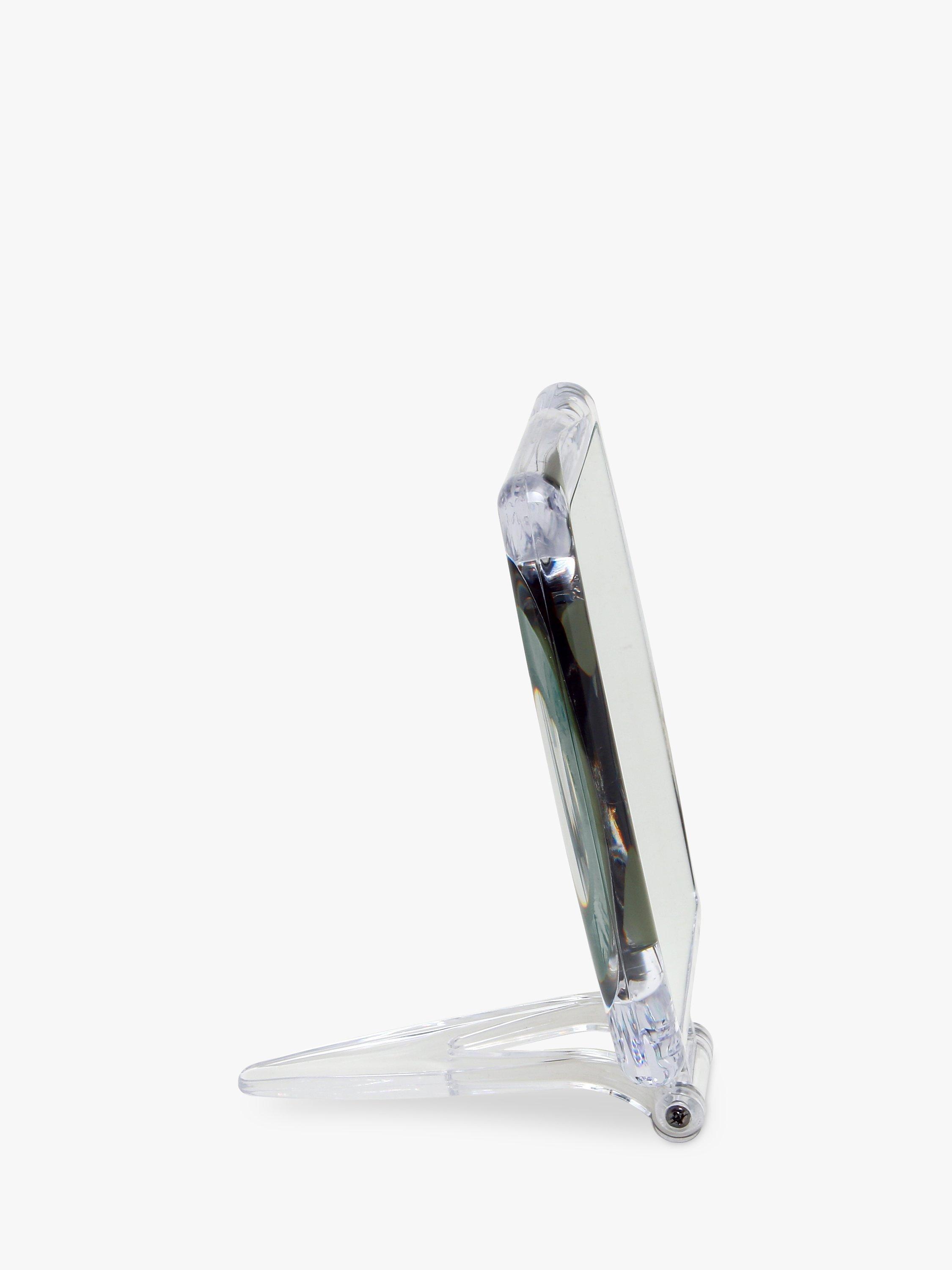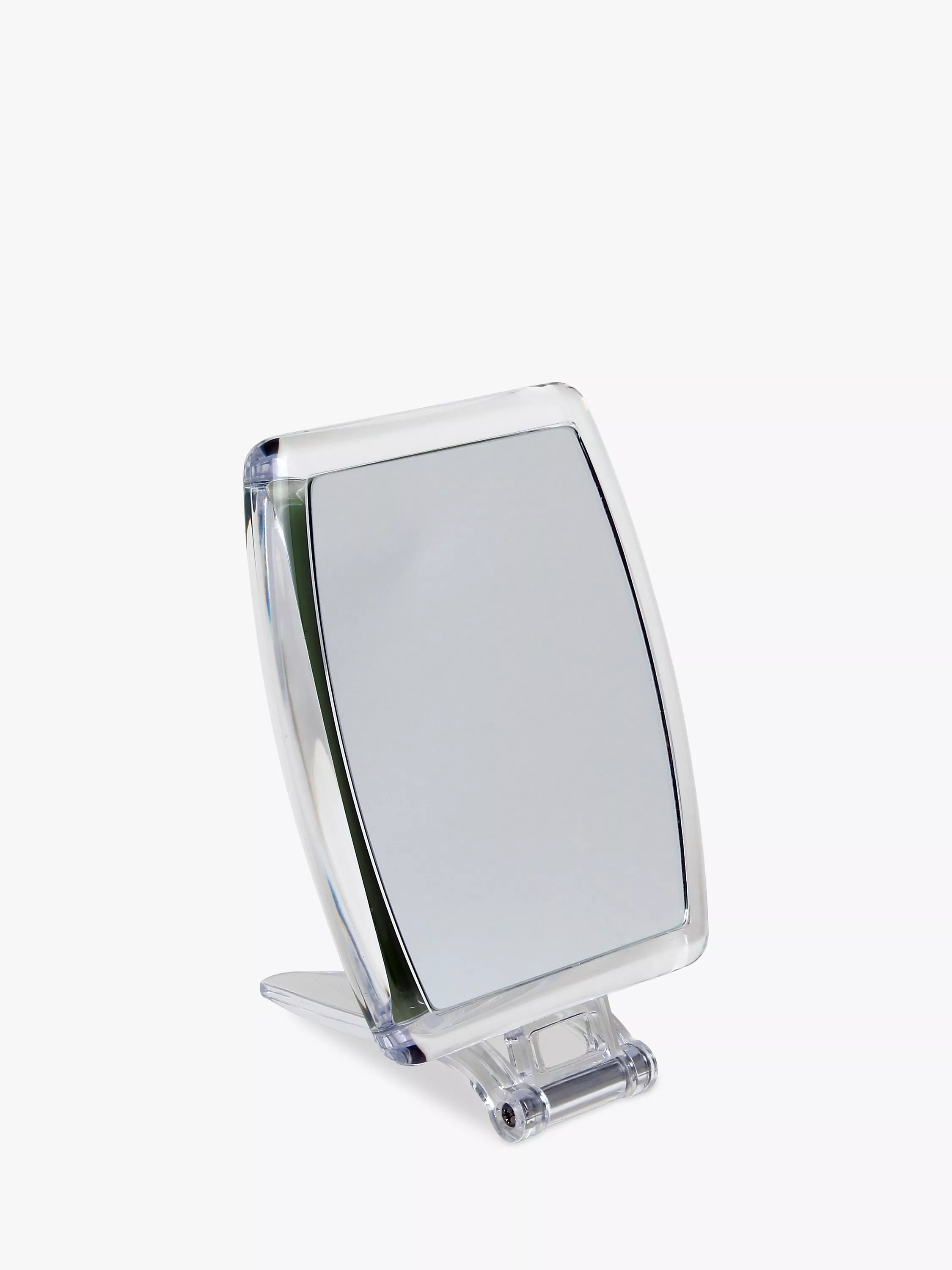 This compact and lightweight travel mirror is the perfect companion to take with you anywhere. The frame and adjustable stand is made from clear acrylic and the glass mirror has x 10 magnification and true reflection on the reverse.