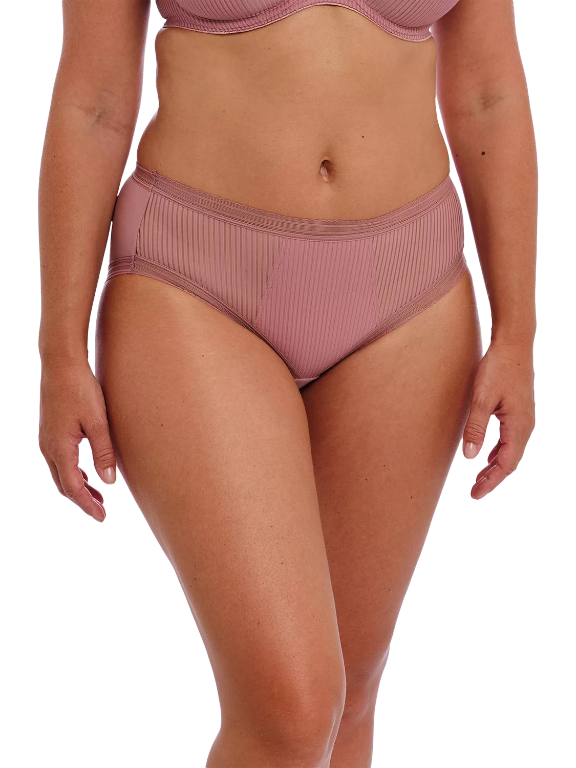 With a modern soft handle striped jacquard fabric adorning the front, Fusion Brief features a deep flat elastic at the waist and front leg for a smooth finish. It has a plain soft handle fabric through the back and a gather at the centre back seam for shaping.