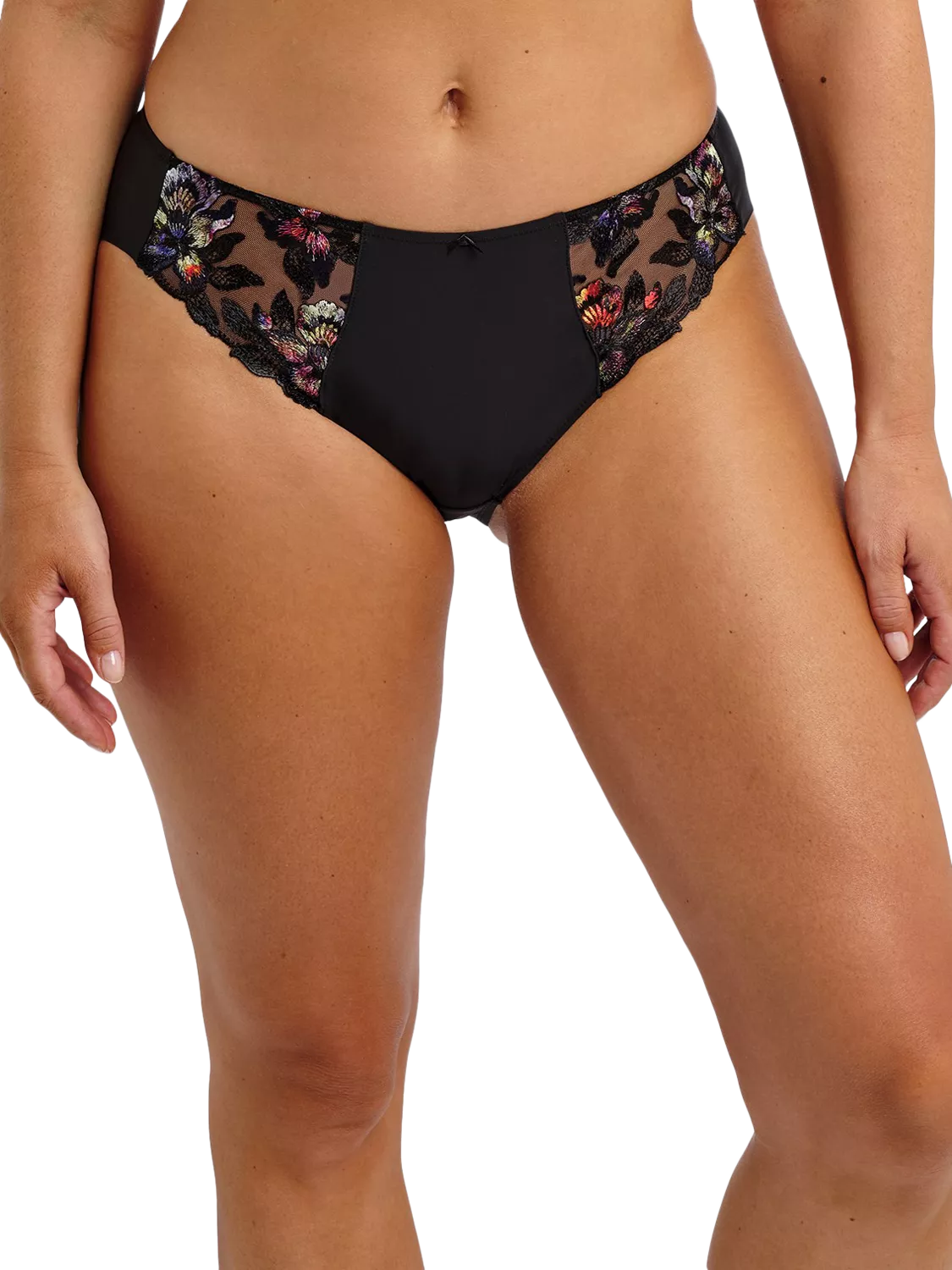 The Brief is made from soft handle clean cut fabric to give a smooth finish and second skin feeling with no visible pant line and features opaque front panel for modesty and luxurious multi-tonal embroidery with metallised fibre detail at the front leg.