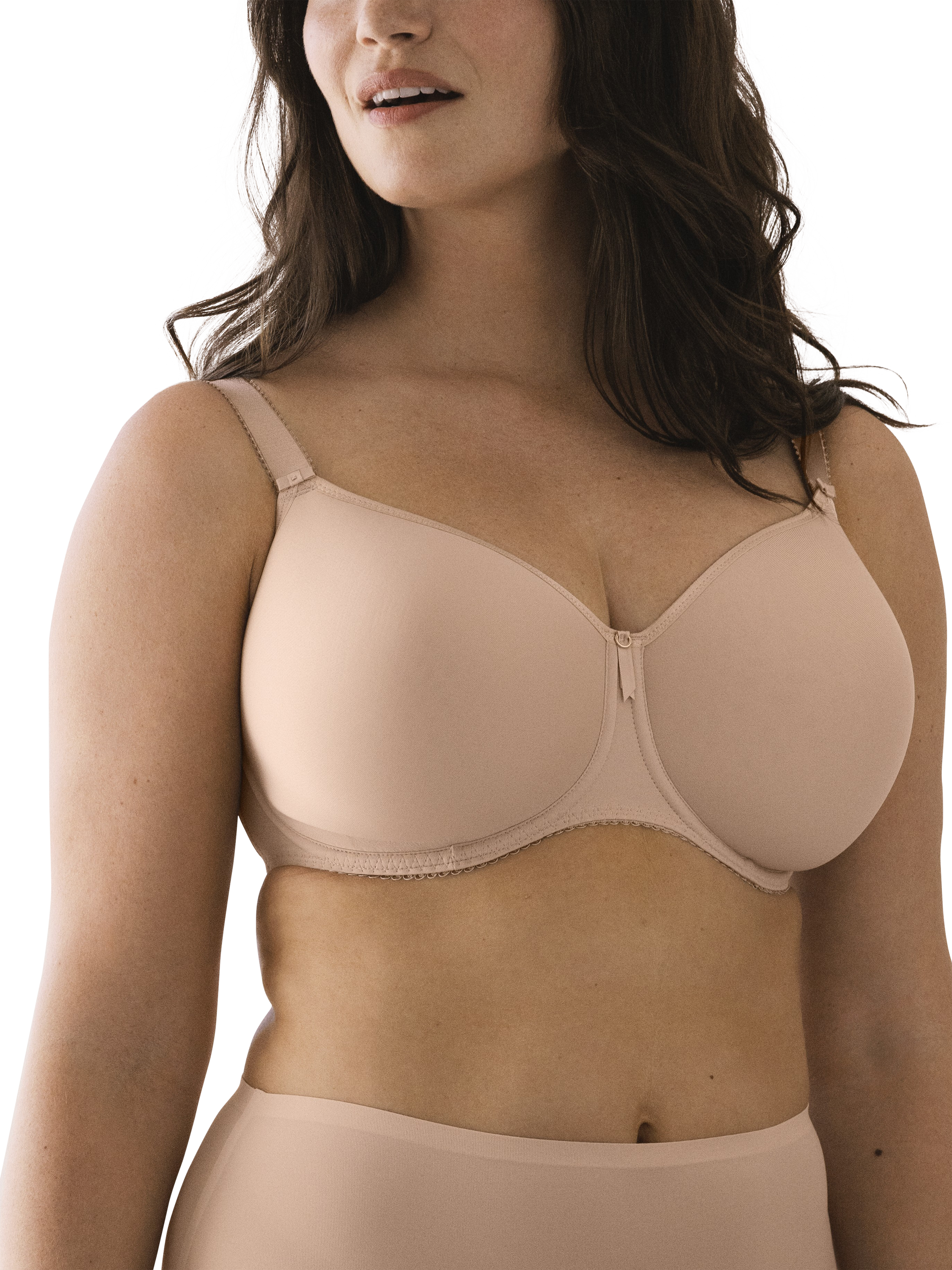 Featuring a smooth, plain cradle and utilising modern elastics along the neck edge and back it has a chic and refined look. The lightweight and breathable spacer mould offers great shape and fit, with full breast coverage in the cup without adding volume. The cups are also seam-free for a smooth silhouette under clothing.