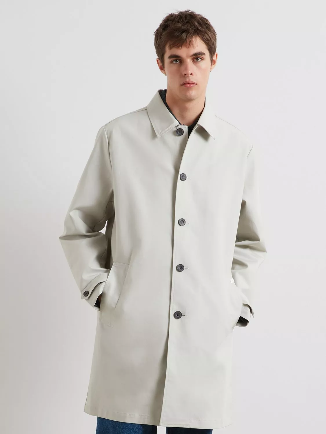 A knee-length trench mac by Farah. Thoughtful details and soft cotton make it a clever choice for smart layering, the perfect piece for wherever your plans take you.