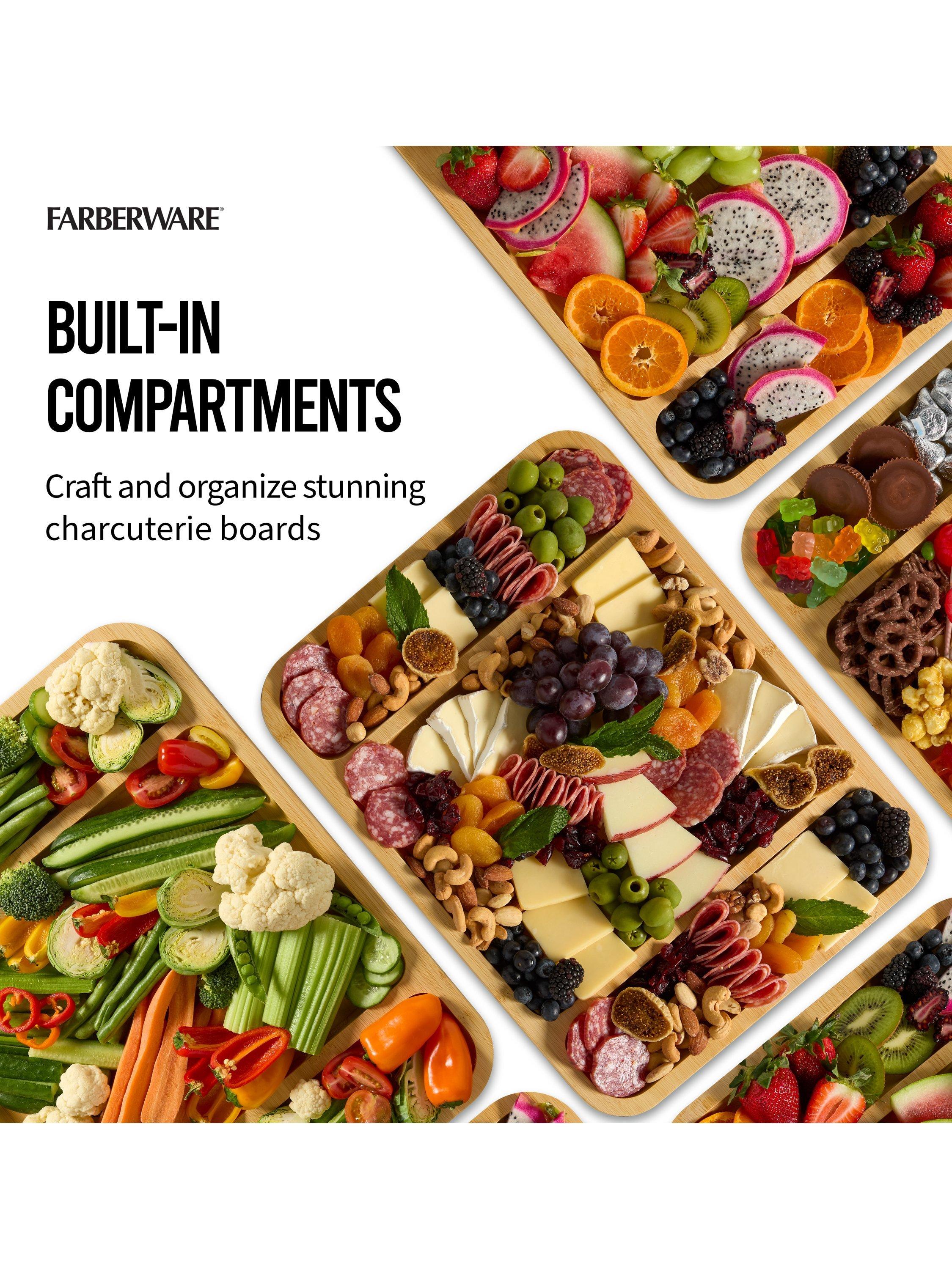 FarberwareBuild-a-Board 3 Compartment Bamboo Rectangular Platter with Cover, 40cm