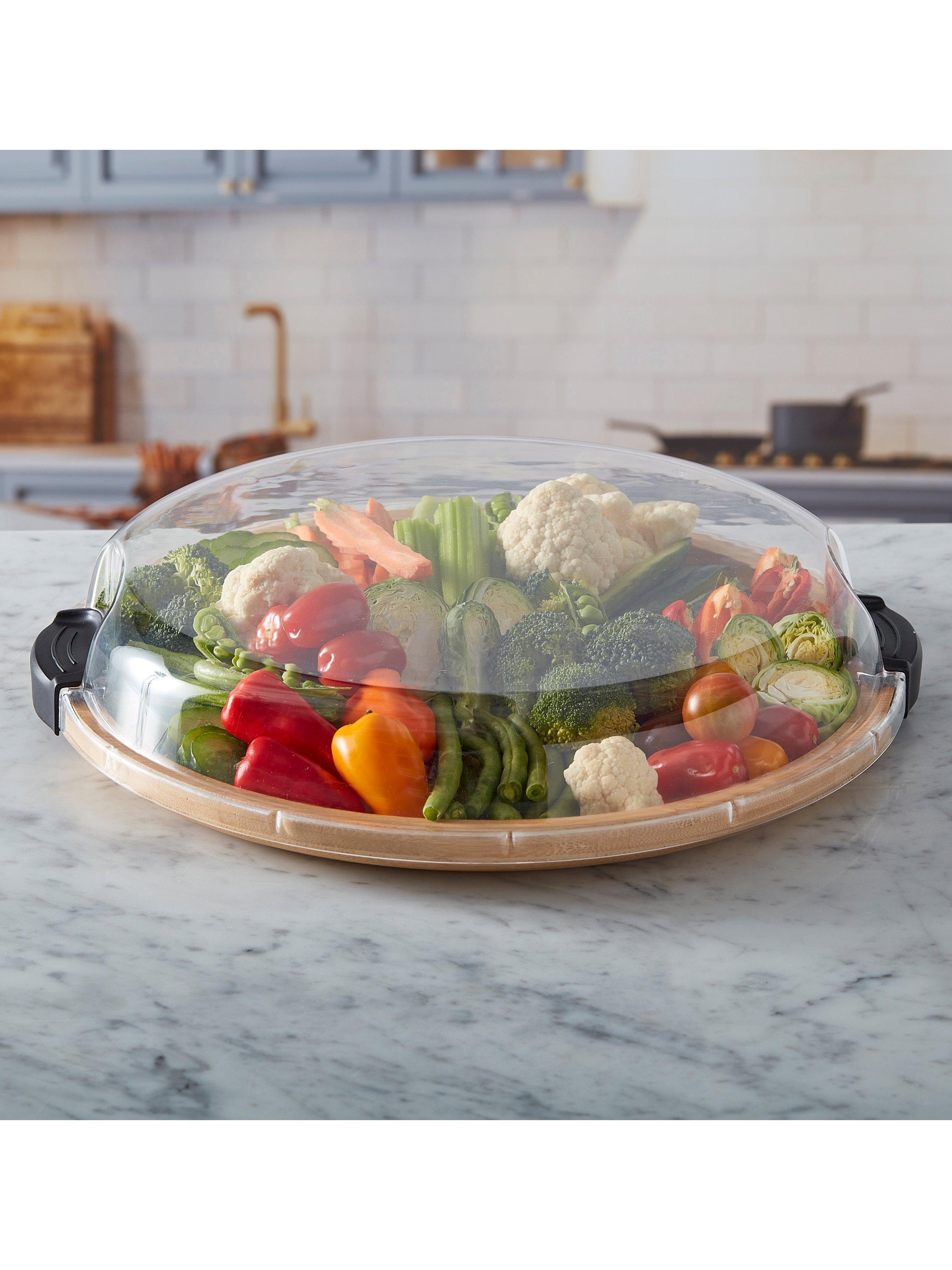 Say goodbye to boring serving and storage. As stylish as it is practical, this round platter is made from bamboo with a clear lid so it's easy to see what's inside. Great for hosting and for everyday use, it's ideal for serving snacks and a charcuterie spread at parties and events, indoors and outdoors.