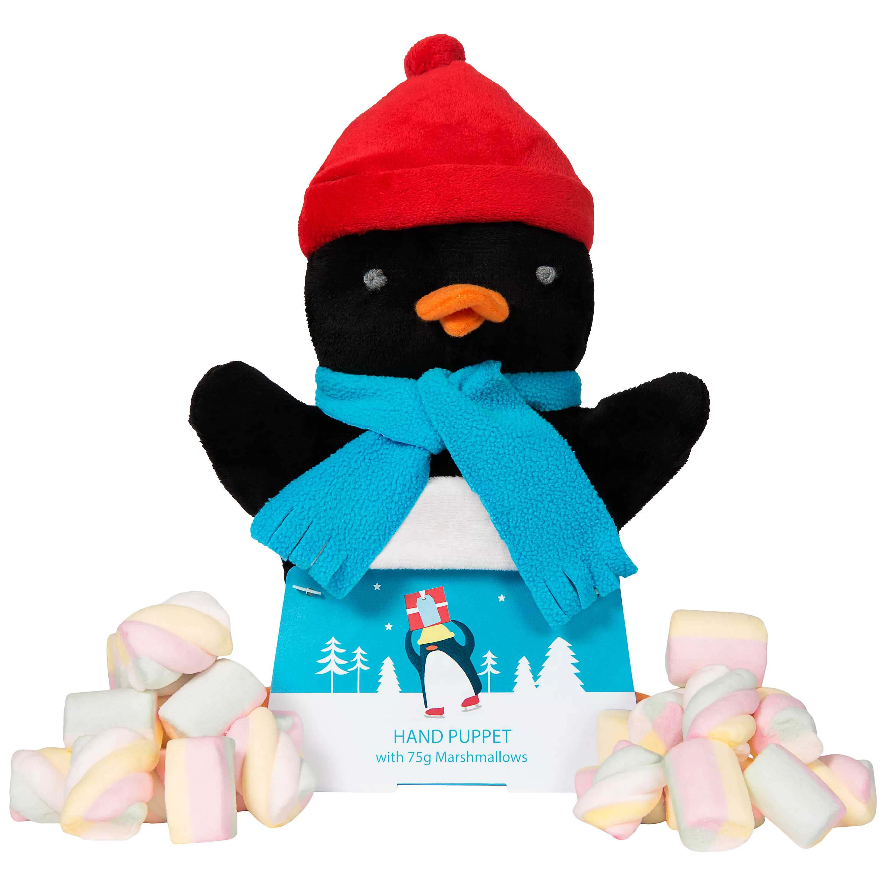 Making up a combination of tasty treats and a fun toy, this penguin hand puppet is paired with 50g of marshmallows to make it an ideal stocking filler for little ones.