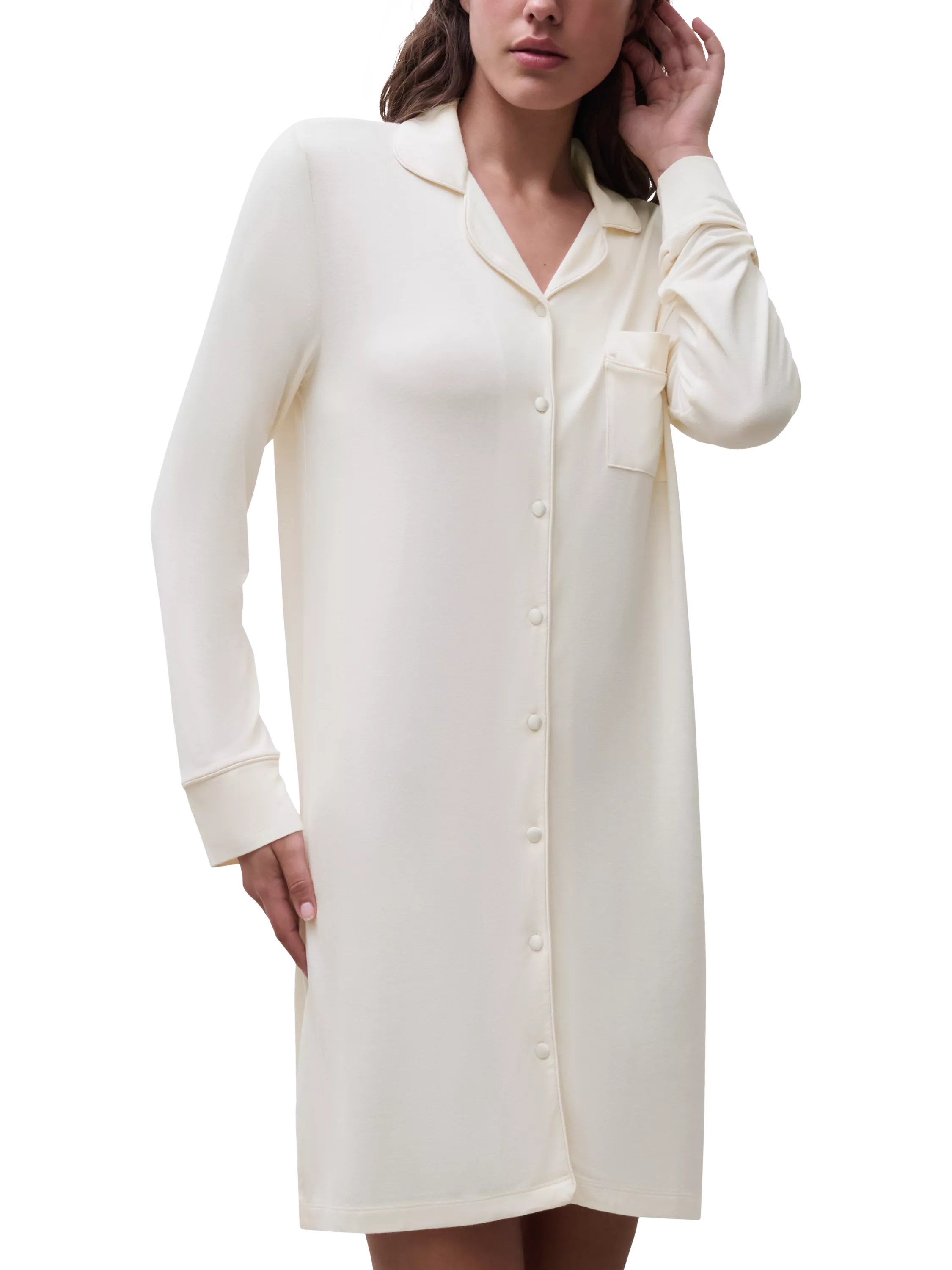 The Daisy range comes in a very soft, daily wear nightdress. It features elegant satin detailing on the trims and a button-down front for a touch of sophistication. Made with incredibly soft viscose (from bamboo), this nightdress is designed for ultimate comfort.