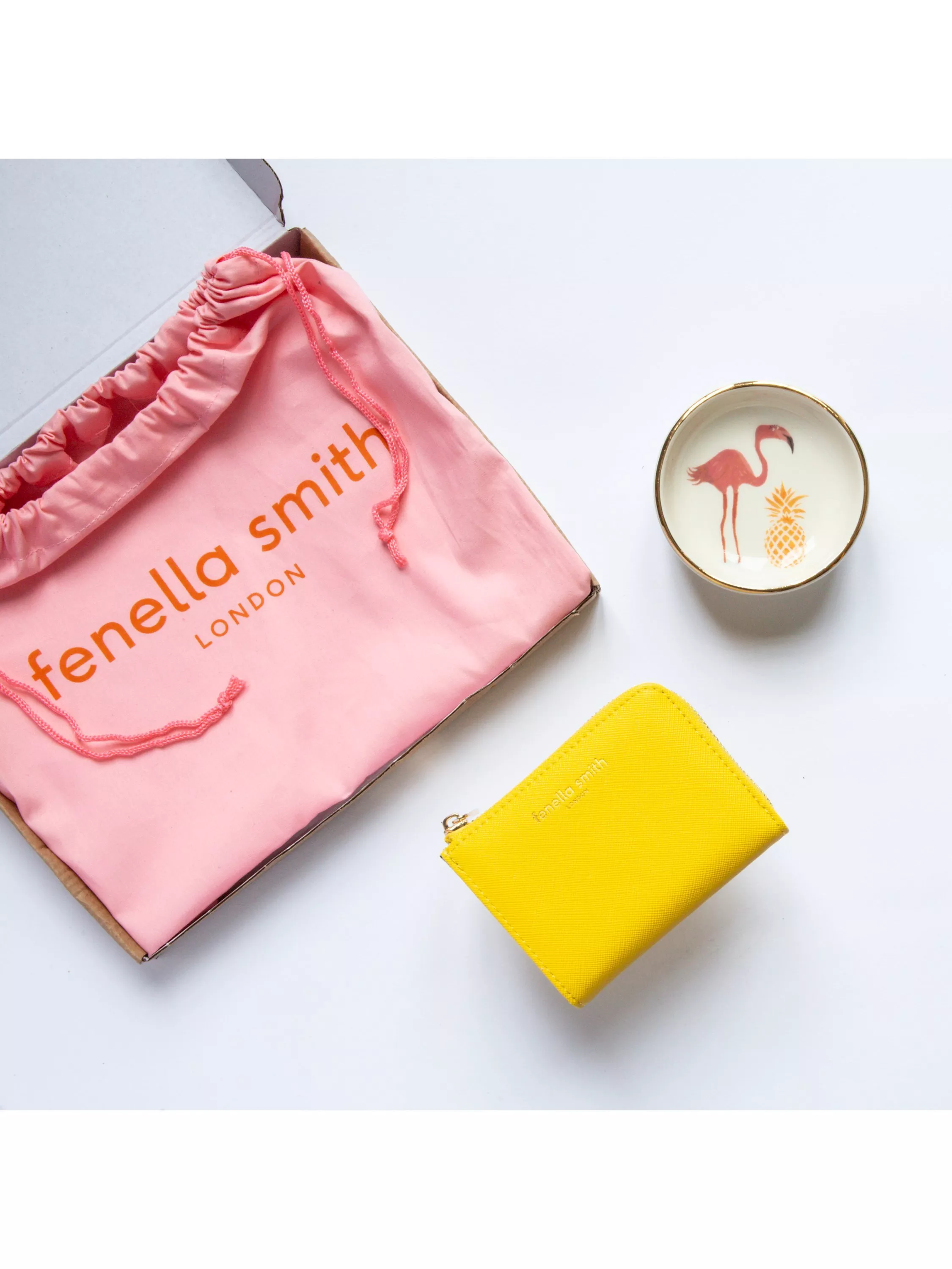 Fenella SmithFlamingo Ring Plate & Yellow Purse Letterbox Gift Set