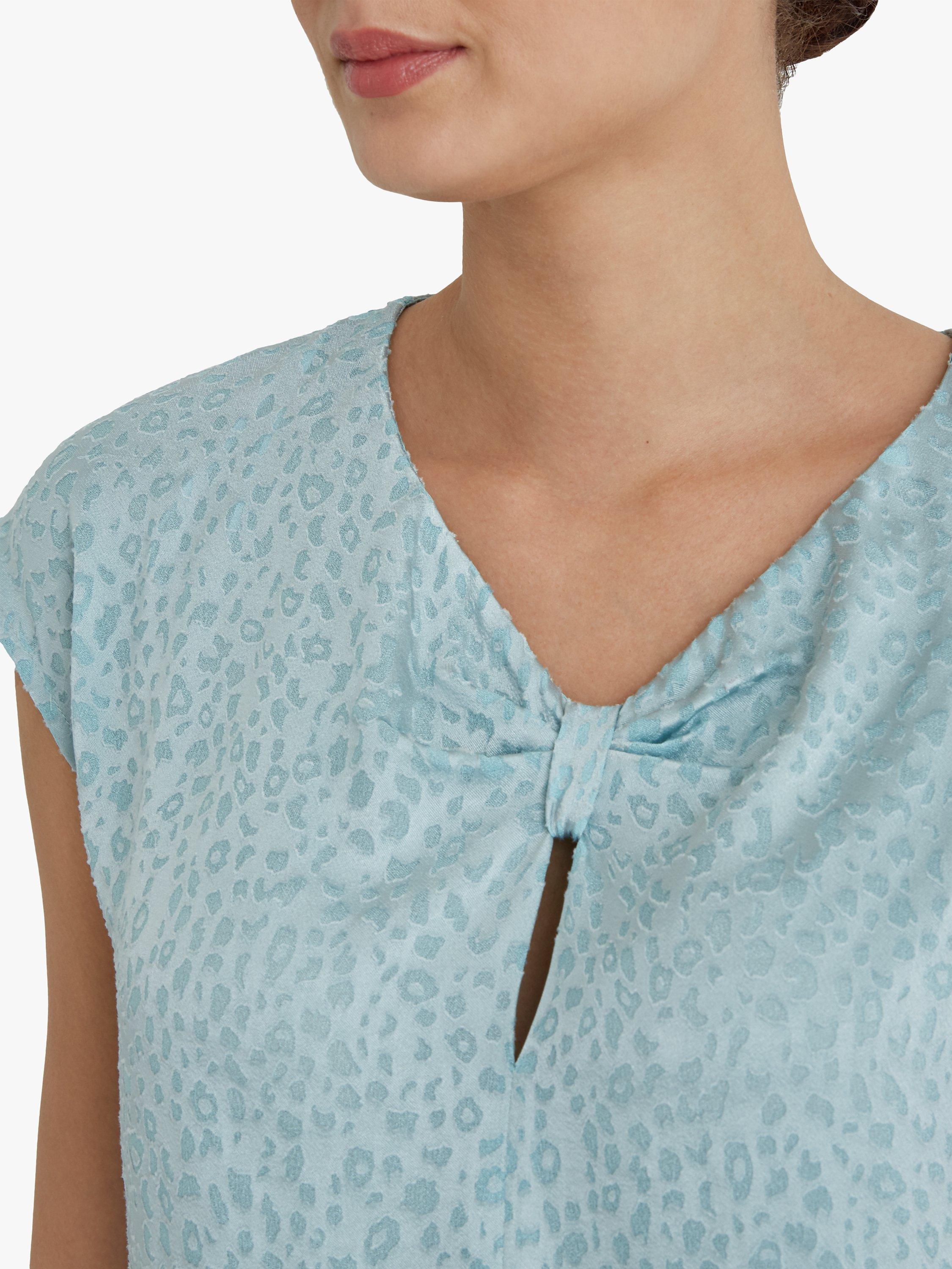 Fenn Wright Manson's Eliane top is made from a delicate burn-out fabric giving a beautiful texture and drape. Softly skimming the figure, it's detailed with a pretty front knot and grown-on capped sleeves. Pair it with the tailored trouser and heels for work meetings, or with pumps for weekend brunching.