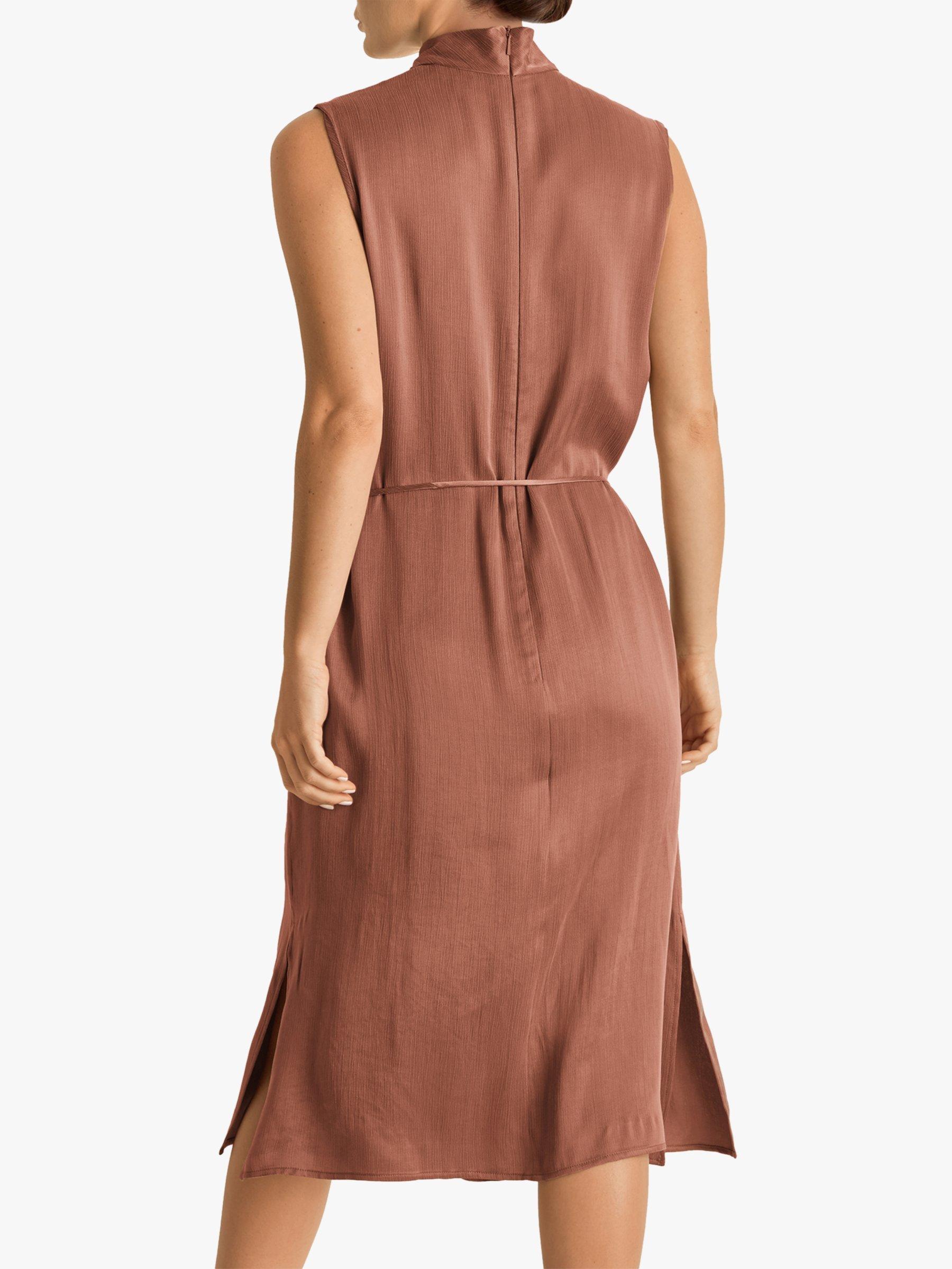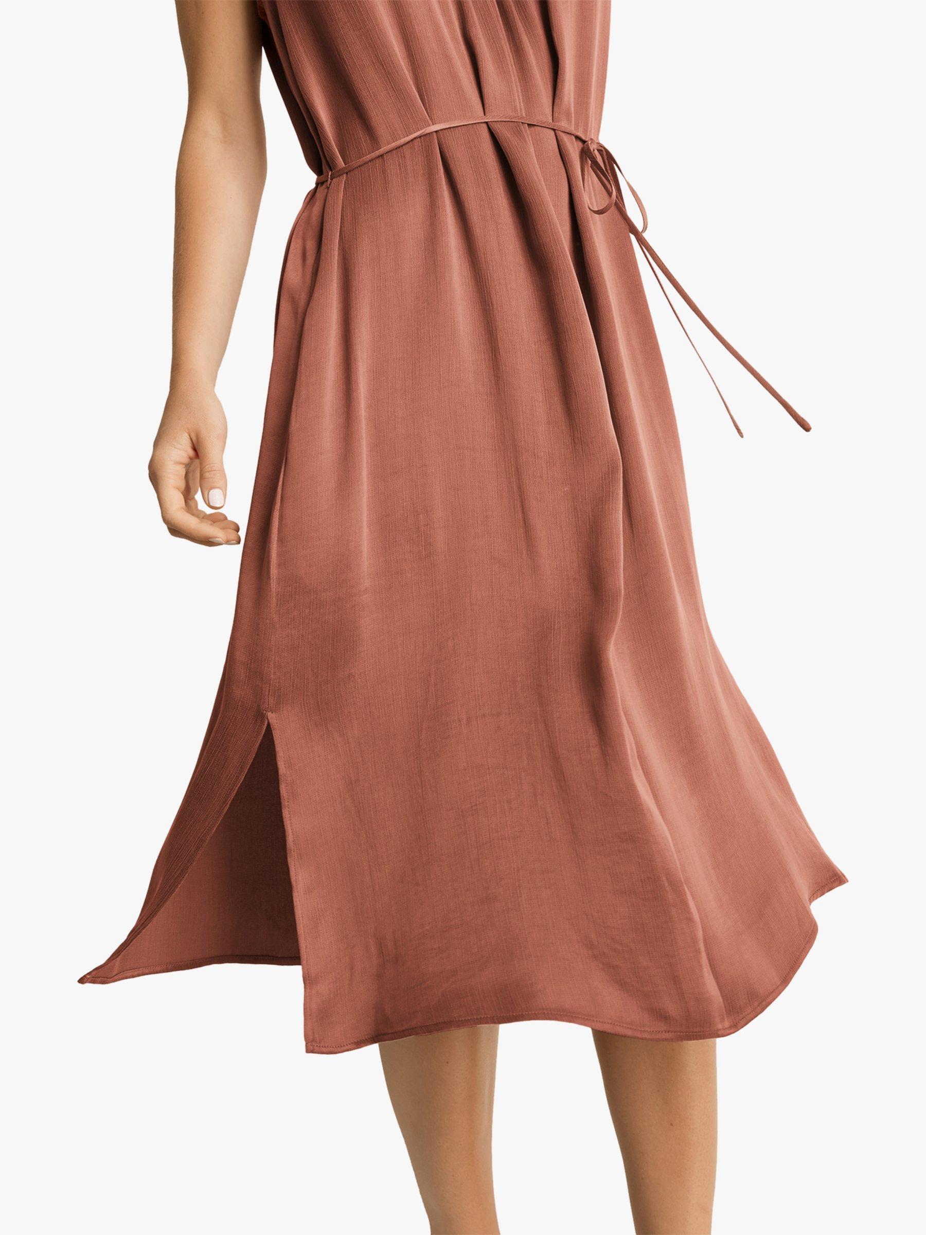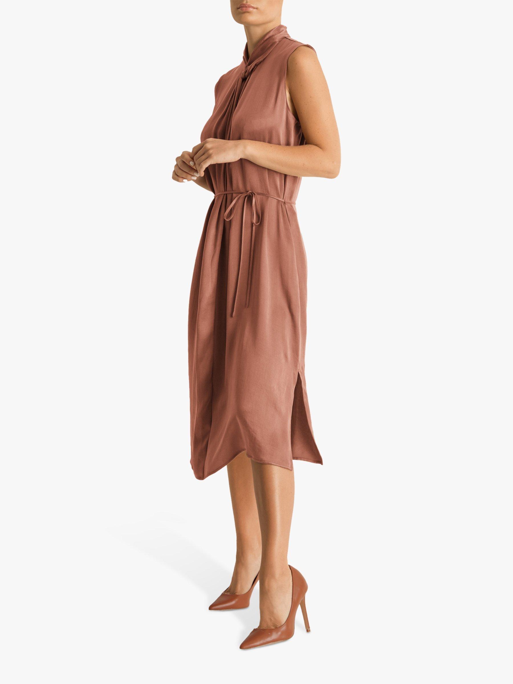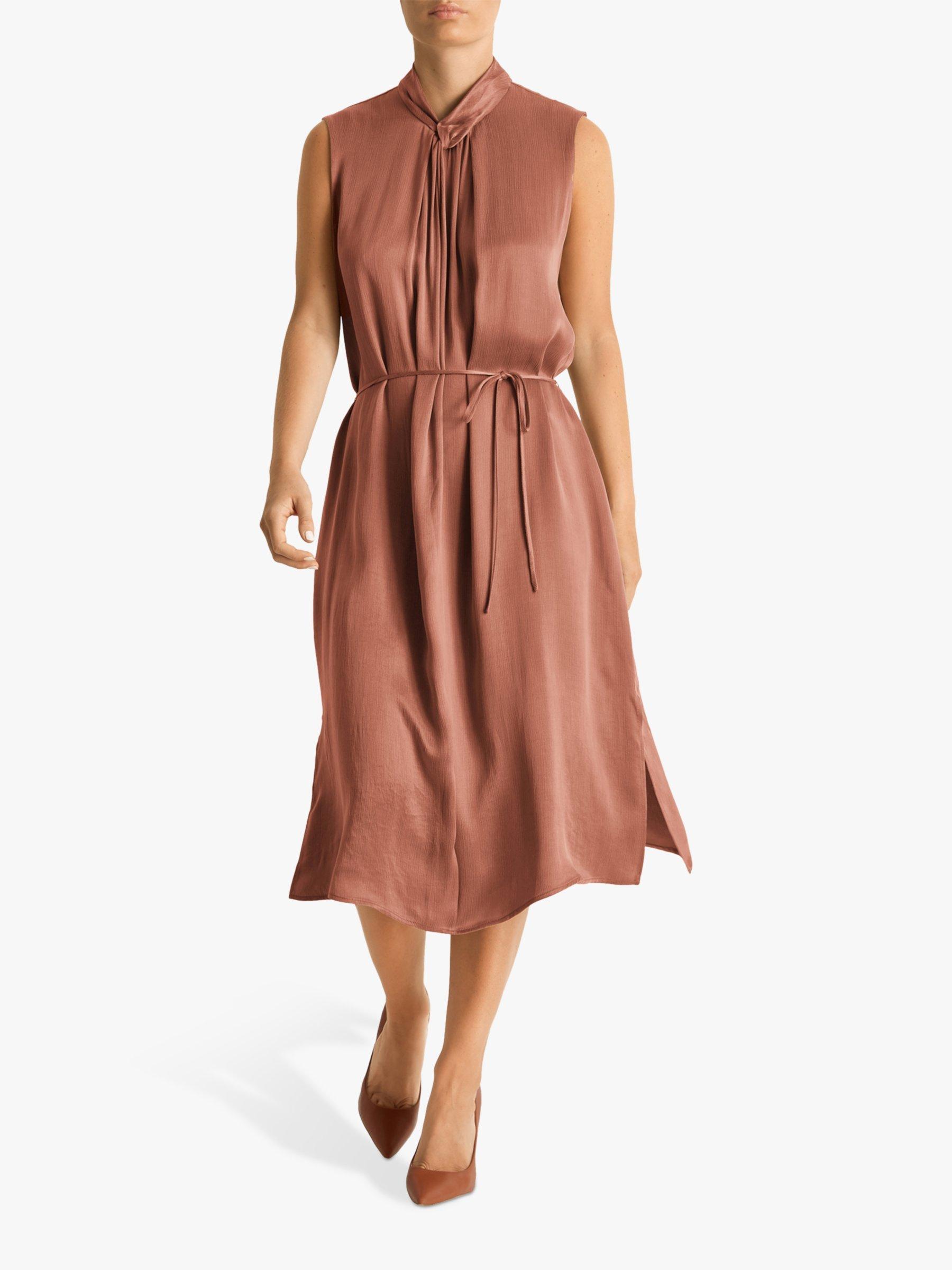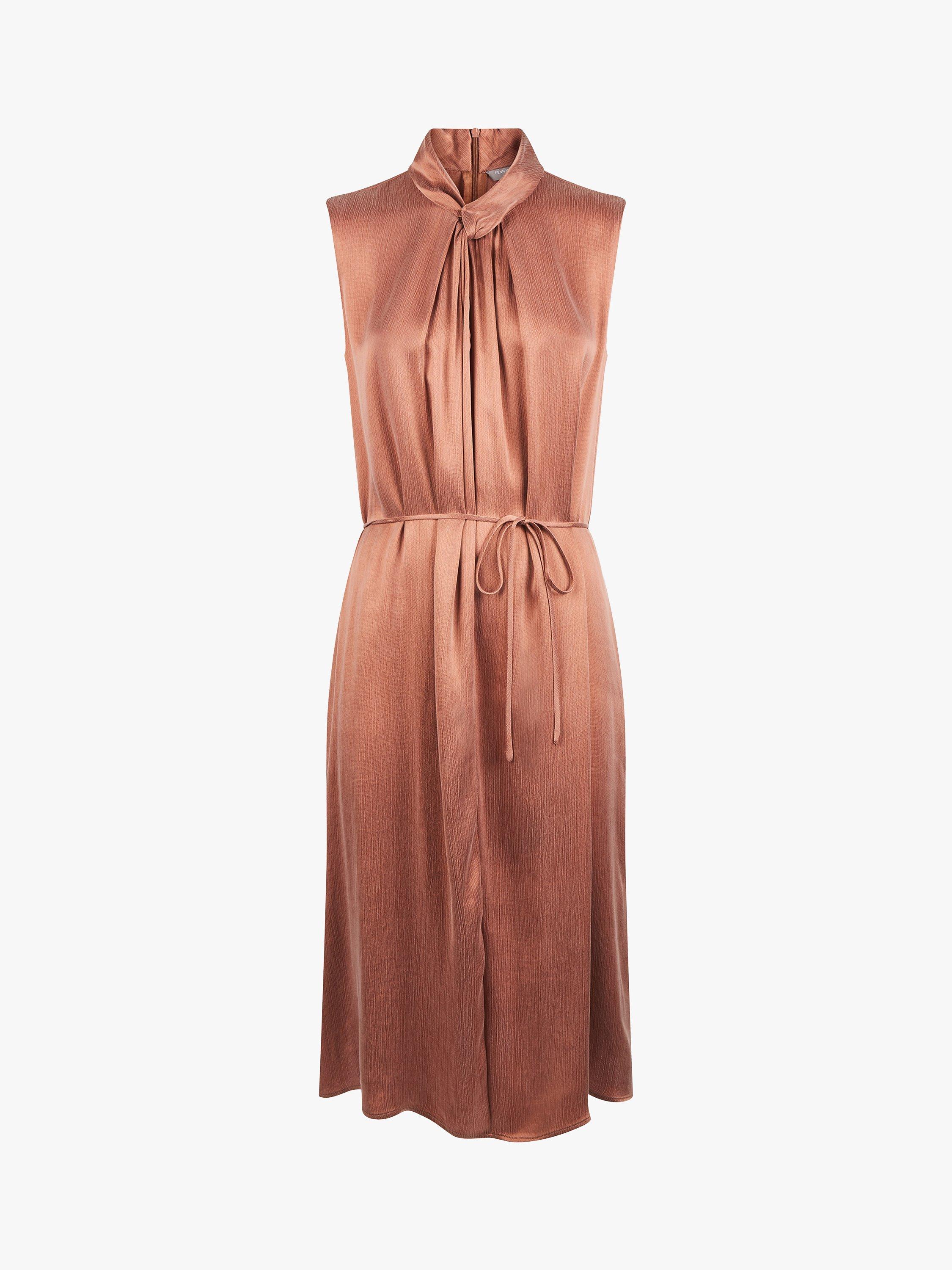 A soft flowing style from Fenn Wright Manson, this dress been cut to flatter petite frames. Skimming over the figure in light texture fabric, it has a simple sleeveless shape with knot detail on the neckline, side splits to enhance the flare and a slender tie belt that beautifully defines the waist.