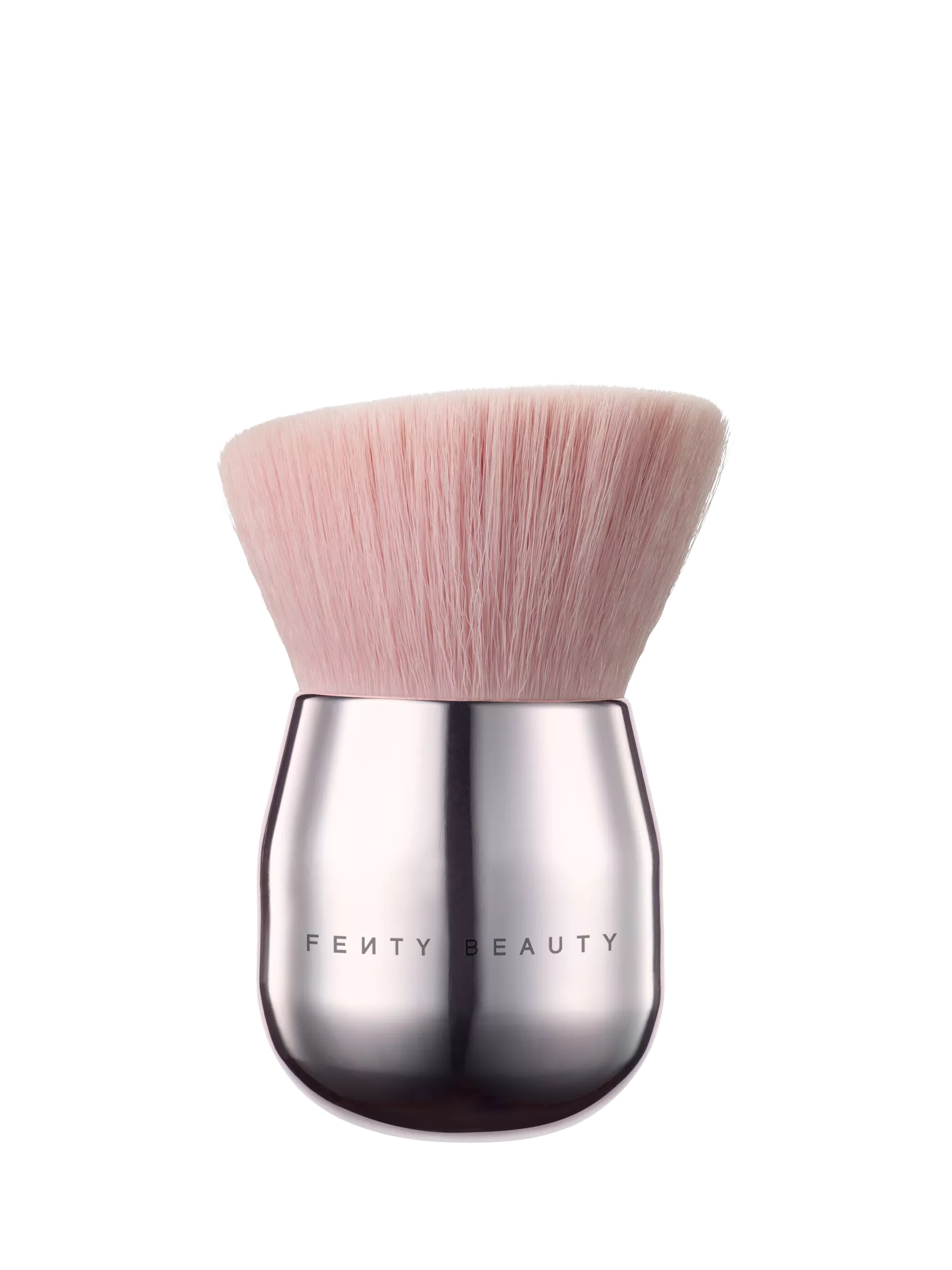 A face and body kabuki brush with a custom, angled design for blending liquid and powder formulas.