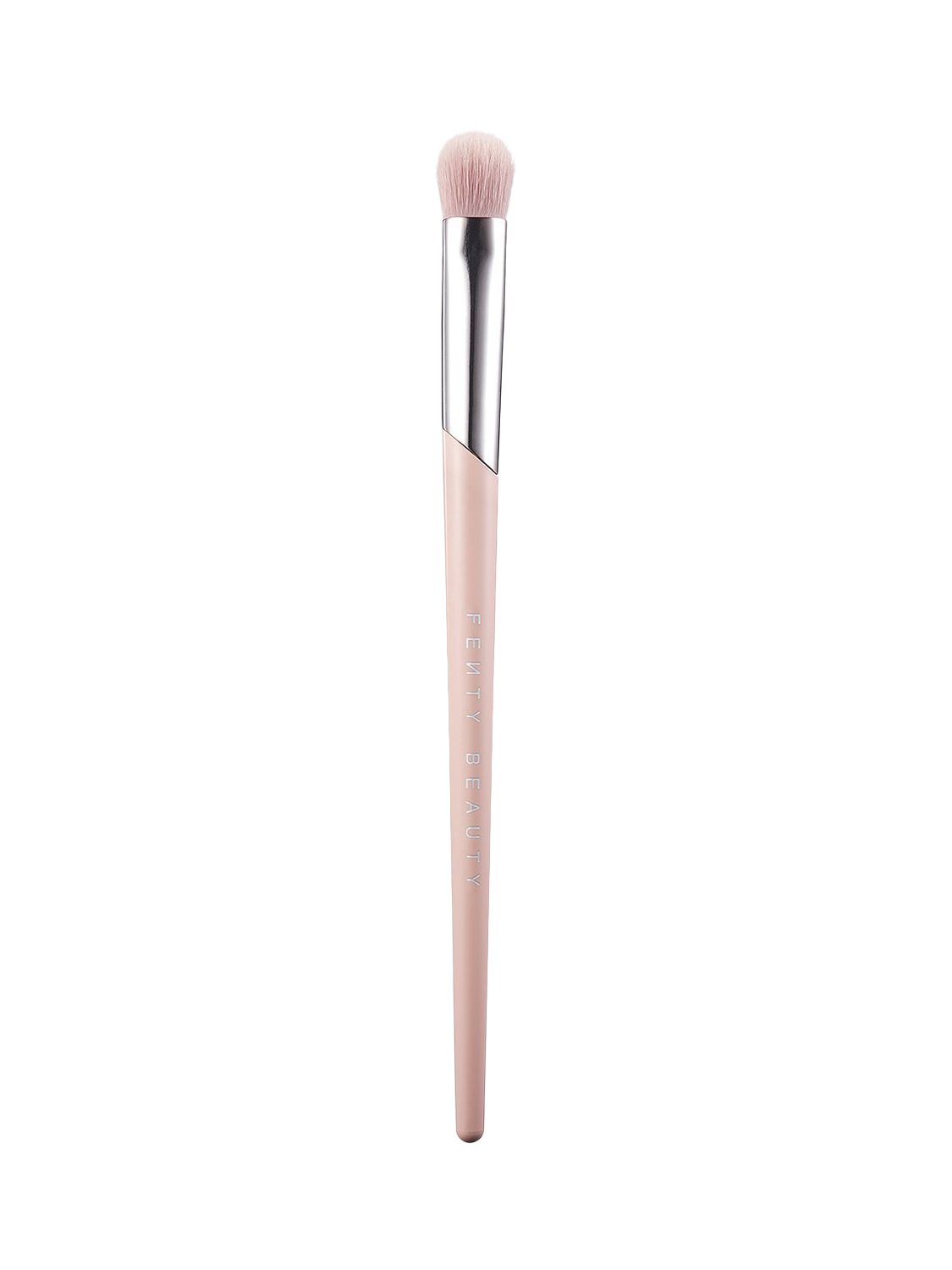 A precision eyeshadow brush featuring a unique flattened tapered tip perfect for effortless smudging.