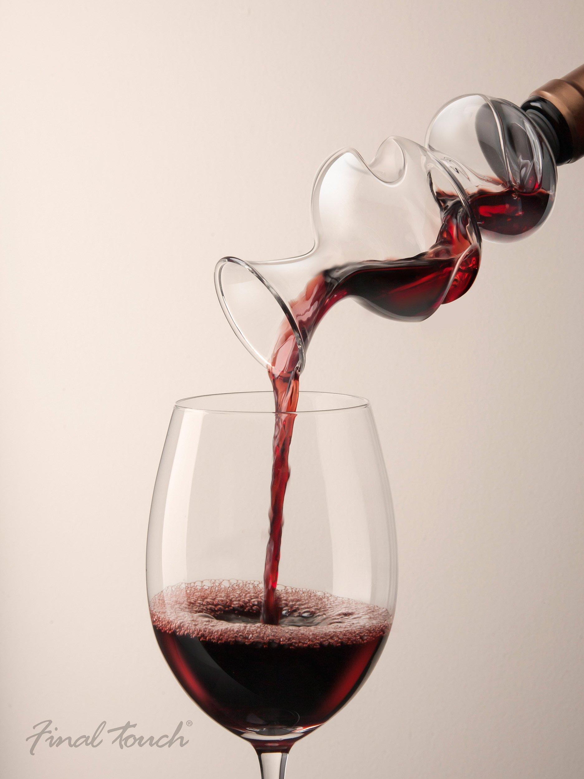 This wine aerator is the perfect accessory for any connoisseur. Place the aerating pourer directly onto an opened wine bottle. As the wine travels from the bottle into the first chamber it is gently dispersed over the curves of the aerator.