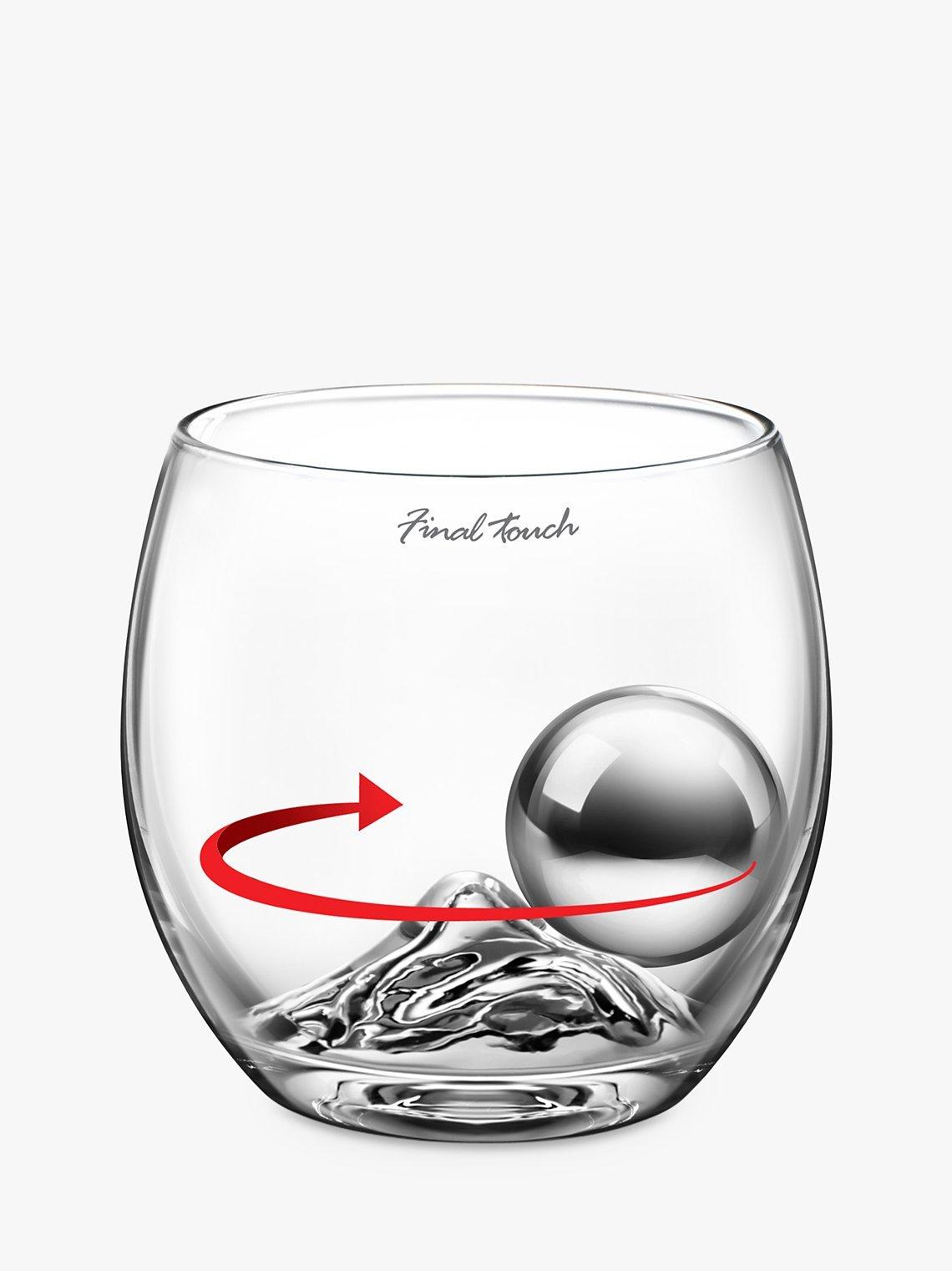 The On the Rock glass brings chilling and motion to the drinking experience. The elegant design of the glass allows you to roll the steel ice ball around the "rock peak" in the base to chill spirits without dilution.