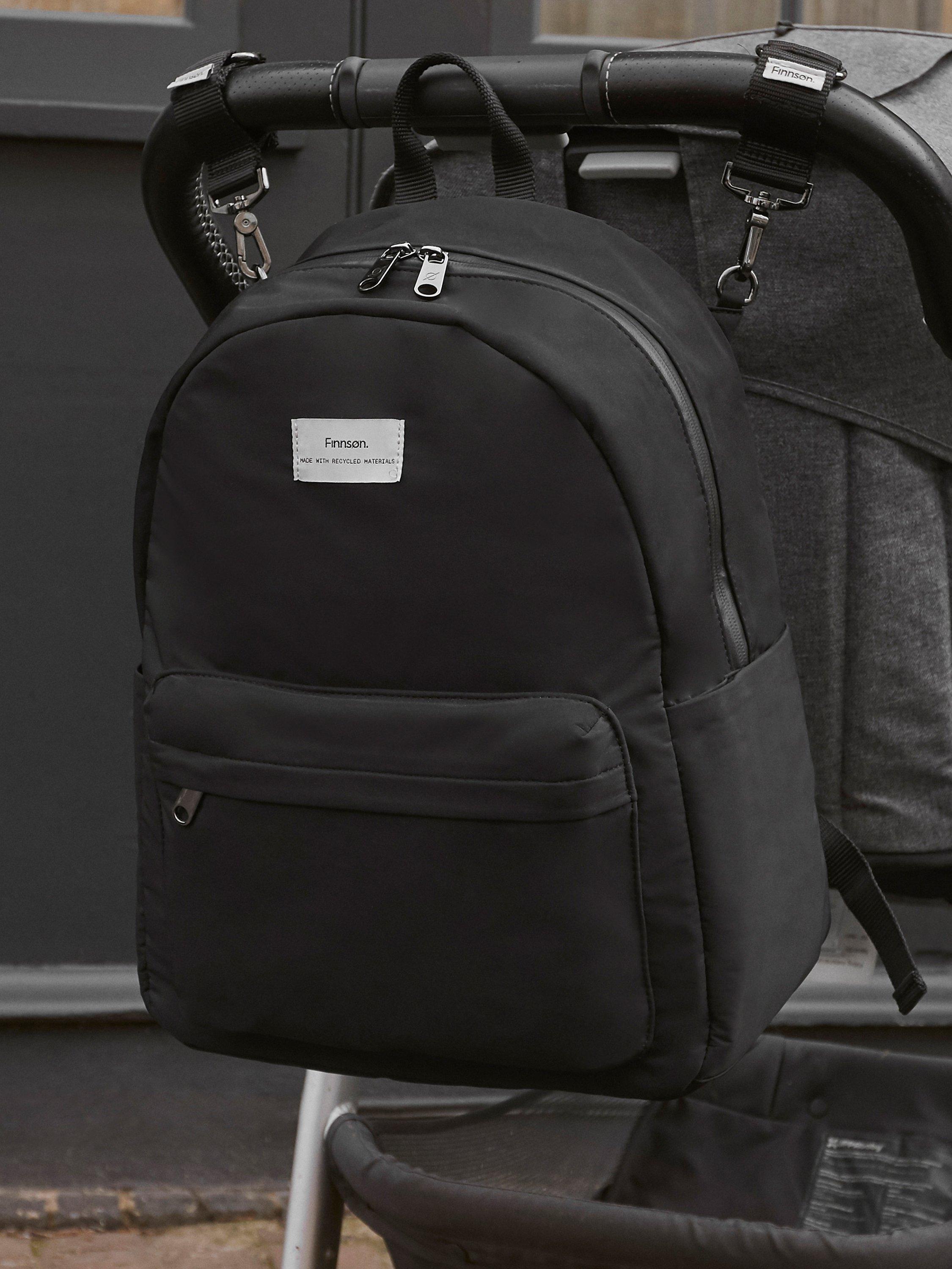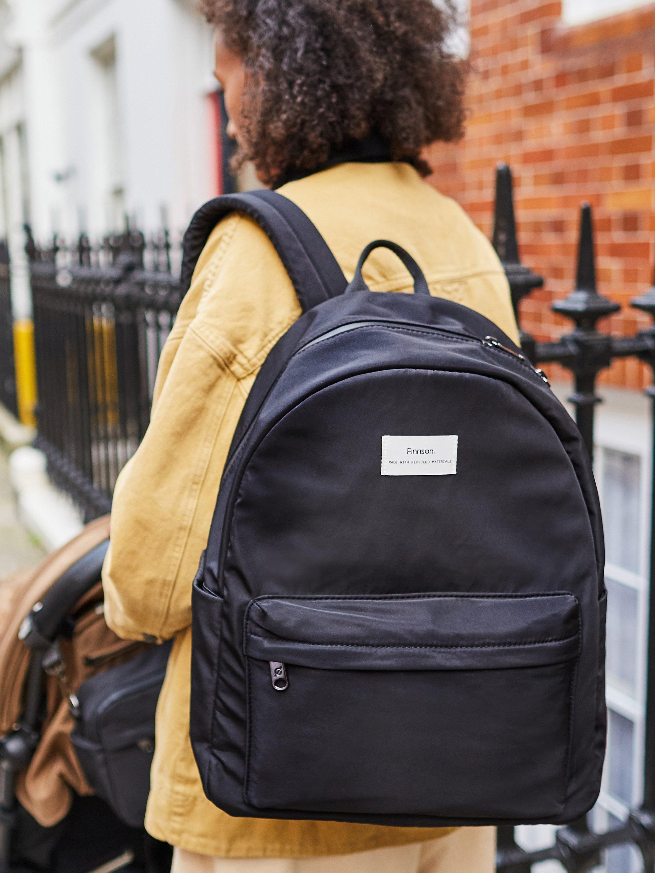 Expertly crafted in 100% recycled PET Polyester, the Ana changing backpack features a smooth exterior and contrasting lining. Both are water-repellent and easy to wipe clean. It has three external pockets with waterproof zips, two side slip pockets (ideal for bottles), and five internal pockets (including a zip compartment for securing keys, wallet or phone). Ana also includes a padded travel changing mat in black.