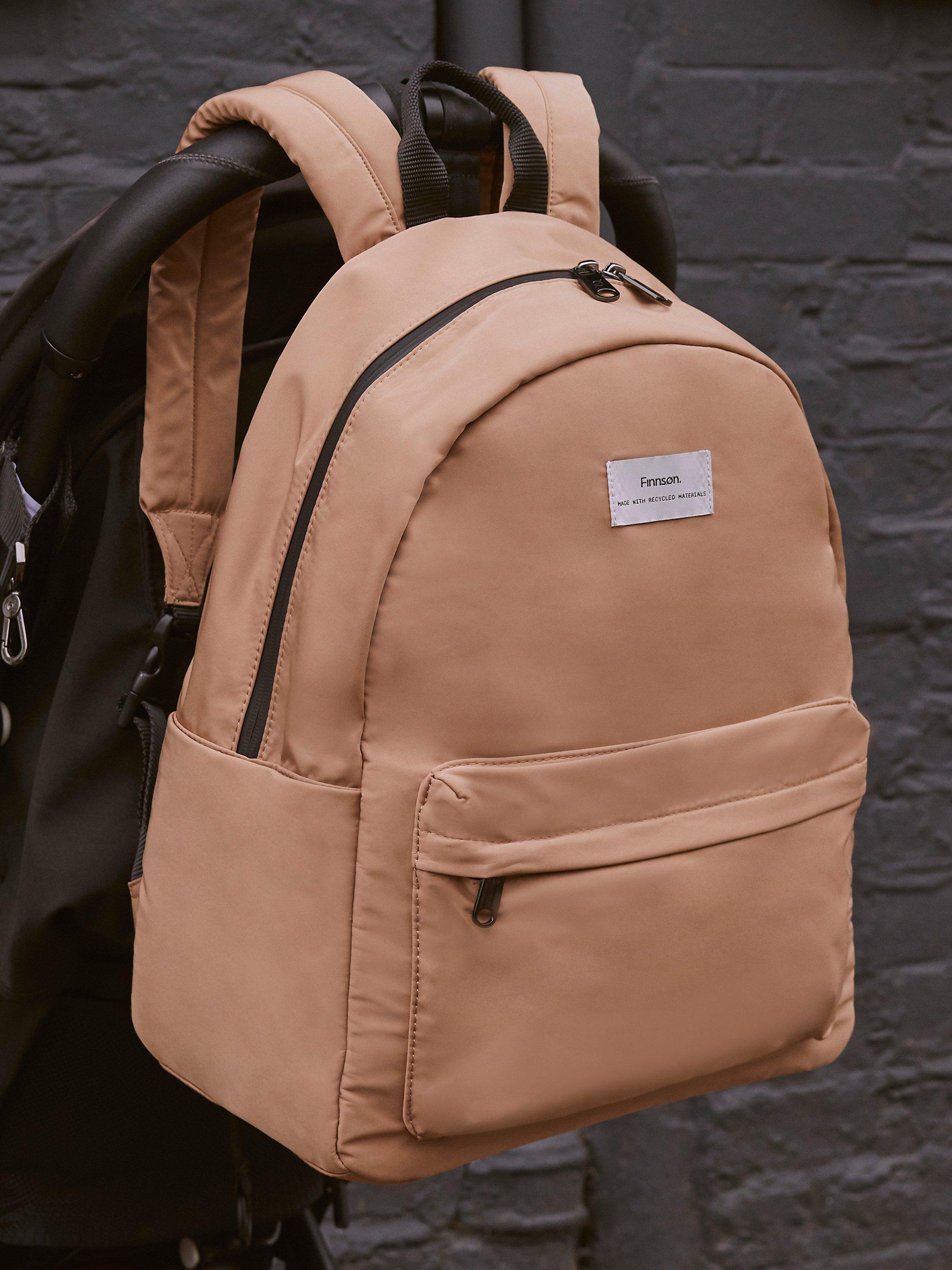 Expertly crafted in 100% recycled PET Polyester, the Ana changing backpack features a smooth exterior and contrasting lining. Both are water-repellent and easy to wipe clean. It has three external pockets with waterproof zips, two side slip pockets (ideal for bottles), and five internal pockets (including a zip compartment for securing keys, wallet or phone). Ana also includes a padded travel changing mat in black.