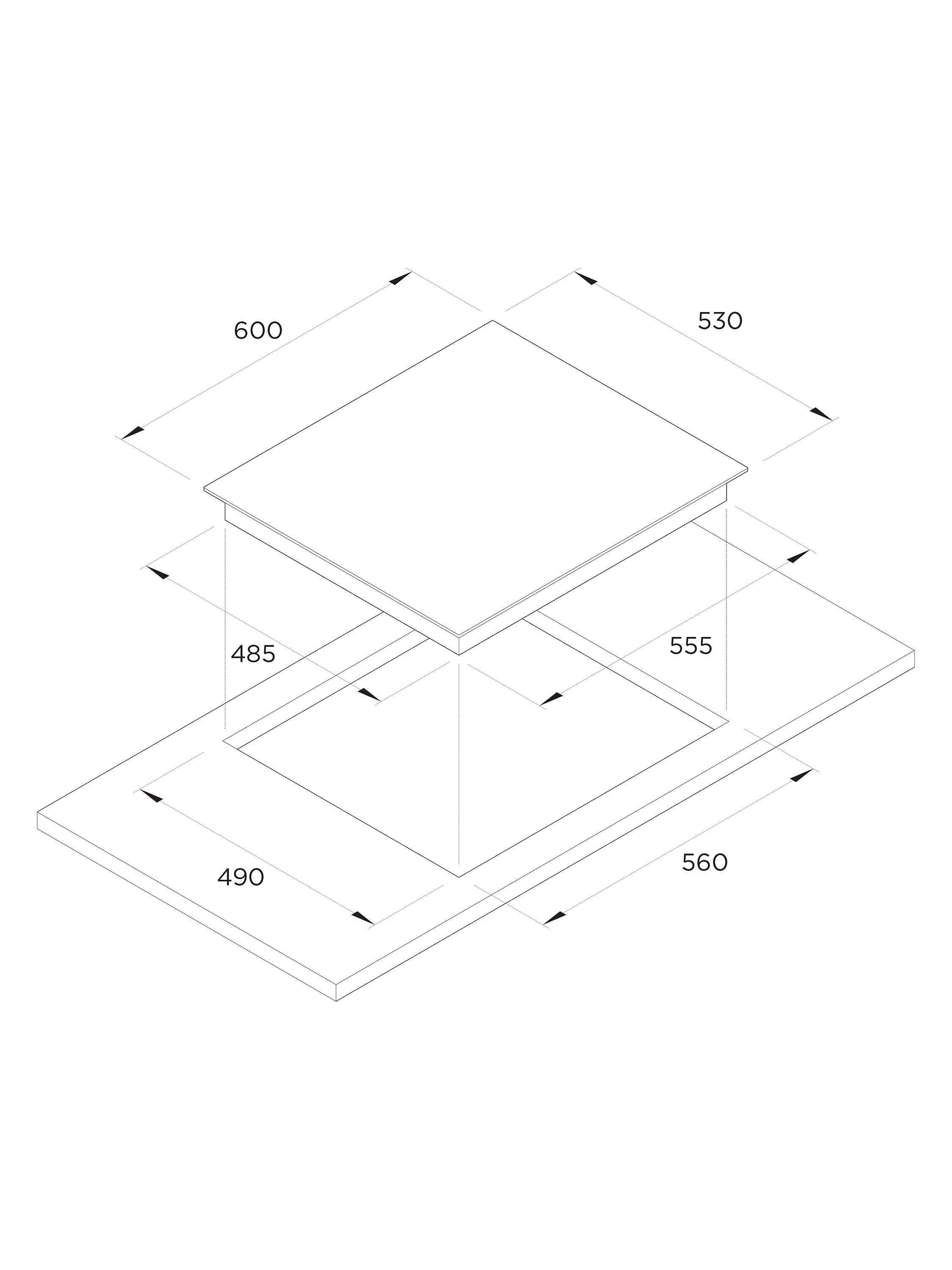 H5.7 x W56 x D49cmMinimum distance between hob & cooker hood required