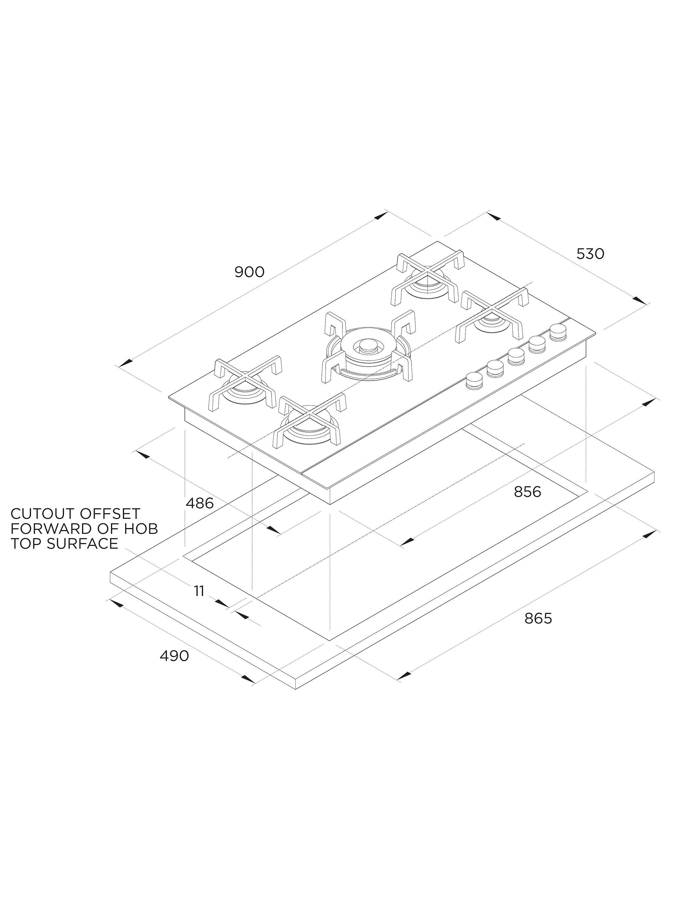 H5.8 x W86.5 x D49cmMinimum distance between hob & cooker hood required