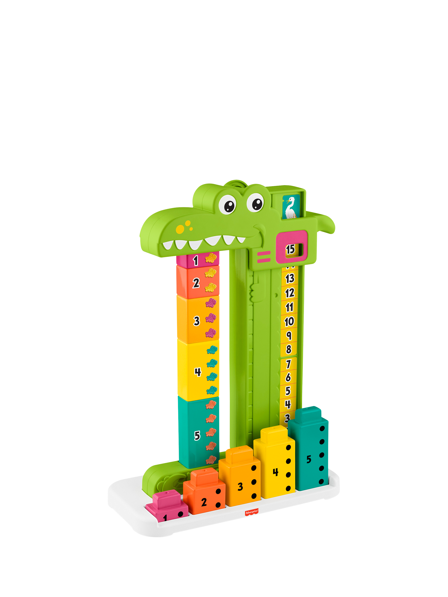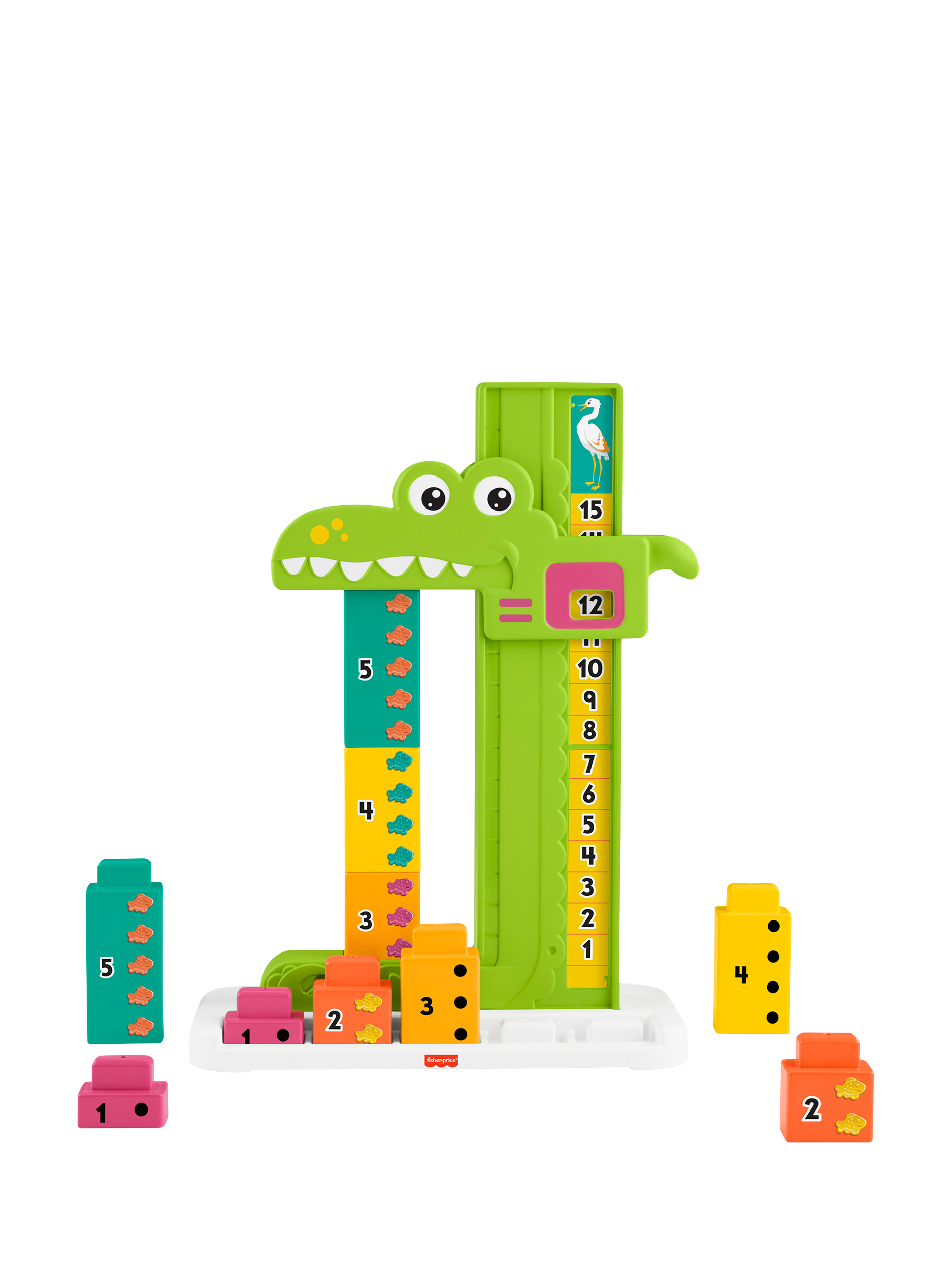 Designed to introduce numbers and early maths concepts using blocks and stacking play. Kids can explore adding and subtracting by stacking the numbered blocks up to 'feed' the alligator. When they slide the alligator’s head down, it stops on the top block and the correct sum of the numbers is revealed! Kids can try adding different number combinations or they can remove blocks to see how subtraction works. Blocks stack on the base for easy storage. Colours and decorations may vary.