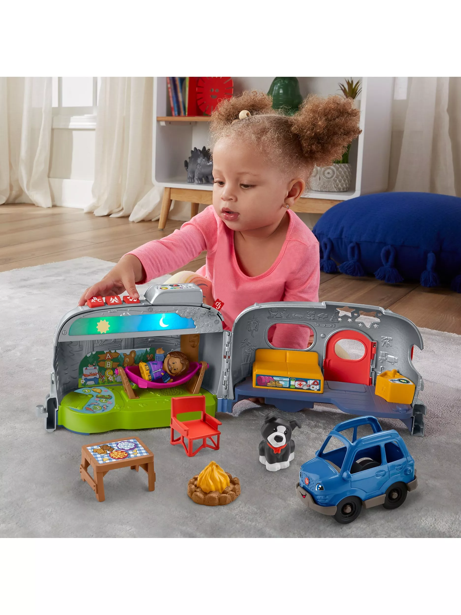 Kids can explore the great outdoors and act out their own fun camping adventures with the Light-Up Camper from Fisher-Price! Campers can get the adventure started by packing up the figures into the car, attaching the RV, and rolling both vehicles along.