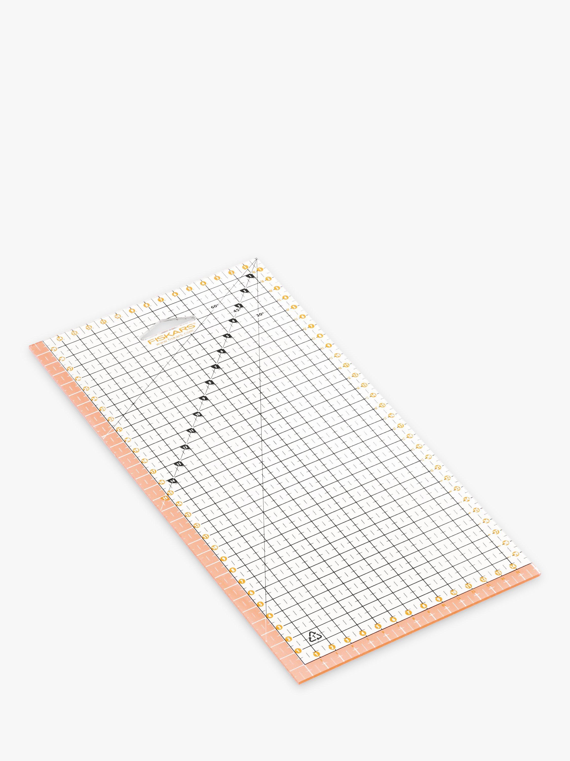 This transparent ruler from Fiskars is ideal for measuring and cutting perfect squares, strips, triangles or any shape for your quilt. For easy triangle and star patterns, the angle lines are clearly marked at 30°, 45° and 60°.