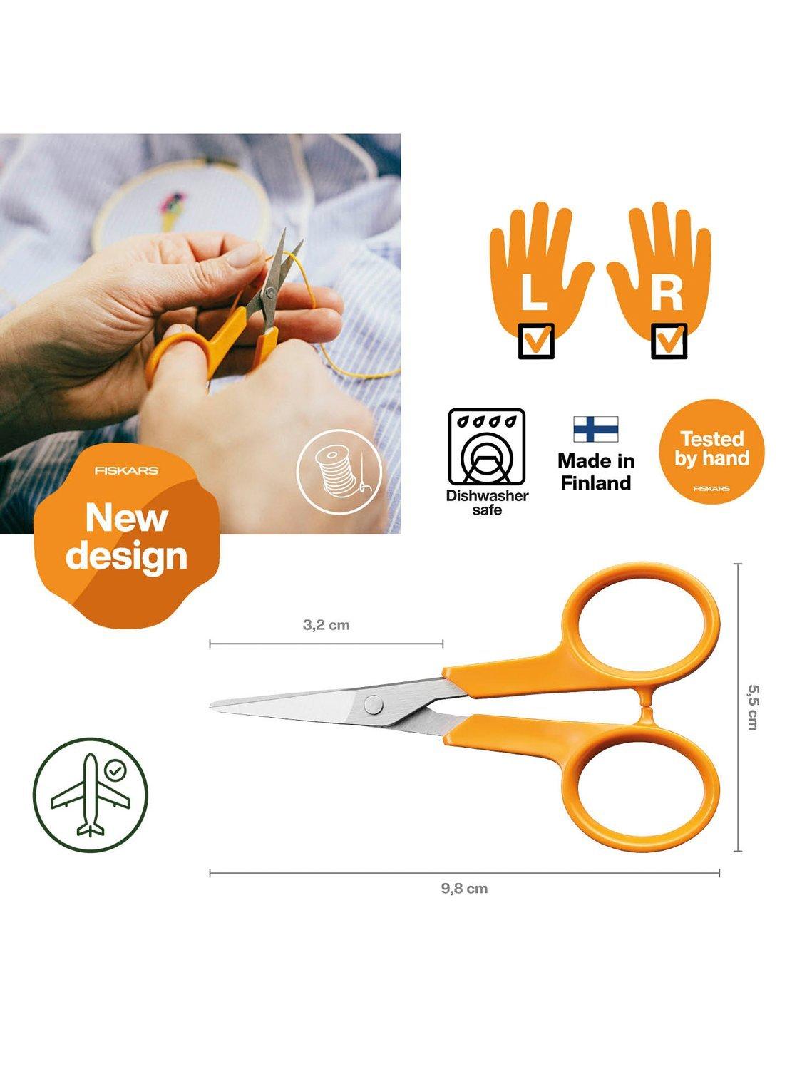 The 10cm embroidery scissors are ideal for precision cutting while sewing and crafting. They offer an optimal cutting edge and lifelong performance. Durable precision ground stainless steel blades for long-lasting sharpness. The blades have narrow and sharp tips that are ideal for detail cutting. The ergonomic and impact resistant handles ensure good grip. Made in Finland, finished and tested by hand.
