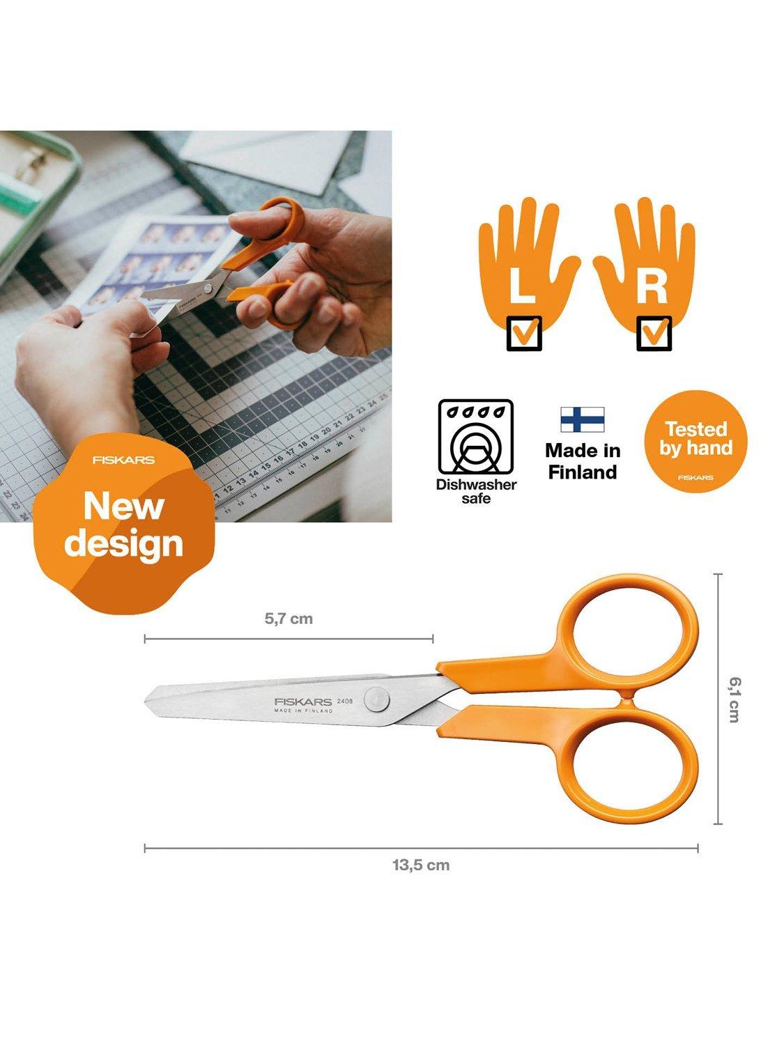 Fiskars 13cm hobby scissors are ideal for cutting a variety of light materials while crafting. Short, safe blades are ideal for children and can be safely placed in pockets, while the ergonomic and impact resistant handles ensure good grip.