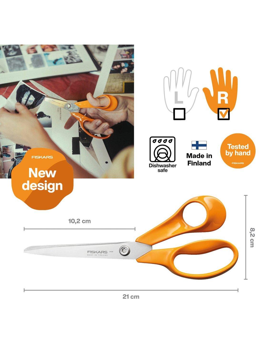 Classic scissors are reliable and high-quality, making them the perfect long-term investment. The 21cm universal purpose scissors are ideal for a wide variety of cutting needs, including crafting, sewing, and office use, in and around the home. They offer an optimal cutting edge and lifelong performance. The ergonomic and impact resistant handles ensure good grip. Made in Finland, finished and tested by hand.