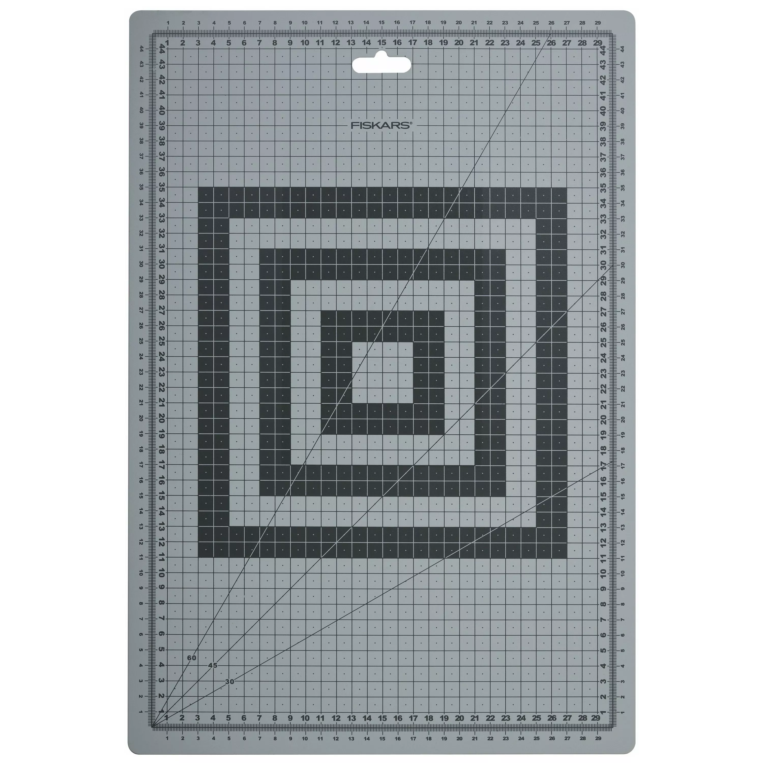This high-quality mat is reversible with easy to read metric and imperial inches on both sides and features a self-healing surface for long lasting use, 30°, 45° and 60° angles lines for creating triangle and star shapes and a convenient hanging hole for storage.