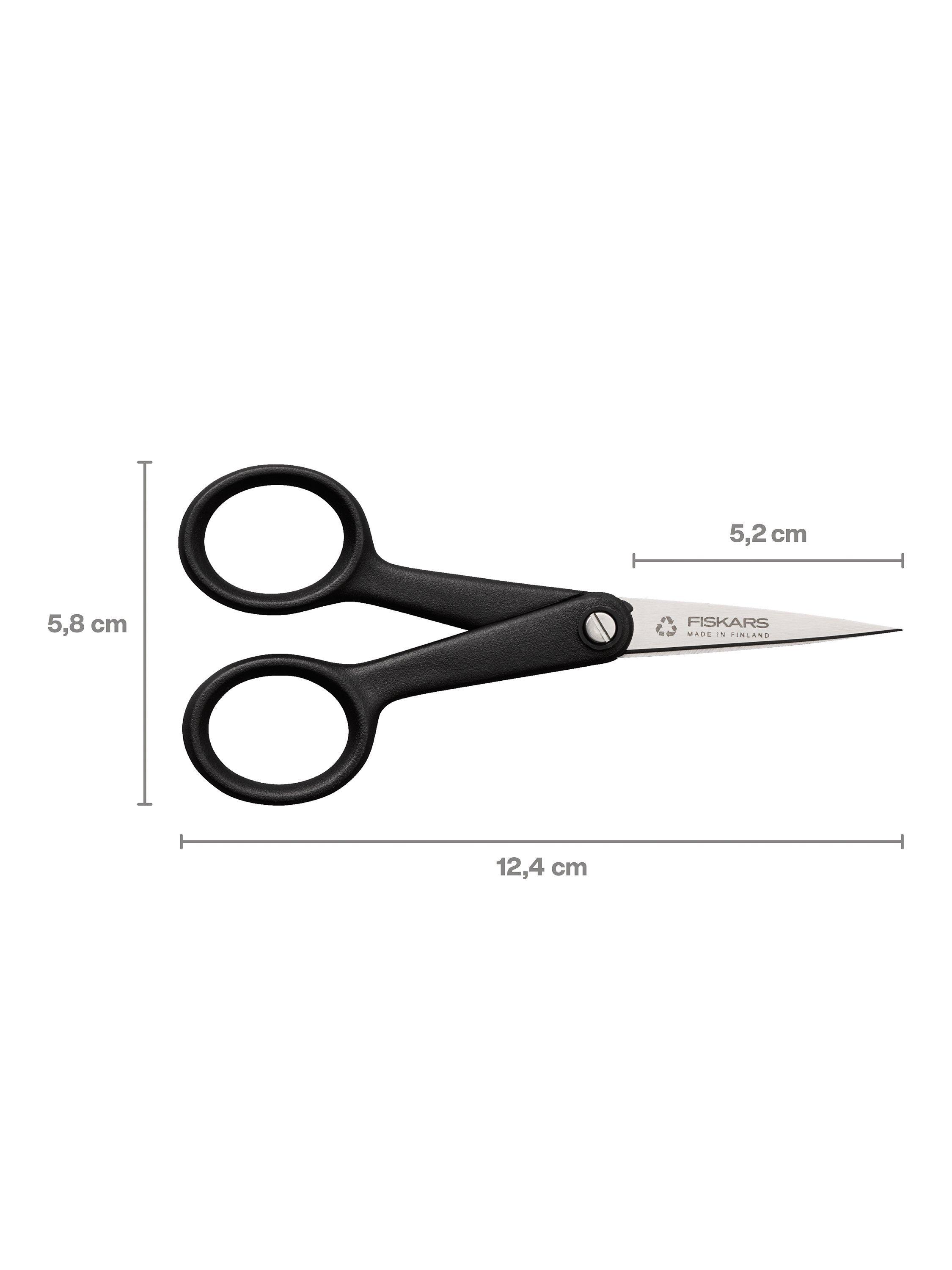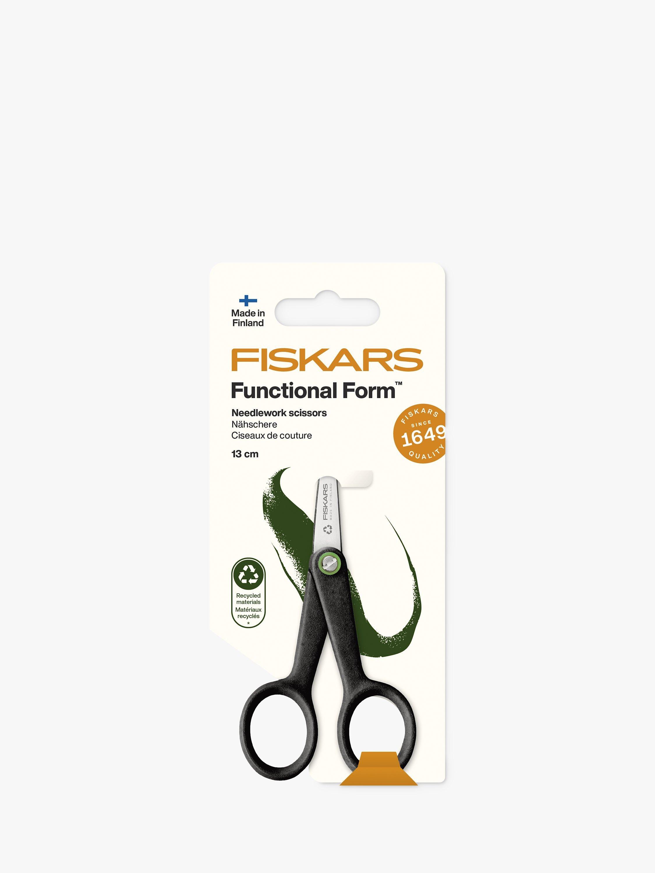 Fiskars Functional Form ReNew needlework scissors are a perfect choice for precise cutting tasks. Made from recycled materials (minimum 70%), the slim, high-quality recycled stainless steel blades have a super sharp tip that makes easy work of cutting fine details and trimming in tight spaces.