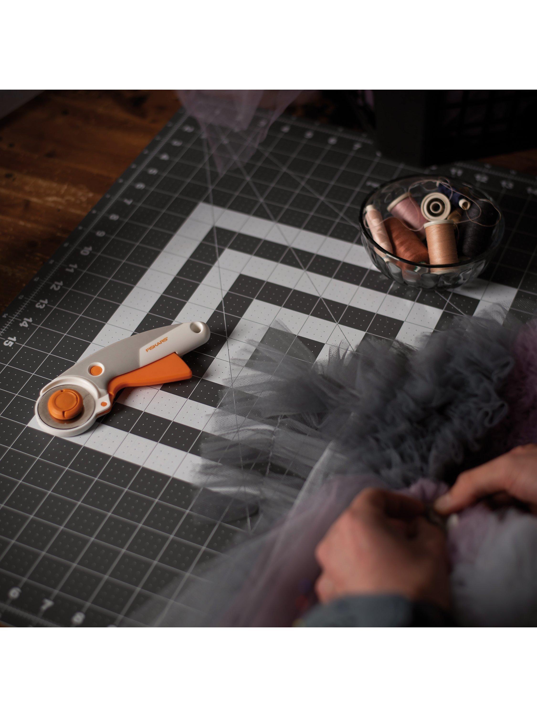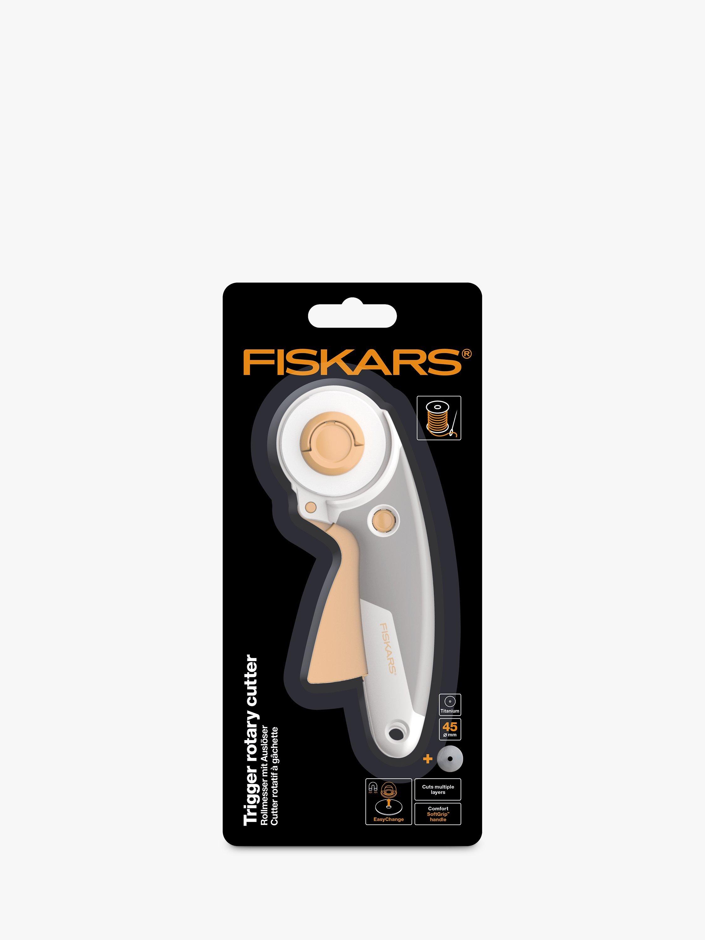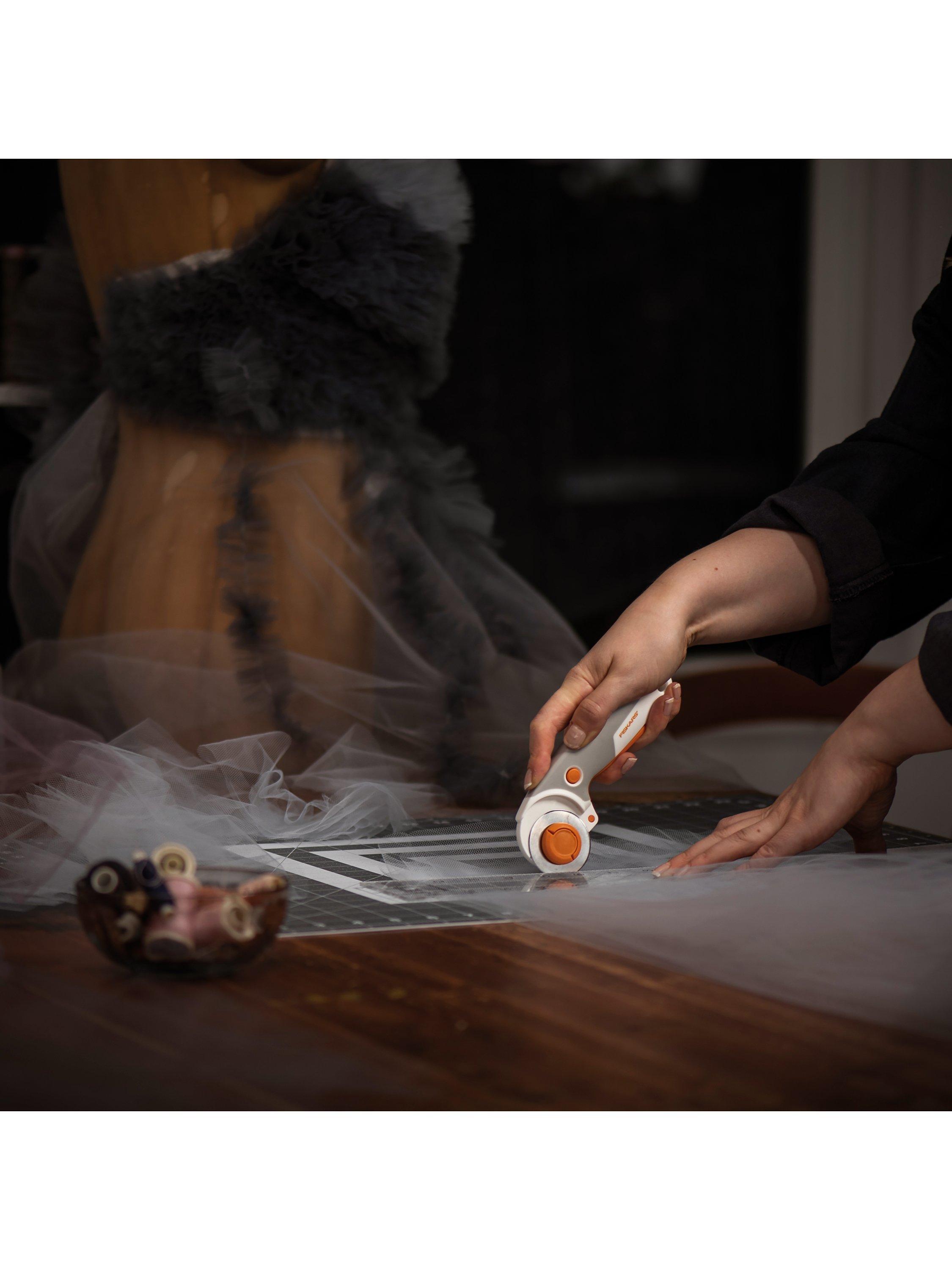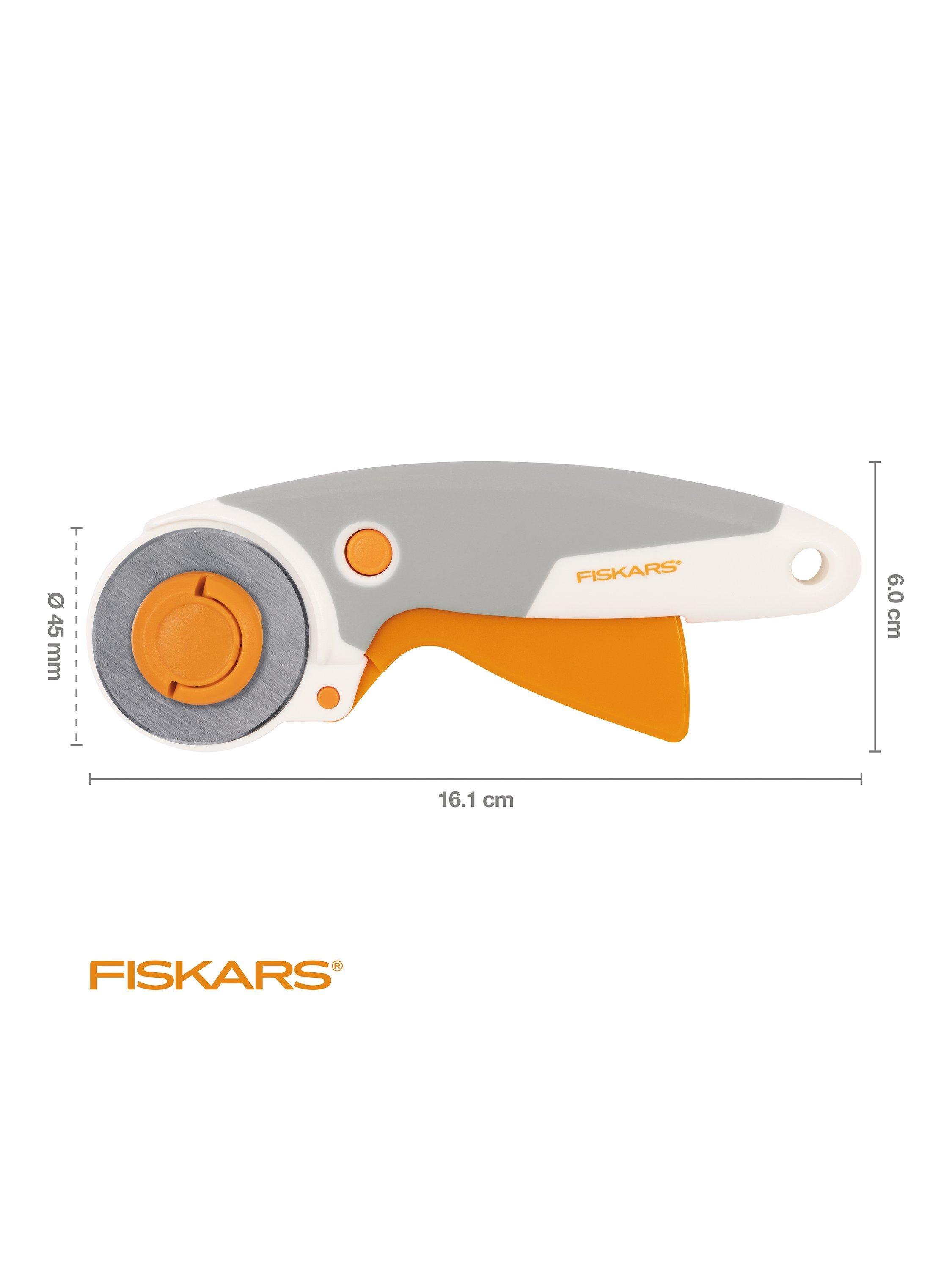 Ideal for cutting multiple layers of fabric, felt and vinyl, Fiskars' titanium rotary cutter features a titanium blade coating that is three times harder than steel for exceptional durability.