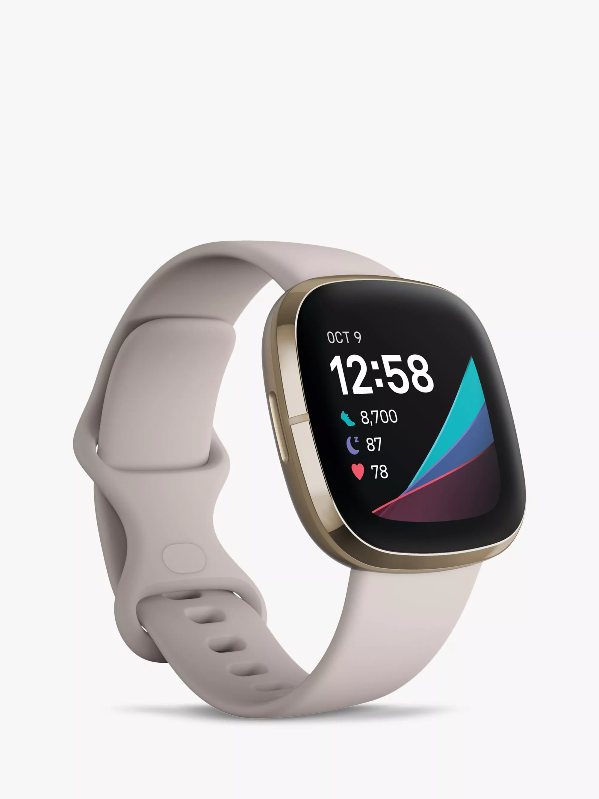 FitbitSense, Health and Fitness Watch with Heart Rate Monitor, Lunar White/Soft Gold, Stainless Steel
