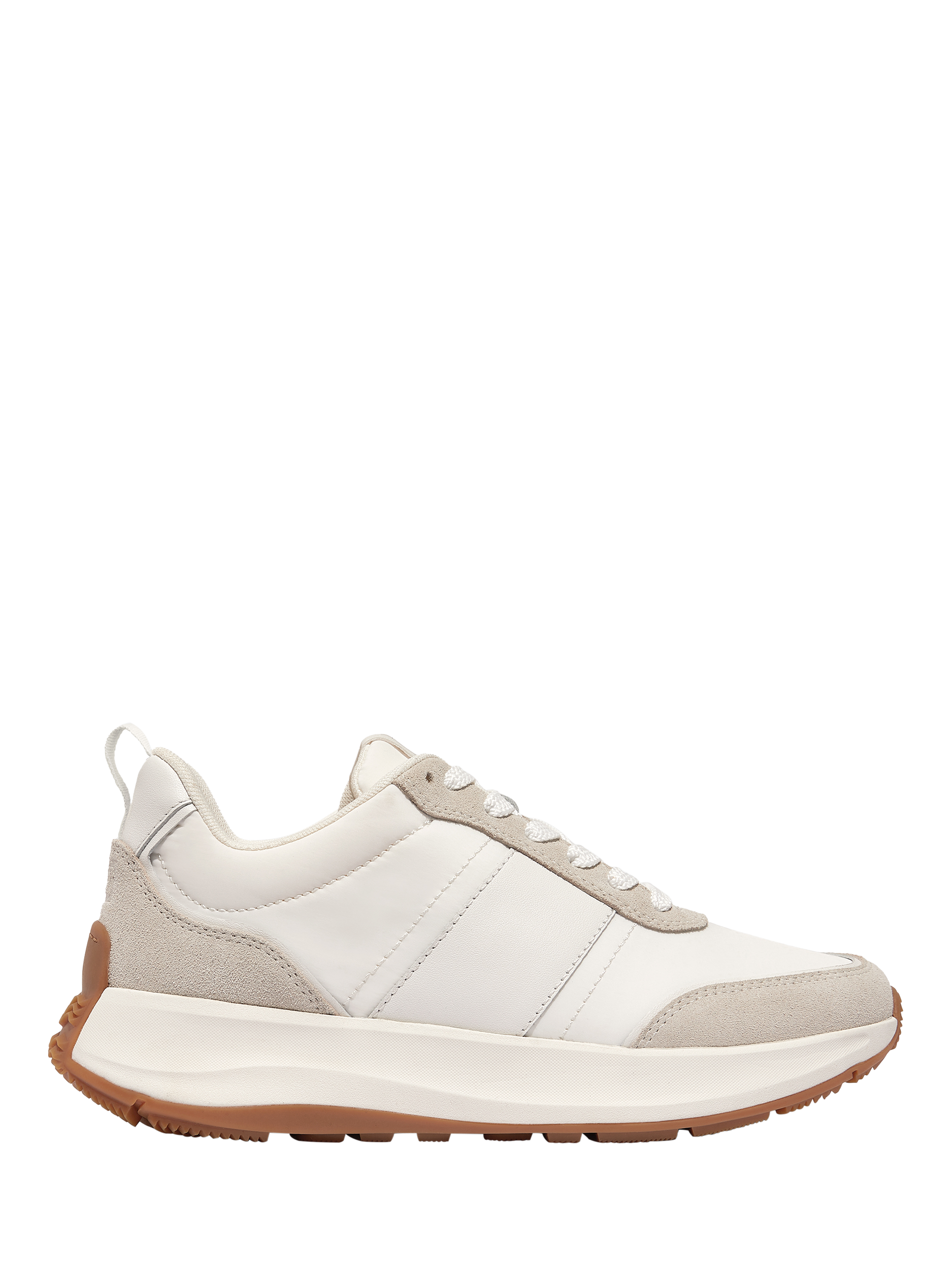 This F-Mode Flow redesign brings a 70s/80s vintage runner vibe to FitFlop's bestselling chunky-sole trainers. Keeping the originals’ comfort and lightness (thanks to all-day cushioning Microwobbleboard™ midsoles), these have a slightly sleeker shape, detailed panel overlays and a rubber outsole wrapped up the heel. Softly padded. Slip yours on to inject an athleisure edge into multiple looks.