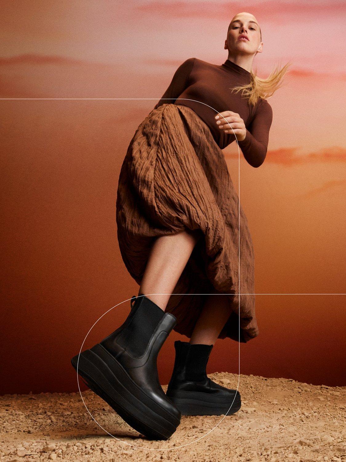 These F-Mode Stack Chelsea boots are designed to make an impact, visually and underfoot. Set on an architectural triple-layer stack sole, they deliver bold height with ergonomic, all-day support.
