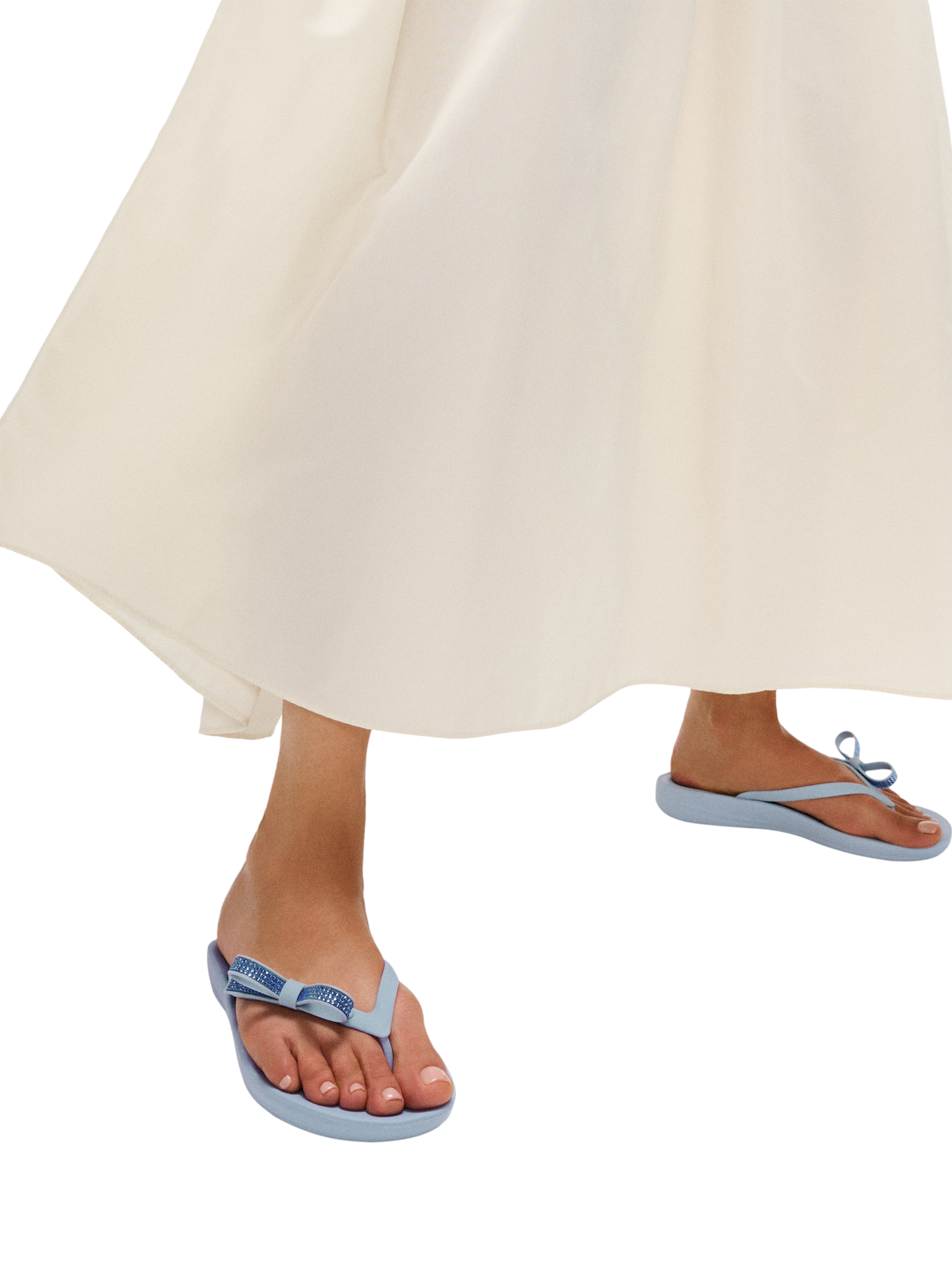 Comfort-engineered, beach flip-flops – this season adorned by a chic, sleek, crystal-smothered bow.