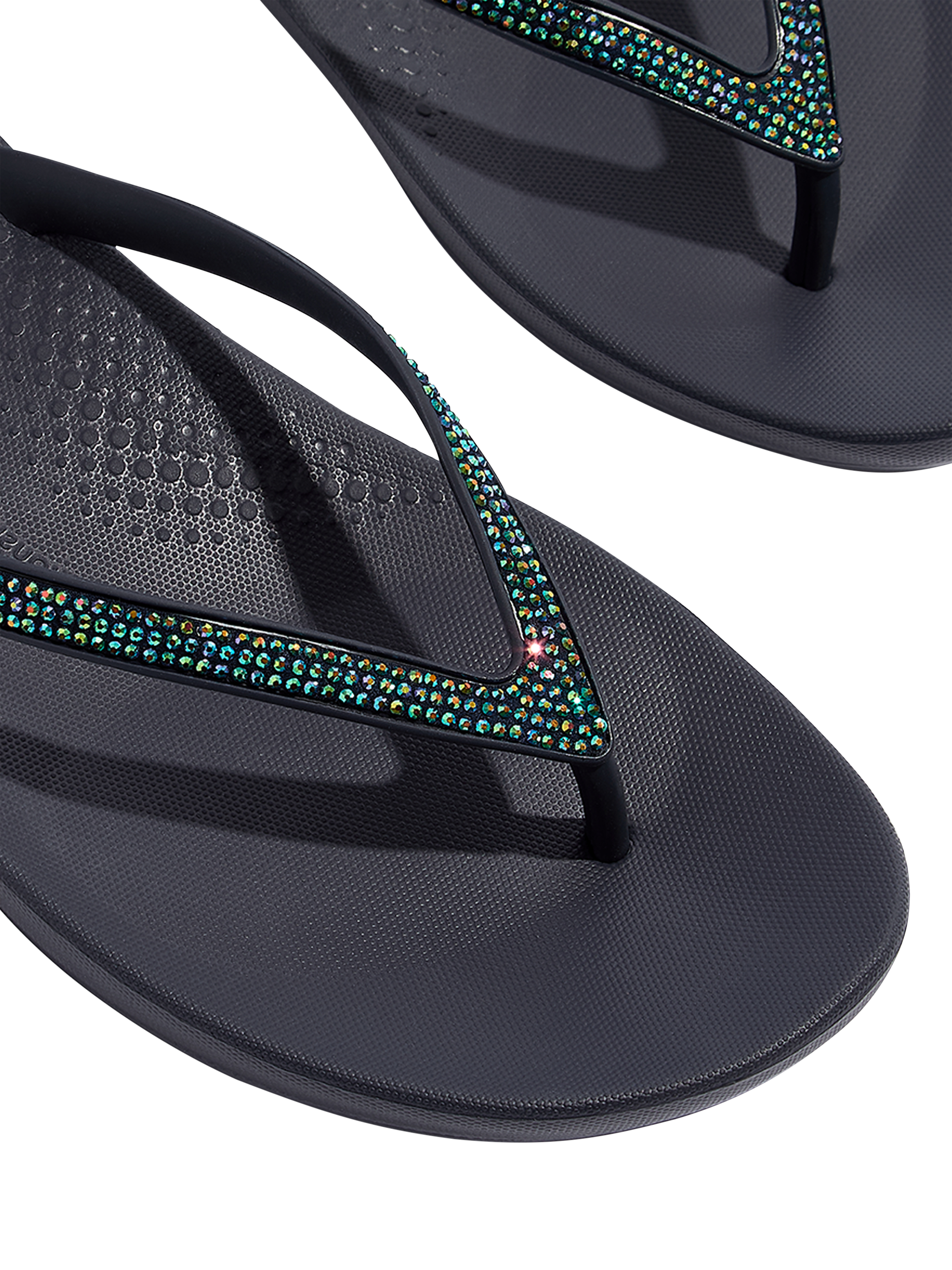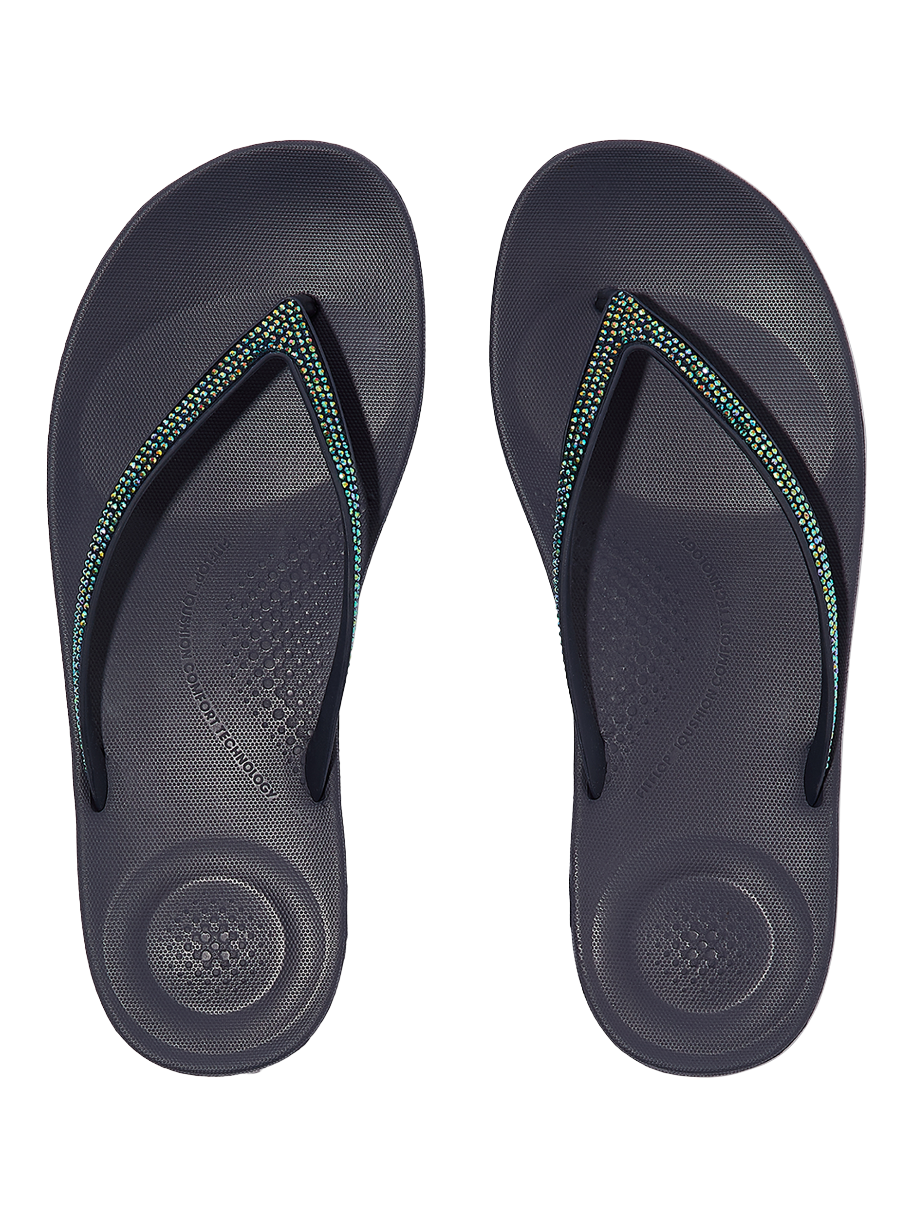 From the top, they look like your typical Surfer-girl flip-flops. Underneath, they're engineered with iQUSHION micro-bubble foam impact cushions for non-stop comfort.