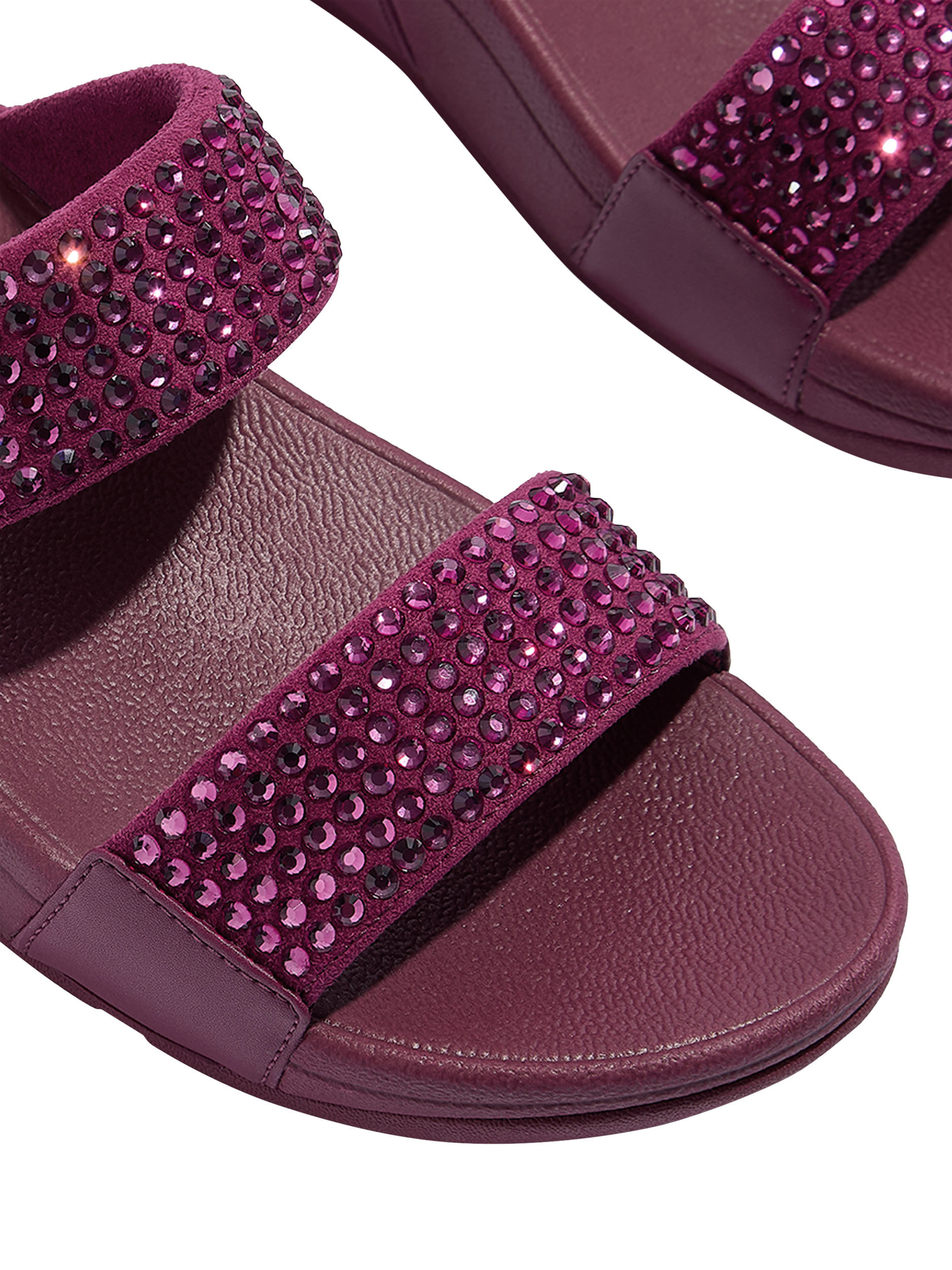 FitFlop's popular Lulu slides, this season smothered in glittering oversized crystals for statement sparkle.